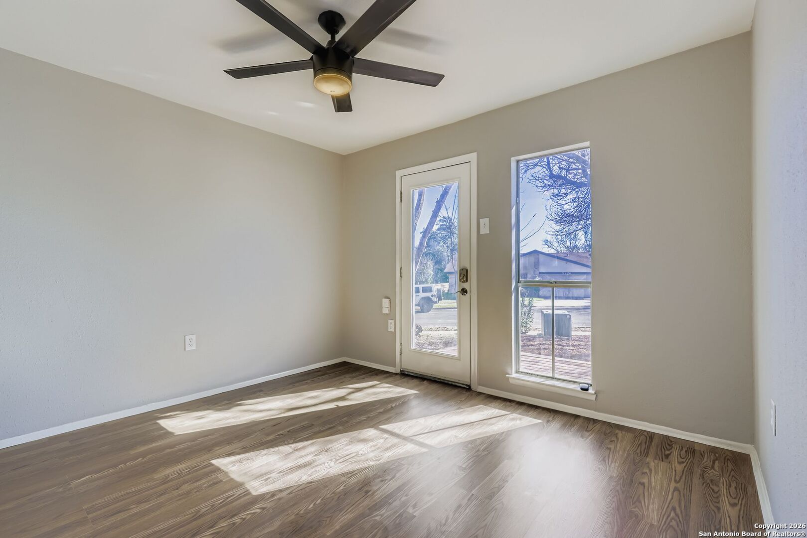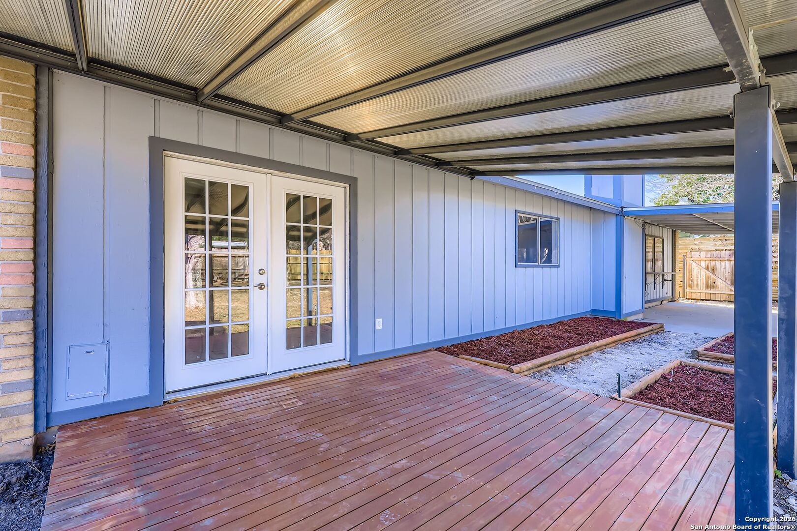 BIG-TICKET ITEMS DONE. Welcome to 5723 Sky Country, where structural peace of mind meets modern updates. The foundation has been professionally leveled with a transferable warranty, and sewer repairs have been completed and passed a static test, eliminating two of the most common buyer concerns before you even move in. MODERN INTERIOR: Brand-new flooring throughout (no carpet), fresh neutral paint, updated lighting, and refreshed switches and plates create a bright, cohesive feel. The open living area is anchored by a charming brick fireplace, and the kitchen flows seamlessly into the main space for everyday living and entertaining. PRIVATE RETREAT: The primary suite features elegant French doors that open directly onto the backyard patio deck and an updated en-suite bath with a walk-in shower. THE FLEXIBILITY FEATURE: The fourth bedroom includes its own private exterior entrance, offering rare versatility for a home office, guest suite, creative studio, or multigenerational living. This is a highly functional layout not often found at this price point. OUTDOOR LIVING: A covered patio overlooks a spacious backyard with prepared garden beds, ready for your vision. ESTABLISHED NORTHWEST LOCATION: Situated in a quiet residential pocket with quick access to State Highway 151 and Loop 410, allowing easy connectivity throughout San Antonio. Daily essentials, grocery options, and casual dining along the 151 and 410 corridor are just minutes away. STRUCTURAL WORK COMPLETE. MOVE-IN READY. CONFIDENCE INCLUDED.