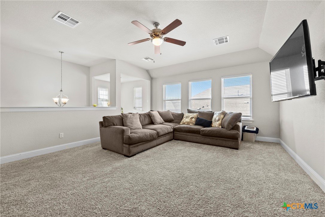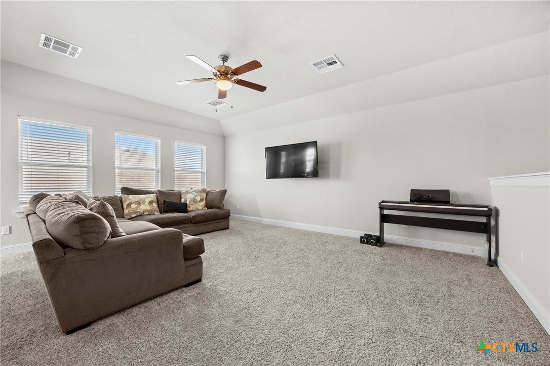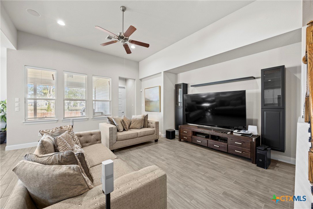 Welcome to 5728 Toscana Trace! Lovingly maintained by its original owner, this two-story home offers over 3,100 sq. ft. of living space with 4 bedrooms, 3 bathrooms, and a 3-car garage. Designed for comfort and flexibility, the open-concept floor plan features a private office with French doors, a spacious kitchen with granite countertops, recessed lighting, and a large island, plus a bright living and dining area ideal for entertaining. The primary suite is located on the first floor and includes a walk-in closet, dual vanities, garden tub, and separate shower. A secondary bedroom, full bath, and laundry room add convenience downstairs. Upstairs offers a loft with a reading or office nook, two additional bedrooms, and a full bath for added versatility. Perfect for Multi-generational living! Step outside to a stunning tiled patio complete with a built-in grill and granite countertop. An entertainer’s dream! Enjoy privacy and nature views from the backyard. This home backs up to a greenbelt and sits in a family-friendly community with walking, biking, and recreational opportunities nearby. Conveniently located near IH-35 and SH 130, providing easy access to shopping, dining, and entertainment.