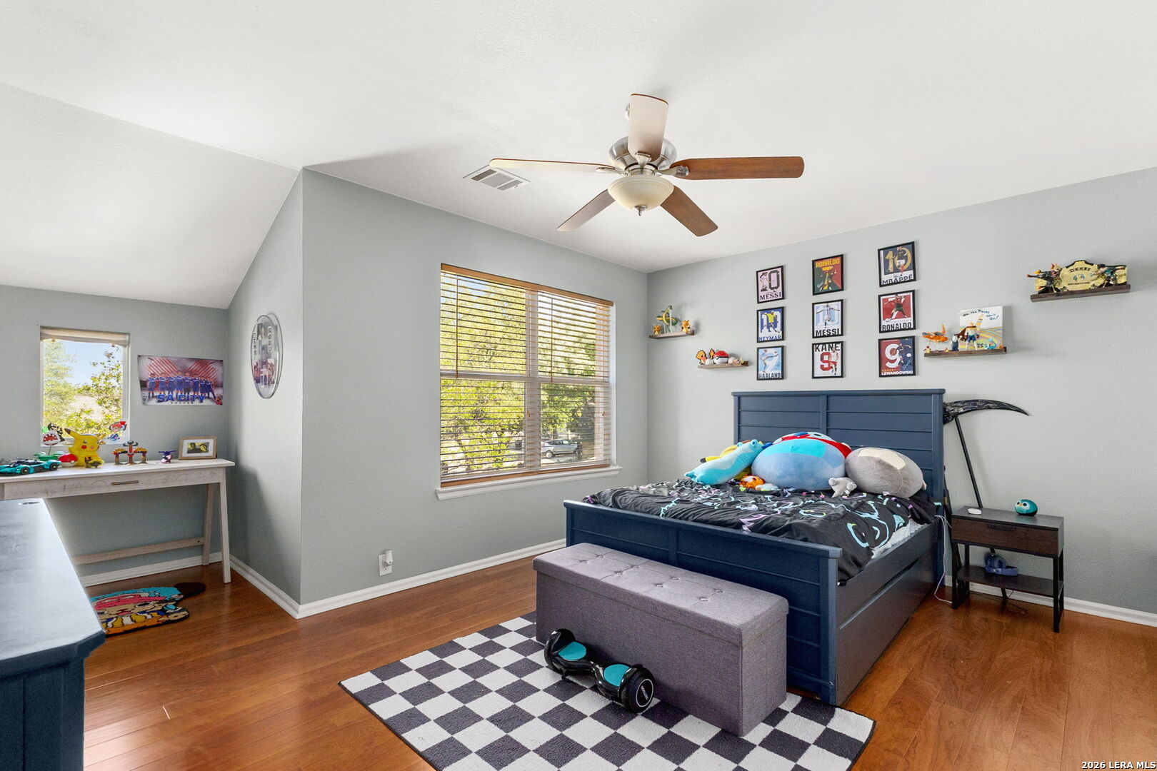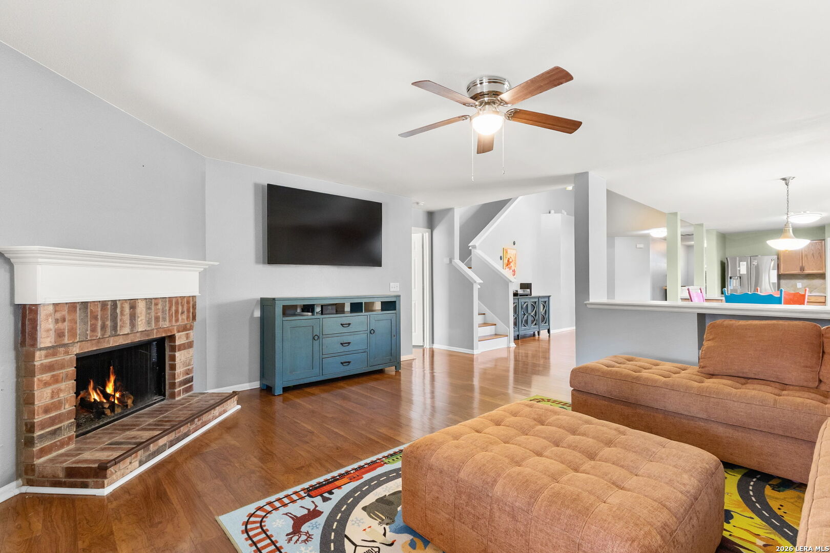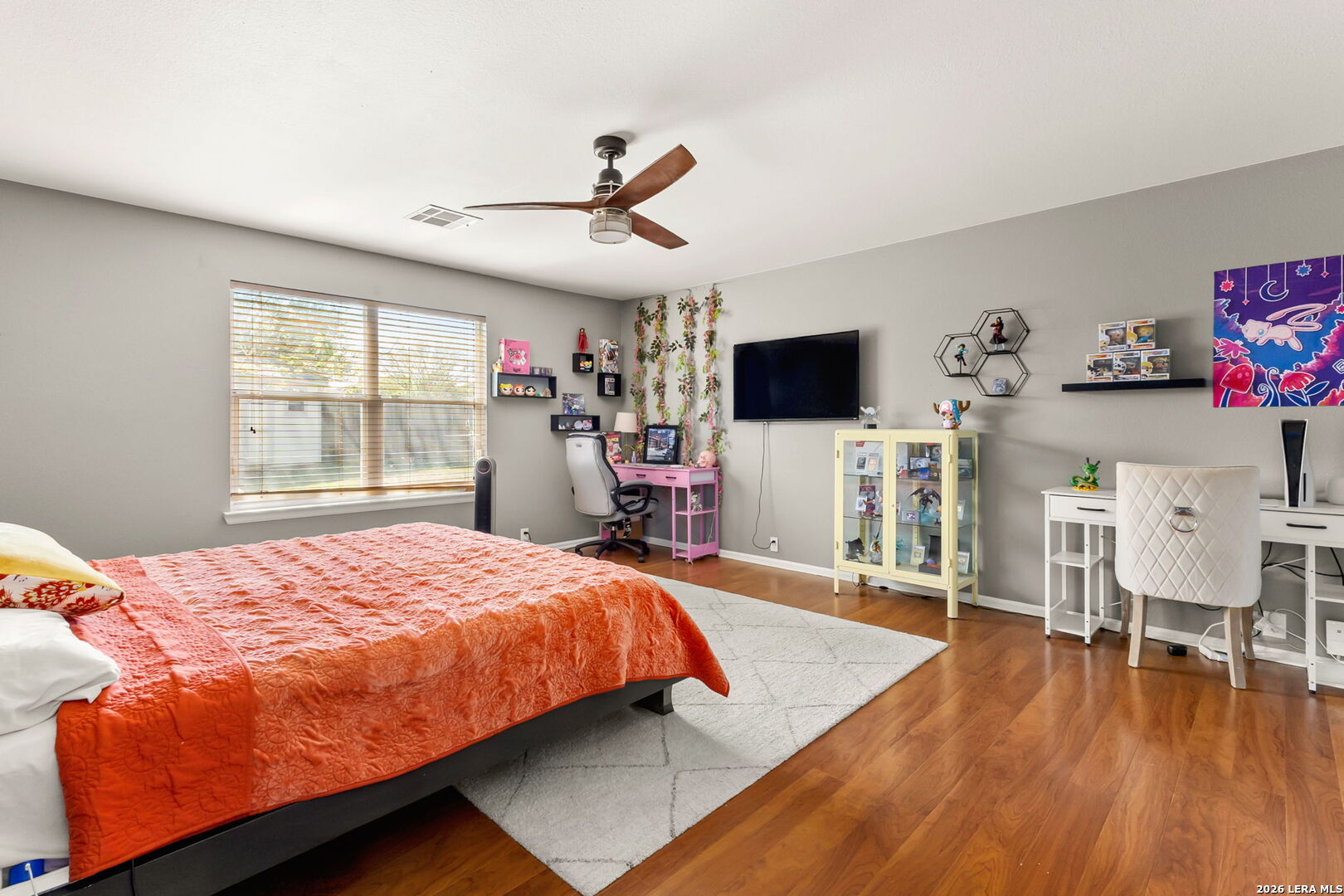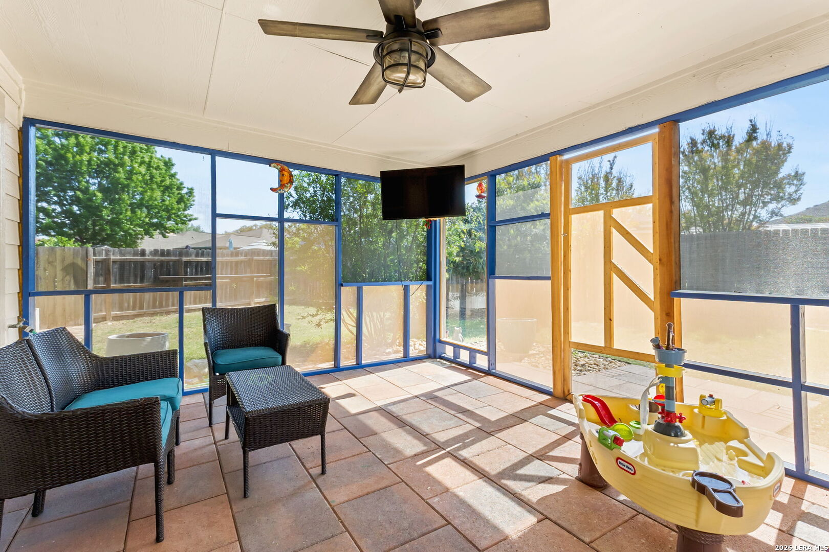 Entertainer's Dream Home with Lush Outdoor Oasis! Welcome to this spacious family home featuring a sprawling open floor plan, perfect for gatherings and entertaining! The heart of the home is the stunning kitchen, adorned with Silestone countertops and stainless steel appliances, providing both style and functionality. The versatile front room serves as an ideal space for a study, formal dining, or a cozy living area. Retreat to the luxurious downstairs master suite, featuring a jetted bath and a separate shower-your personal sanctuary for relaxation. Upstairs, you'll find four additional bedrooms along with a versatile living area/game room, perfect for family fun or hosting guests. With no carpet and flooring approximately 5 years old, maintenance is a breeze. Step outside to discover your backyard oasis, complete with a brand-new screened-in porch-ideal for entertaining friends and family or enjoying peaceful evenings under the stars. Surrounding the yard, you'll find a delightful variety of fruit trees, including a Pomegranate tree, two Kumquat trees, a Pecan tree, as well as Lemon and Pear trees. Imagine harvesting fresh fruit right from your own garden! Don't miss the chance to make this home your own and create unforgettable memories!