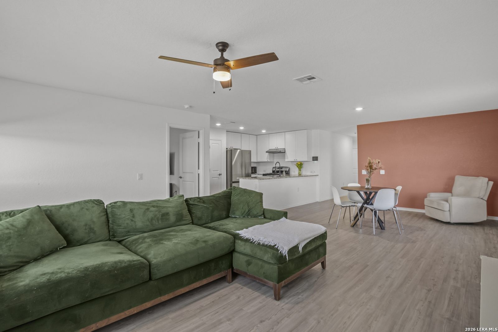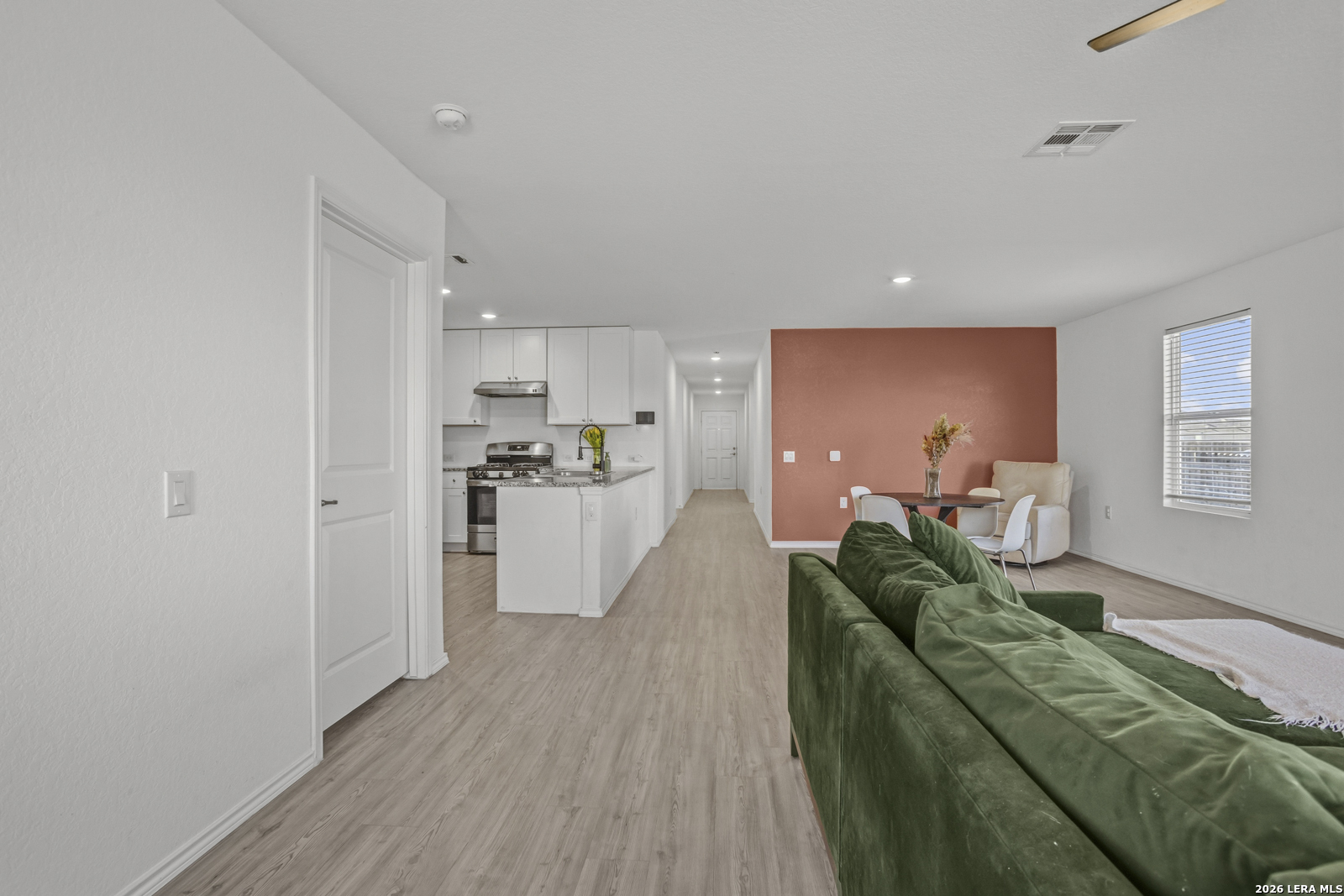 Welcome to this charming 4-bedroom, 2-bath home located on a desirable corner lot in the sought-after Mission del Lago community. With four bedrooms, there is ample space for a home office, guest rooms, or whatever fits your lifestyle. This home features an open floor plan with a connected living room and kitchen, creating a bright and inviting space perfect for both everyday living and entertaining. The kitchen is equipped with granite countertops, stainless steel appliances, and a gas oven, offering both style and functionality. The spacious primary suite provides a relaxing retreat, complete with a full bath. Step outside to enjoy the outdoor patio area, ideal for gatherings or quiet evenings. Residents of Mission del Lago enjoy fantastic neighborhood amenities including a pool, tennis courts, golf course, clubhouse, park, trails, and sports courts. Don't miss the opportunity to make this well-located and amenity-rich home yours!