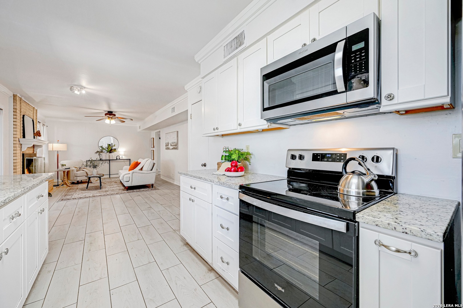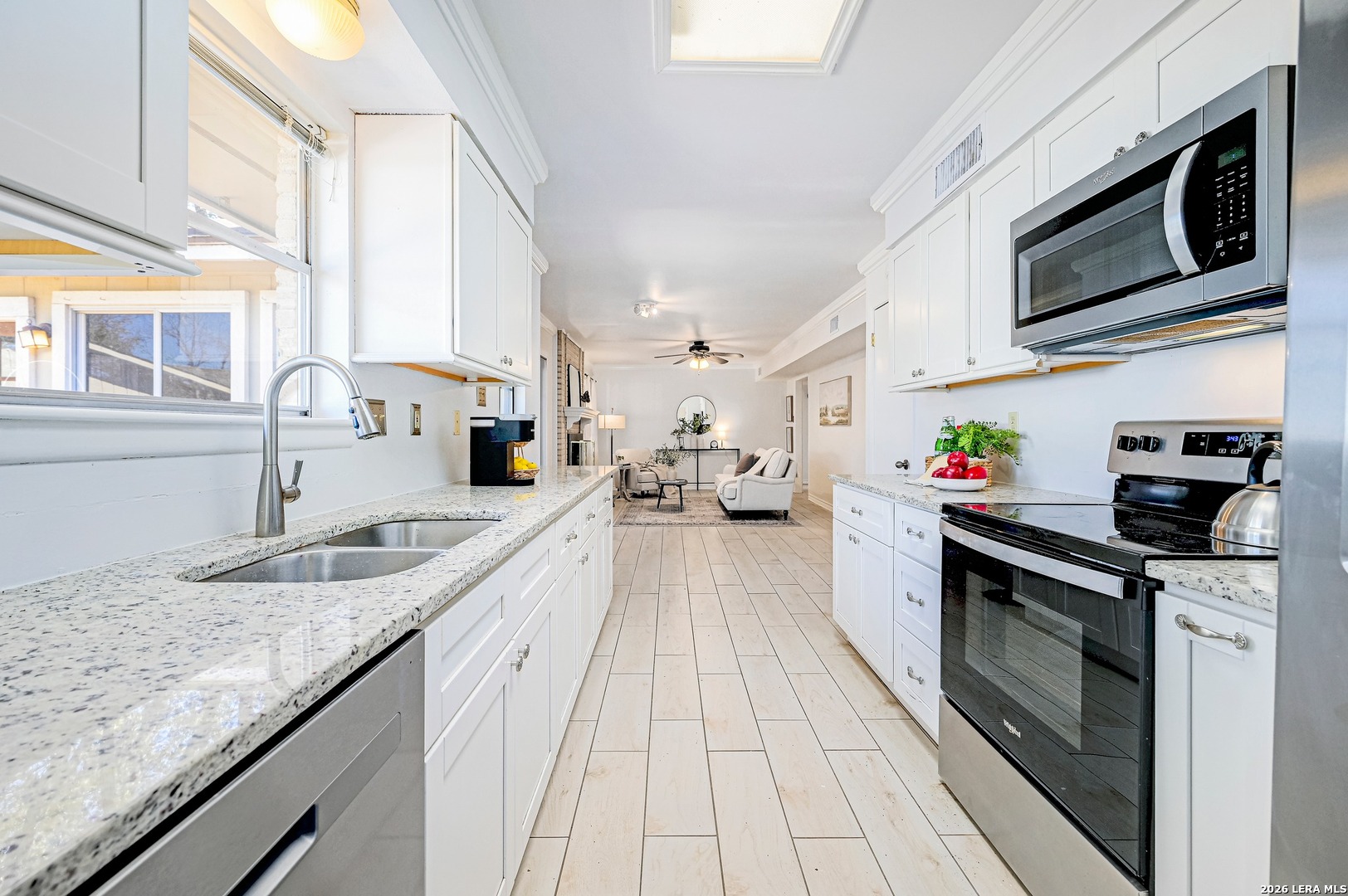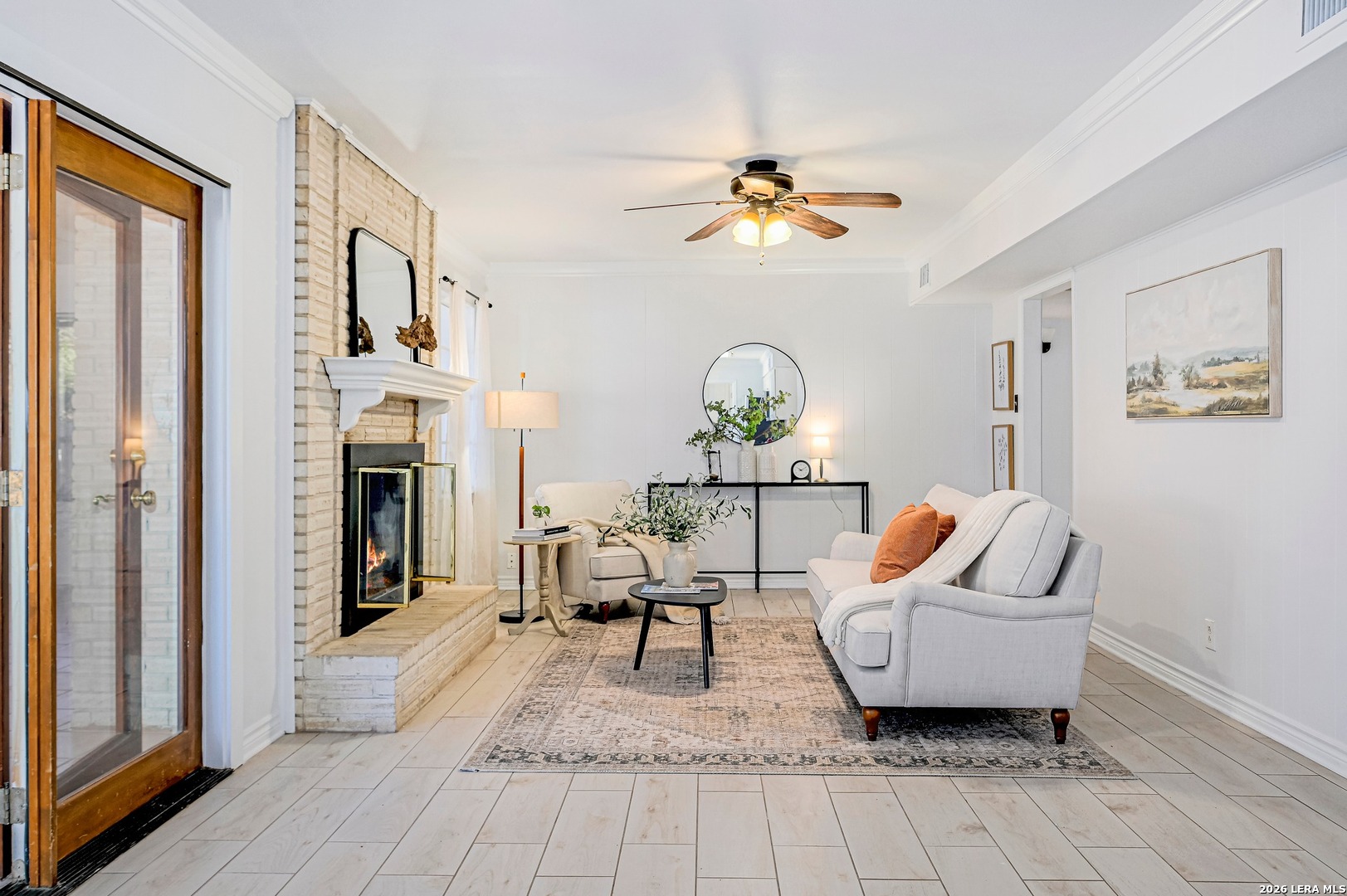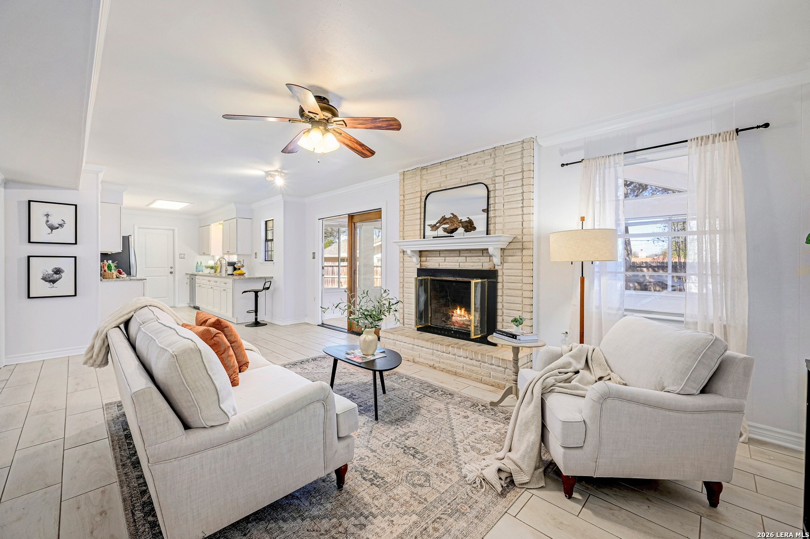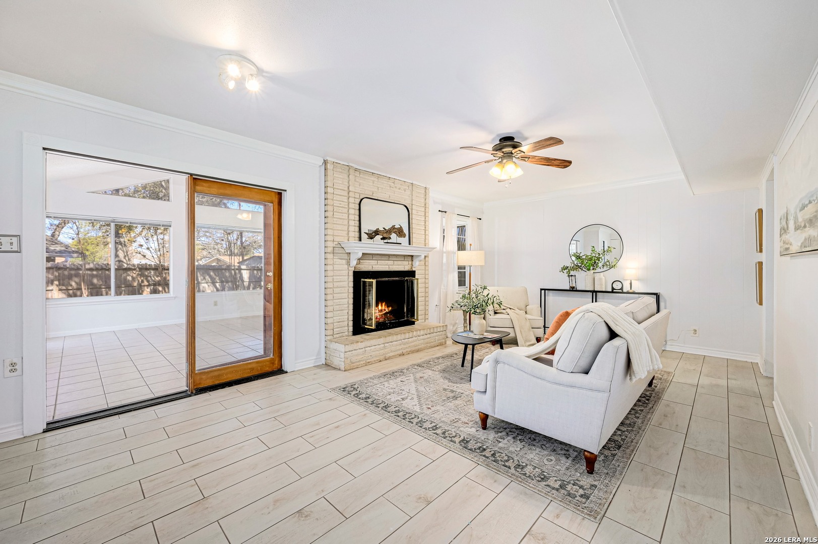 Beautiful, Bright, 2 Story Home on Oversized Lot! Fresh Updates, Breezy Layout, Granite Kitchen, SS Appliances, White Cabinetry, and Wood Look Tile Flooring. This 4 Bedroom, 2 Baths, 2 Bay Garage Home boasts a Gorgeous Floor to Ceiling Gas Brick Fireplace, a Formal Dining Room, and Flows into a Year Round Sun-Room for Endless Possibilities. Generous Lot, Mature Trees, Brick Paved Patio, and Privacy Fenced. Conveniently located- Close to Ft. Sam Houston, Golfing, Swimming, Hiking, Jogging, Parks, Schools, Shopping, Dining and More. Must See!