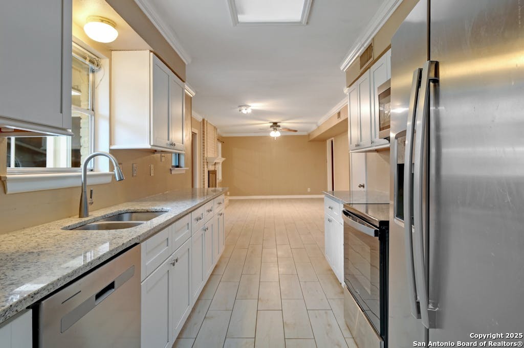 Beautiful, 2 Story Home! Corner Lot, 4 Bedroom, 2 Baths, 2 Bay Garage Home. Open- Concept, Newly Updated Granite Kitchen, SS Appliances, White Cabinetry, and Wood Look Tile Flooring. The Living Room features a Floor to Ceiling Gas Brick Fireplace and lays adjacent to a Formal Dining Room, and a Spacious Year Round Sun-Room. Generous Lot with Large Trees, Brick Paved Patio, and Privacy Fenced. Conveniently located- Close to Ft. Sam Houston, Golf, Swimming, Hiking, Jogging, Parks, Schools, Shopping, & Dining. -Owner Financing Available-