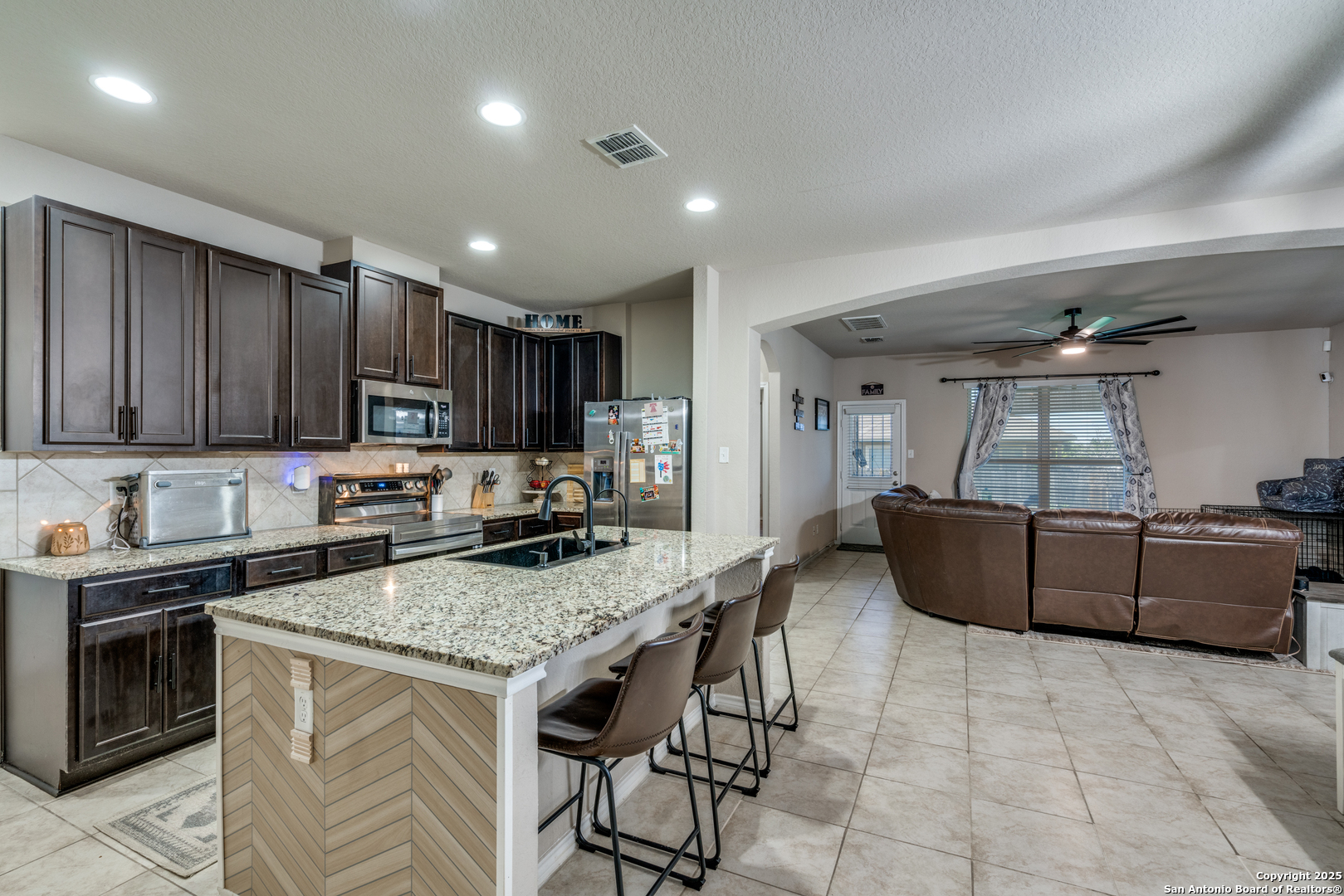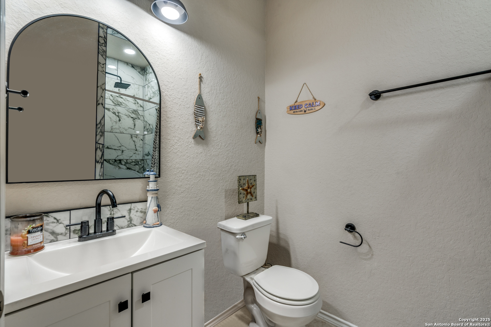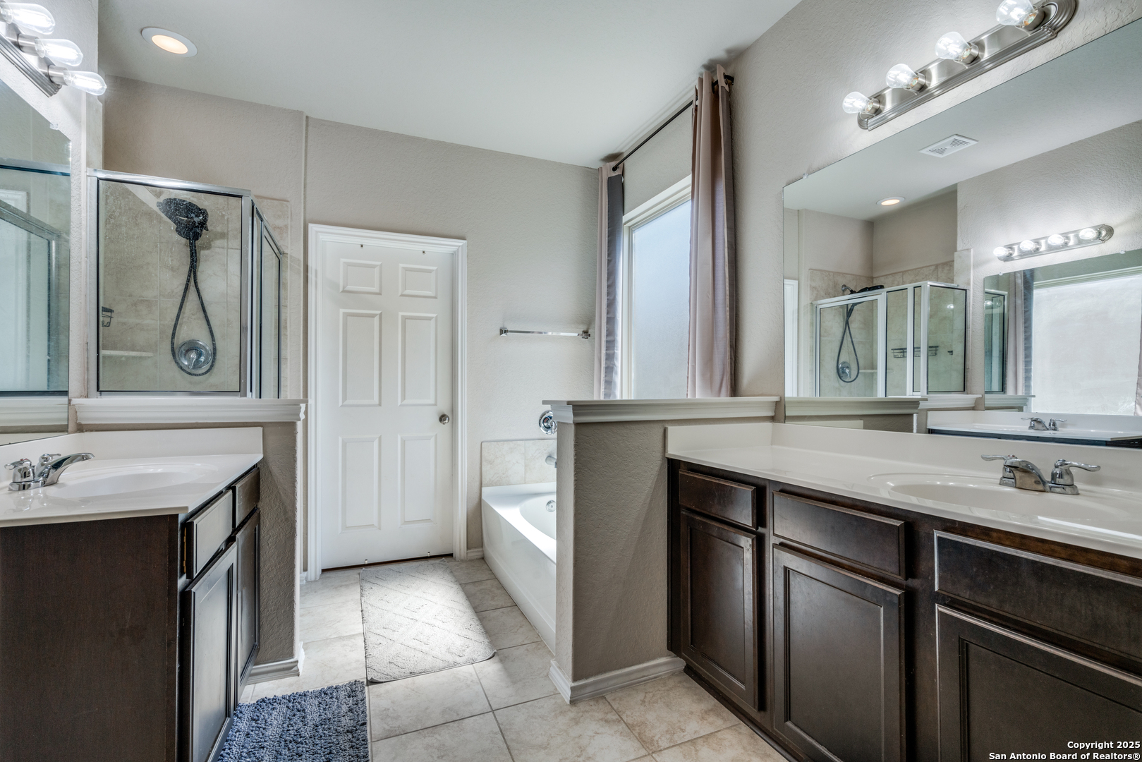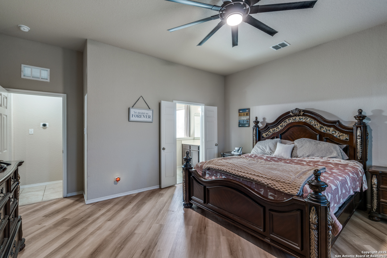 Discover this spacious 5-bedroom, 3.5-bath home featuring the rare convenience of dual primary suites on the first floor-perfect for multi-generational living or hosting extended family. Enter inside to find an updated modern interior with fresh flooring, clean lines, and thoughtful upgrades throughout. Each bedroom is equipped with individually controlled air vents, allowing everyone to set their own comfort level with ease. The backyard is an entertainer's dream, boasting a well-designed above-ground pool and a stylish outdoor canopy retreat that lights up in the evenings-ideal for relaxing after a long day or creating memorable gatherings with family and friends. Located near Randolph AFB and Ft Sam Houston, with quick access to shopping, dining, and local entertainment, this home blends comfort, convenience, and lifestyle.
