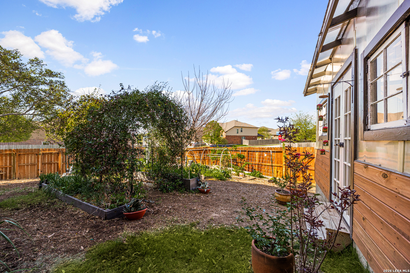 Discover a rare opportunity to live in harmony with the land without sacrificing modern conveniences.This south-facing residence offers a lifestyle of self-sufficiency and serenity. The heart of this home is its connection to the earth. Step outside to over 2,000 square feet of custom-designed garden space, fully equipped with raised beds filled with organic soil, trellises, two fruit trees, and an automated smart irrigation system, ensuring a bountiful harvest with ease. Adorned with a climate-controlled 8x16 custom greenhouse, the land is currently producing enough organic produce to sustain 70% of a family of four's fruits and vegetables. Inside, the home is bathed in natural light. The southern exposure ensures that the Primary Suite, Living Room, and Dining Room bask in sunlight year-round, while being protected from the afternoon heat. The custom chef's kitchen is a showstopper, featuring a massive 12-foot island, floating shelves, a professional range hood, and a stunning backsplash. It comes fully equipped with a separate gas range, a new wall oven, and a nearly-new, ultra-quiet Bosch dishwasher. Ecocentricity is evident throughout the home, from low-VOC paint, LED lights, ceiling fans, intelligent climate control, and solar readiness. An extra layer of protection comes from the Vivant home security system, a brand-new roof, a freshly painted patio railing, a privacy fence installed in the Spring of 2025, a new water heater, and Jason's water softener. Flexibility defines the floor plan. While the main floor offers sun-soaked living, the upstairs is designed for a variety of needs. It features a second Primary Suite, plus two spacious bedrooms with separate sinks and closets connected by a convenient Jack-and-Jill shower and toilet. Whether you are seeking security or looking for a farm-to-table lifestyle, the home is ready to help you grow a better future. Another highlight, the garden will have a plentiful supply of vegetables ready for your spring harvest. Book your personal tour today!