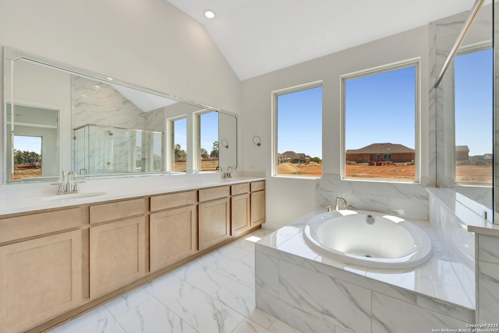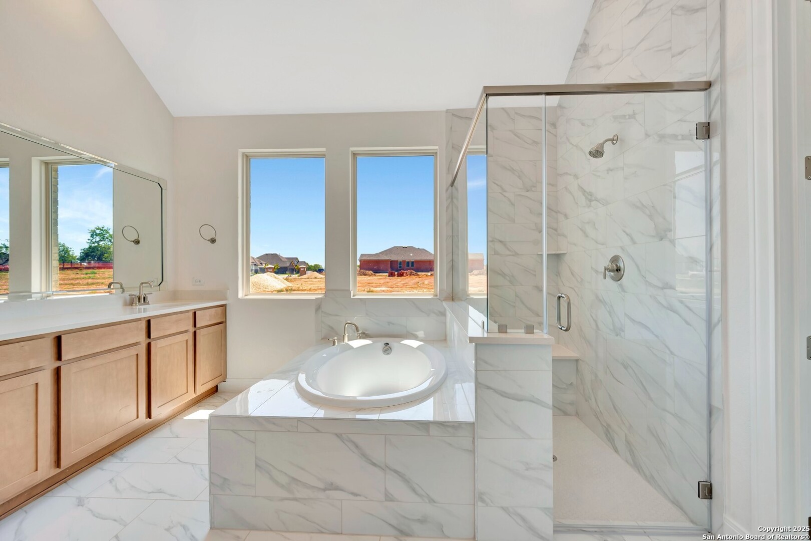 ***READY NOW*** Welcome to 5811 Provo Place in the vibrant city of San Antonio, Texas! This newly constructed 4-bedroom, 3.5-bathroom house by M/I Homes offers a perfect blend of modern design and functionality, making it an ideal sanctuary for you and your family. Situated on a spacious lot with a 1-story layout, this home boasts a generous size of 3,413 sqft, providing ample space for comfortable living. As you step inside, you'll be greeted by a well-appointed kitchen that is sure to inspire your inner chef. The open floorplan seamlessly connects the kitchen to the living areas, creating a welcoming atmosphere for gatherings and everyday living. Venture outdoors to the covered patio, where you can enjoy al fresco dining or simply unwind while taking in the serene surroundings. With 3 parking spaces available, convenience is at your doorstep, ensuring easy access for you and your guests. Each of the 4 bedrooms offers a cozy retreat, while the 3 bathrooms provide both style and functionality. Whether you're looking to relax in a bubble bath or get ready for the day ahead, these bathrooms are designed to meet your needs. Beyond the interior, this property encompasses a host of features that add to its appeal. From the room details to the outdoor areas, every corner of this home has been thoughtfully crafted to provide a comfortable and inviting environment for you and your loved ones. As one of our new homes for sale in San Antonio, TX [address], is located in Preserve at Annabelle Ranch, a wonderful boutique community which offers proximity to Downtown San Antonio, Randolph Air Base, Fort Sam Houston and Brooke Army Medical Center. In addition, residents here enjoy spacious homesites with lots up to a half-acre available.