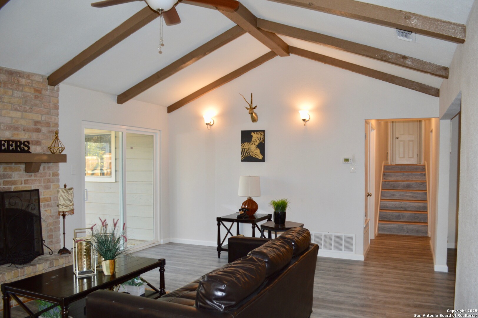 Beautifully remodeled 4 bedroom 2 bath home in highly sought after Leon Valley. This home features renovated kitchen w/ new shaker cabinets, granite & appls., new wood, tile and carpet flooring and new int./ext. paint. Home has been updated with new fixtures throughout and an inviting custom walk in shower in the mst. bath and don't forget the vaulted ceilings in the L/R with a fireplace. Enjoy the fully fenced backyard on 2 levels and well maintained yard. Scheduled a showing today won't last long
