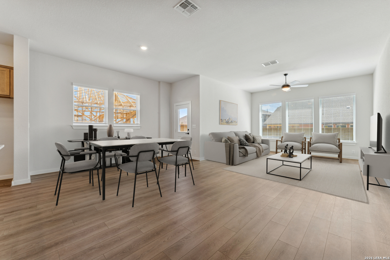 This spacious 4-bedroom, 3-bath home boasts a thoughtfully designed open-concept layout, creating a seamless flow between the living room, kitchen, and dining areas-perfect for entertaining and everyday living. The modern kitchen features plenty of counter space and high-end appliances, while the dining area offers a welcoming space for family meals. The master suite provides a luxurious retreat, complete with a private bathroom and large walk-in closet. Additionally, one of the bedrooms is designed as a private guest suite with its own en-suite bath, offering guests maximum privacy and comfort. A dedicated office space is conveniently located for working from home or as a quiet study area. With two additional well-sized bedrooms and another full bath, this floorplan ensures ample space and functionality for the entire family. Ideal for modern living, it balances privacy and openness for both relaxation and socializing.