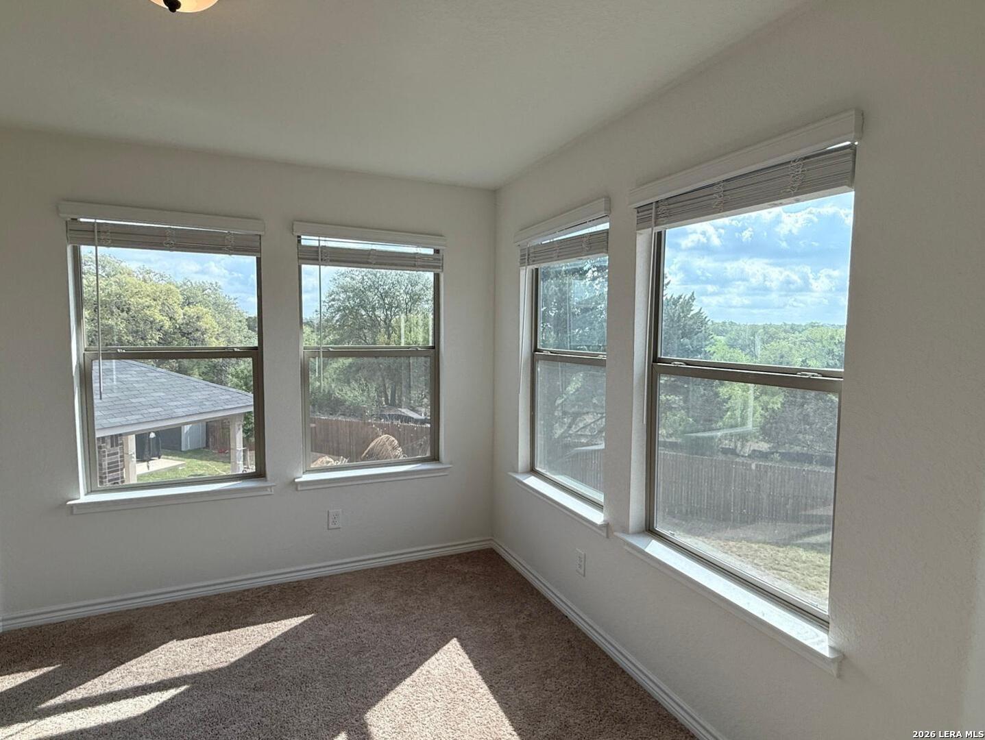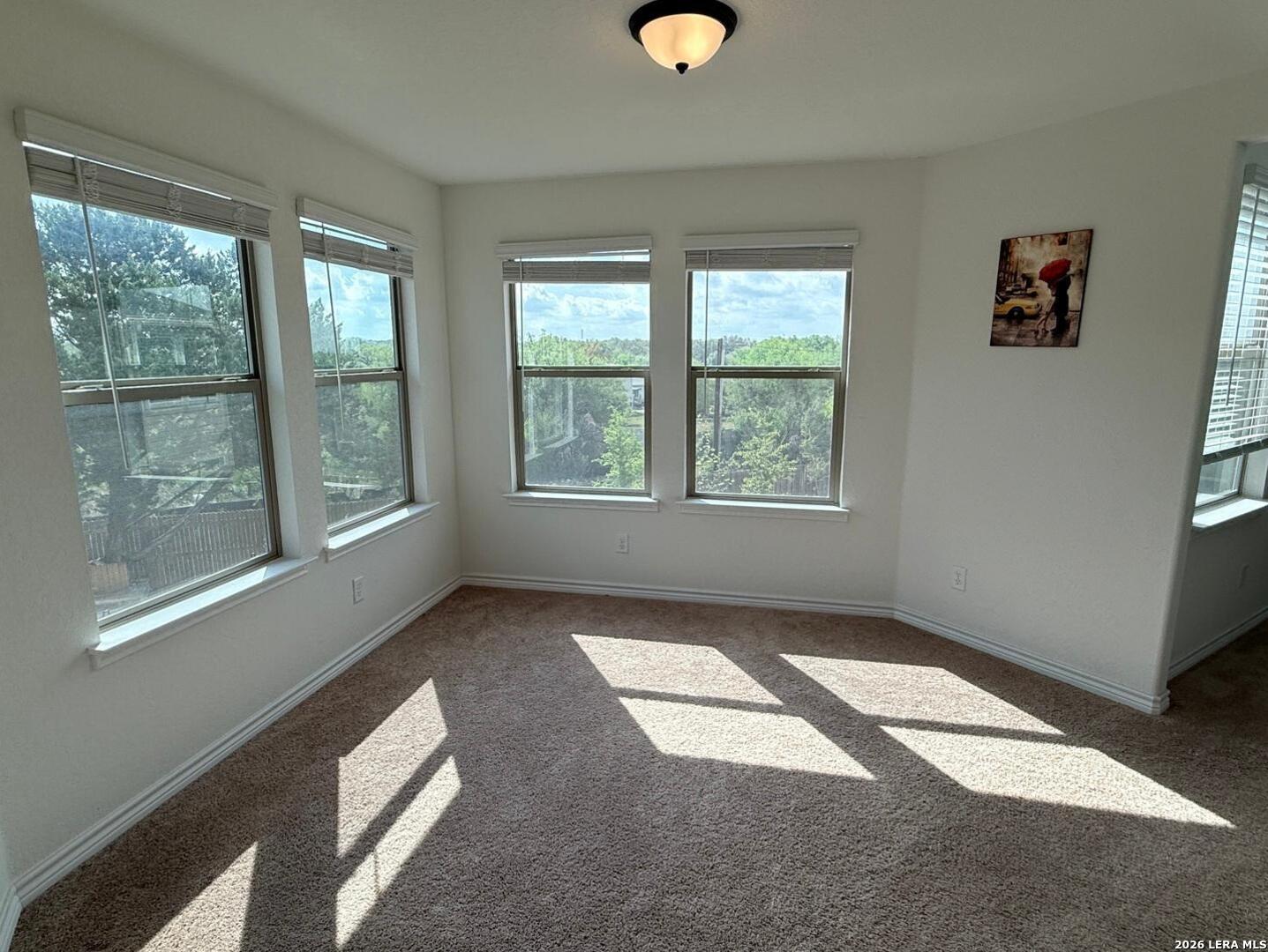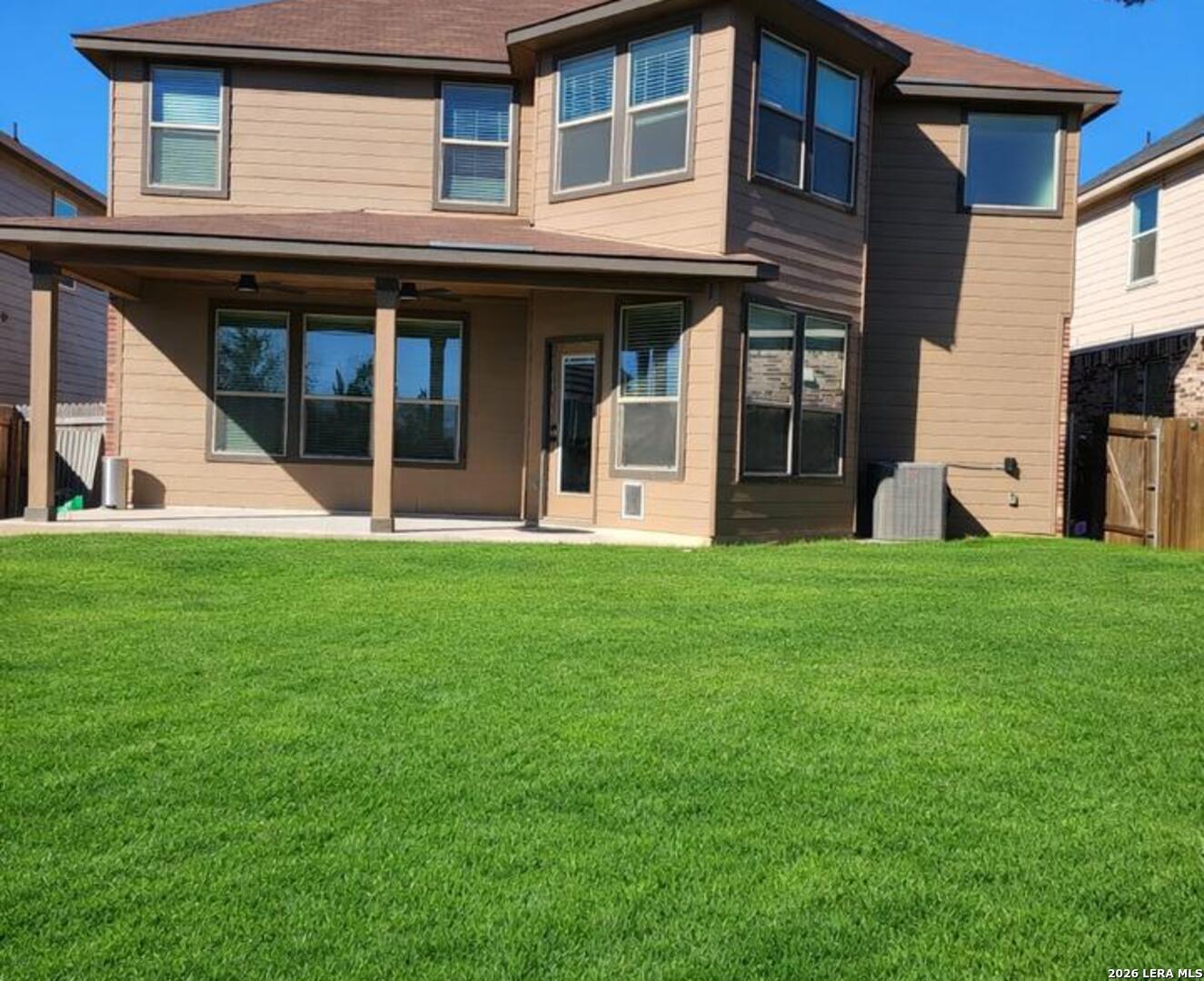 Nearly new 2023 construction. 2,756 sq. ft. 3 bedrooms, 2.5 bathrooms. Features a separate dining room and an eat-in kitchen. Open-concept living layout. Expansive backyard with direct views of the permanent greenbelt. Move-in ready. Located in Judson ISD near local amenities.