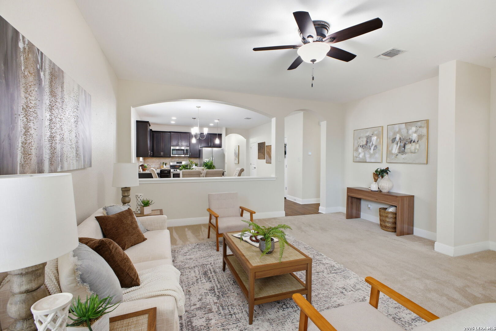 **Open House Saturday 5/2/2026 11am-1pm** Welcome to 5831 Calaveras Way, nestled in one of the most sought after communities in Alamo Ranch. This beautifully maintained 3-bedroom, 2-bathroom home with a 2-car garage offers the perfect blend of comfort, style, and everyday luxury, all set in a quiet and inviting neighborhood. From the moment you walk in, you will feel the difference. Thoughtful upgrades throughout the home create a warm and elevated living experience, including plush memory foam carpet that adds an extra level of comfort underfoot. The home has been carefully enhanced with a new water softener and a beautifully upgraded primary bathroom that brings a spa like feel into your daily routine. Step outside and you will find where this home truly shines. The backyard has been newly landscaped and transformed into a private oasis. Picture yourself starting your mornings with a cup of coffee or winding down in the evening with a good book, all while listening to the peaceful sounds of birds gathering around the birdhouse. It is the kind of space that invites you to slow down, breathe, and truly enjoy being home. Whether you are hosting guests or enjoying a quiet night in, this home offers the perfect setting for both. Located in a desirable area of Alamo Ranch with convenient access to shopping, dining, and top amenities, this is more than just a home, it is a lifestyle. This one is even better in person. Schedule your private showing today and come experience it for yourself.