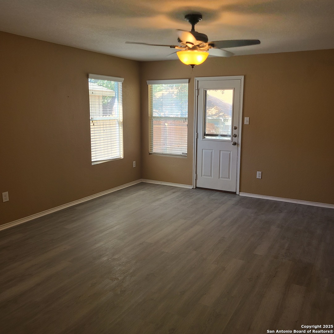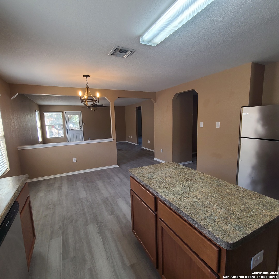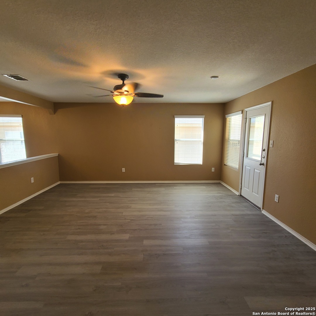 ~Spacious 3/2/2 single story home in The Park @ University Hills~Beautiful laminate flooring just installed throughout!~Flex room off of the entryway can be a formal dining room/study/living room~Island kitchen with lots of cabinets & counterspace flows into the bright living room~Primary suite boasts a tray ceiling, ceiling fan, & walk-in closet~Primary bathroom has a double vanity & updated tiled shower~Covered patio + extended patio area~Great location, near UTSA, I-10, USAA, shopping, restaurants, The Rim, La Cantera~