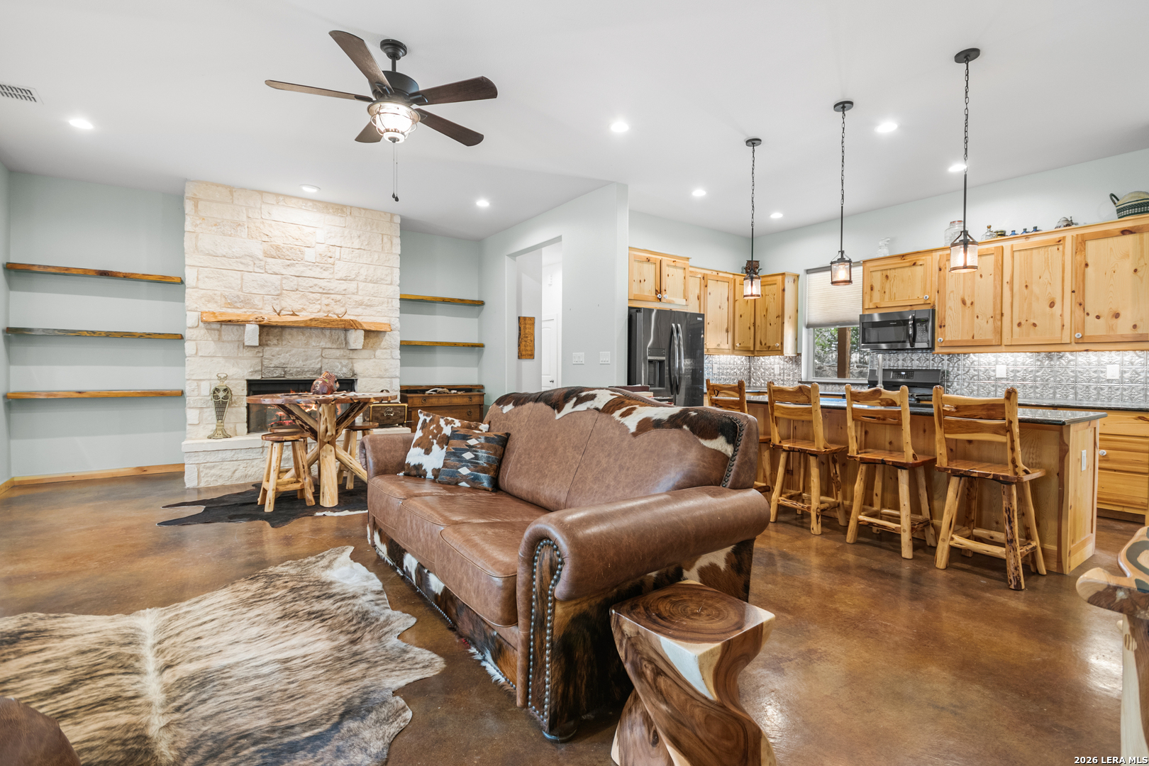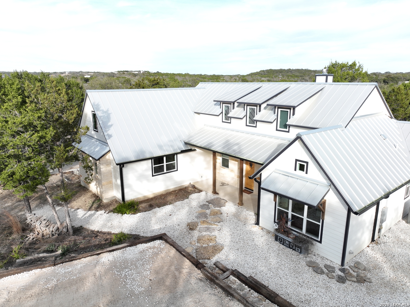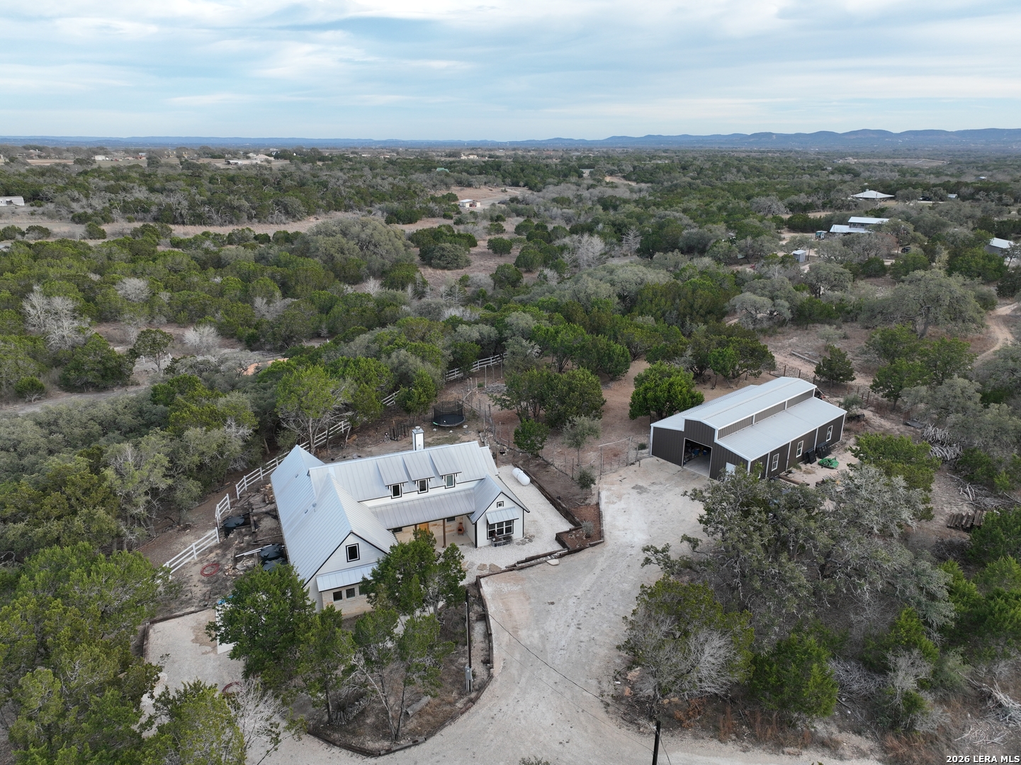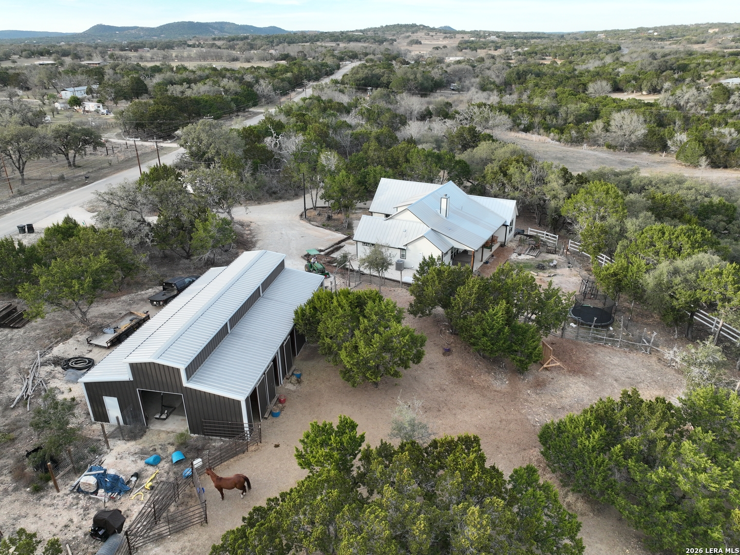 Set on 13.46 unrestricted acres with no HOA, this thoughtfully built homestead property offers the freedom to live the Hill Country lifestyle your way. Built by Barton Custom Homes, the 2,577 square foot home features 3 bedrooms, 2.5 baths, a dedicated office, and an upstairs bonus room ideal for a playroom, craft space, or hobby retreat. The land is equally impressive. Approximately 1,600 linear feet of fencing encloses half the property, making it ready for livestock. A chicken coop, 36x60 barn with partial concrete, RV hookup, 4,000-gallon cistern, and three 1,000-gallon poly rain collection tanks support a working homestead or hobby farm that can evolve over time. The barn's versatility allows for equipment storage, animals, workshop space, or future expansion. A few of the home features are: custom knotty alder cabinetry, shelving around the fireplace and mantle are custom cyprus, 2x6 walls and trusses, enhanced with foam insulation, a three-zone AirTran HVAC system (one unit upstairs, two downstairs), propane heat and stove, on-demand water heater, and a 500-gallon propane tank. Surrounded by mature trees, rolling hills, and a seasonal creekbed, the property invites hiking, fossil hunting, and enjoying the natural shade throughout the year. Herds of axis and whitetail deer can be spotted frequently. The expansive back porch, complete with a hot tub, is the perfect place to enjoy quiet mornings and relaxed evenings. Located on a peaceful street where your neighbors ride horses to pass time, yet just 5 miles to town, this property offers both privacy and accessibility. Conveniently positioned 30 miles to Boerne, 24 miles to Kerrville, and 55 miles to the San Antonio airport, all in Bandera, the Cowboy Capital of the World. With infrastructure in place for animals and agriculture, yet endless flexibility for other pursuits, this property truly becomes whatever you envision.