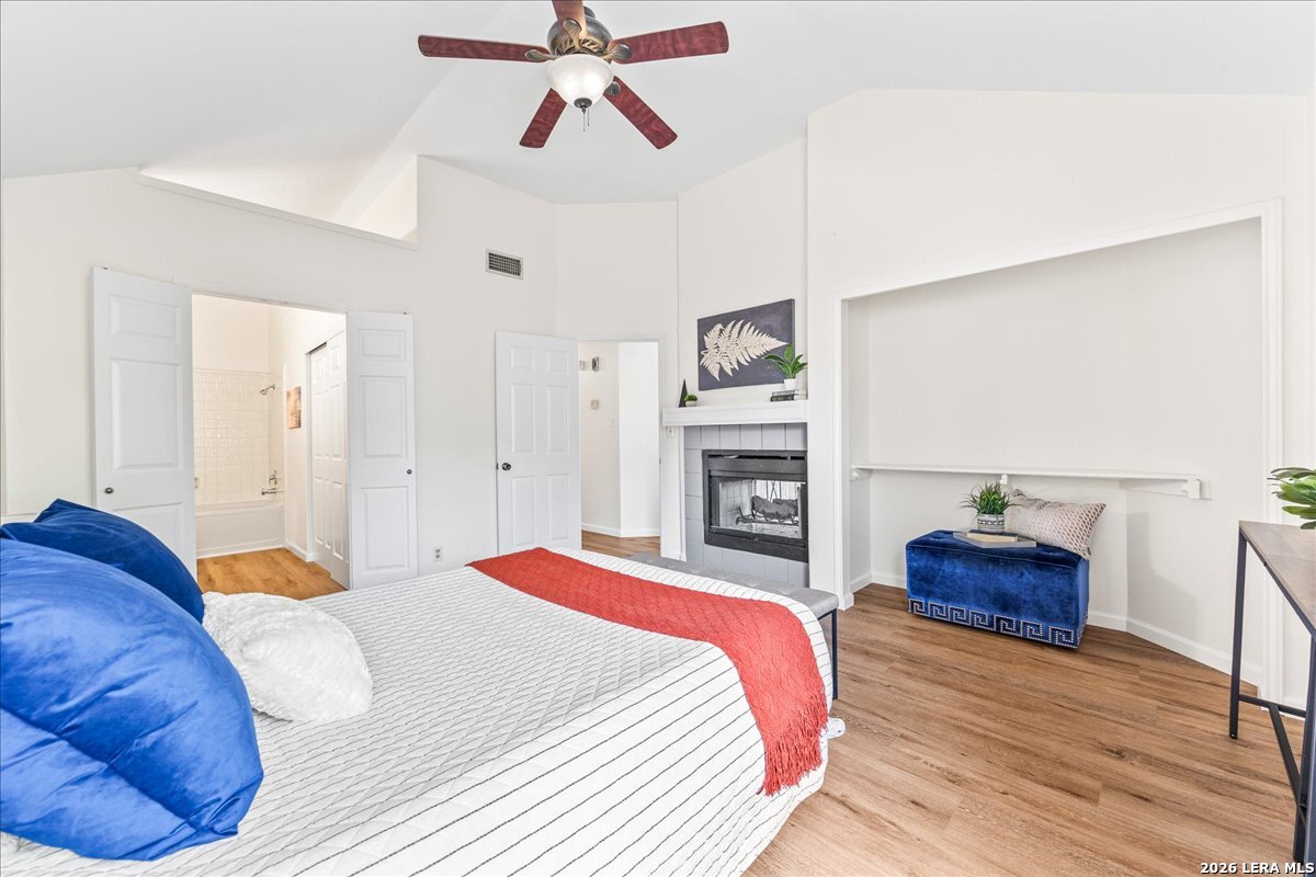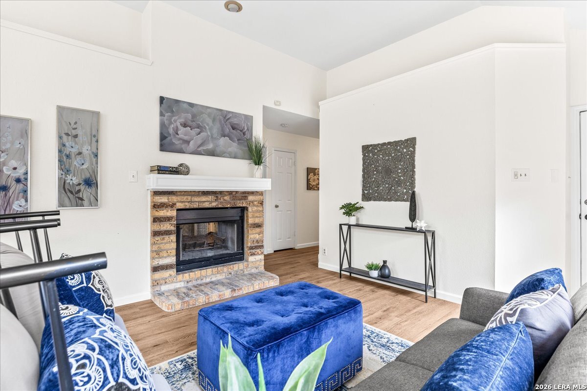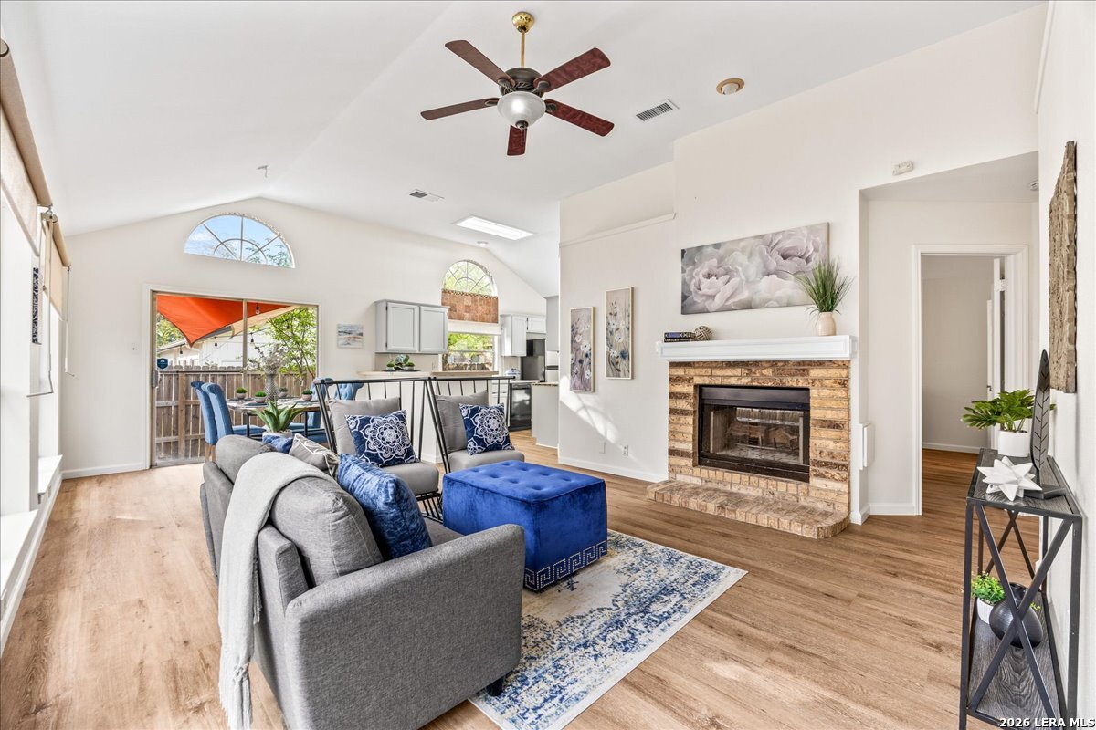 This one wont last! Move-in ready 3-bedroom, 2-bath home featuring fresh interior paint, brand new LVP flooring, and new carpet in secondary bedrooms. Enjoy an open-concept layout with abundant natural light and a stunning double-sided fireplace that adds warmth and character to both the living and primary spaces. The kitchen offers ample cabinet and counter space with a functional layout perfect for everyday living. Spacious primary suite with ensuite bath, plus generously sized secondary bedrooms. Step outside to a private backyard with patio space ideal for relaxing or entertaining and an oversized 2 car garage, great for storage! Conveniently located with easy access to shopping, dining, and major highways.