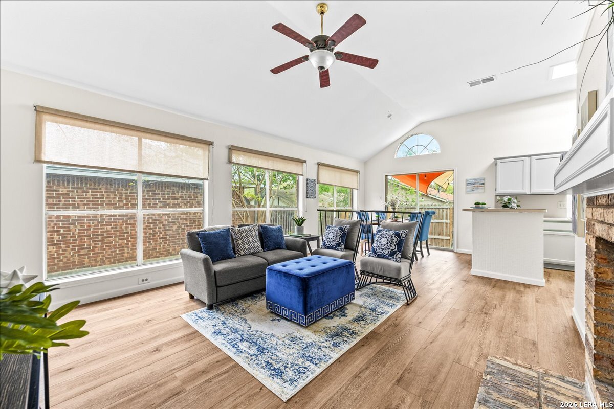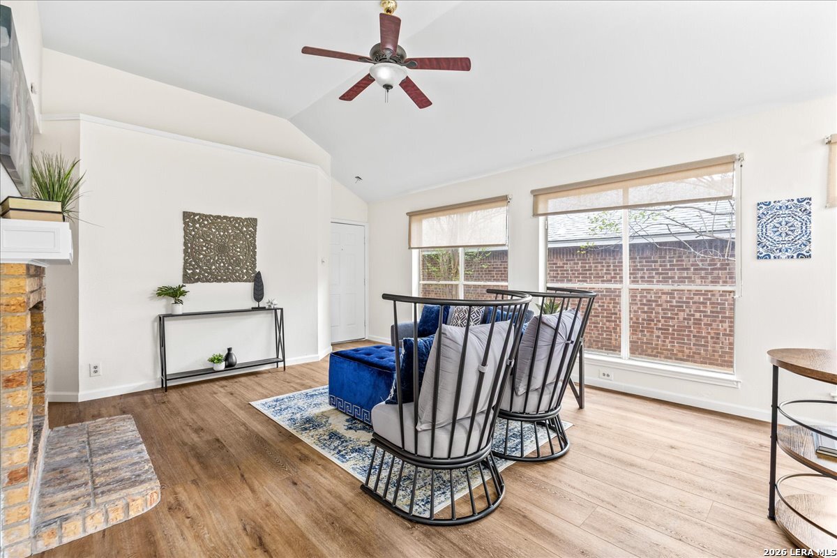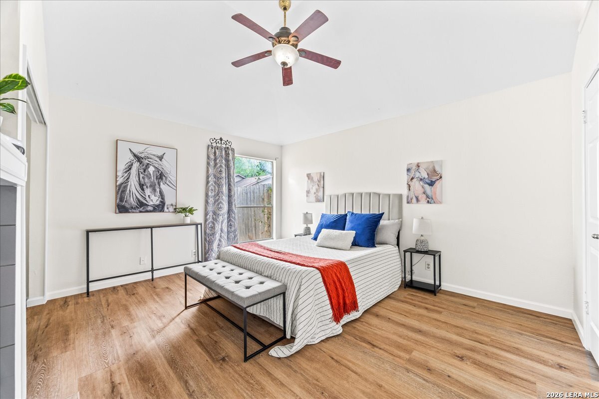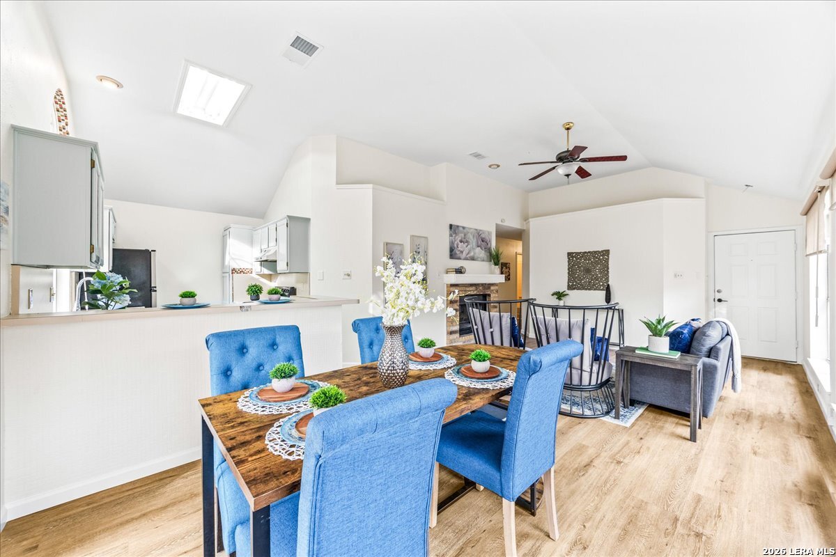 This one wont last! Move-in ready 3-bedroom, 2-bath home featuring fresh interior paint, brand new LVP flooring, and new carpet in secondary bedrooms. Enjoy an open-concept layout with abundant natural light and a stunning double-sided fireplace that adds warmth and character to both the living and primary spaces. The kitchen offers ample cabinet and counter space with a functional layout perfect for everyday living. Spacious primary suite with ensuite bath, plus generously sized secondary bedrooms. Step outside to a private backyard with patio space ideal for relaxing or entertaining and an oversized 2 car garage, great for storage! Conveniently located with easy access to shopping, dining, and major highways.