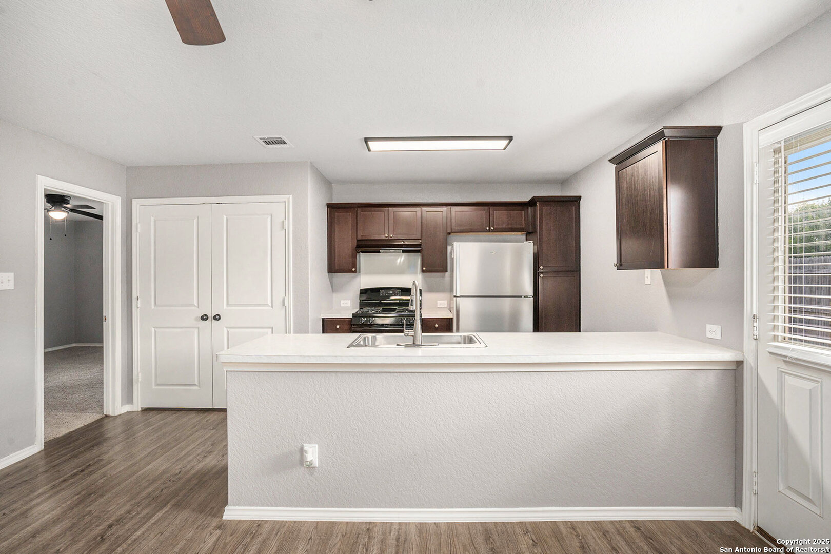 Welcome home to this charming single-story property on a desirable corner lot! The open floor plan combines the living, dining, and kitchen areas, creating a welcoming space for both everyday living and entertaining. The cute kitchen area offers plenty of charm and functionality, making meal prep a joy. The primary bedroom features its own full bath with a shower/tub combo and a spacious walk-in closet, providing both comfort and convenience. Step outside to enjoy the fenced backyard-ideal for pets, gatherings, or simply relaxing in your own private outdoor space.