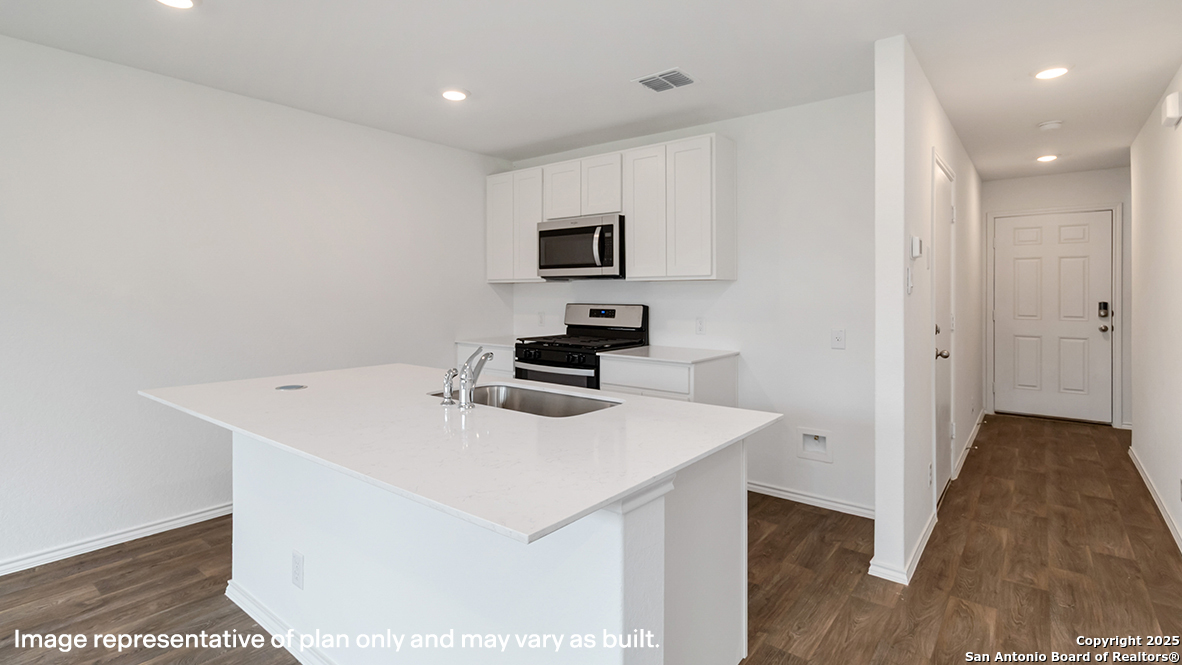 The Robin is a charming two-story home featured at Blue Ridge Ranch in San Antonio, TX. Featuring 2 classic front exteriors, this 2 bedroom, 2.5 bathroom home also offers 1130 square feet of living space and a 1-car garage. A front porch (per plan) welcomes you into the home and opens to the gourmet kitchen which includes quartz counter tops, quality cabinets, stainless steel appliances and an open concept floorplan with the kitchen flowing seamlessly into the dining room and living room. The main bedroom has an attractive ensuite bathroom that features a quartz vanity countertop and quality cabinetry. Enjoy additional storage with a spacious walk-in closet located off of the primary bathroom. Your secondary bedroom will feature quality carpet flooring and a closet, and can be used as bedrooms, offices, work out spaces or other bonus rooms. The possibilities are endless with The Robin floor plan. Additional features include sheet vinyl flooring in entry, living room, and all wet areas, quartz counter tops in all bathrooms and HOME IS CONNECTED base package. Using one central hub that talks to all the devices in your home, you can control the lights, thermostat and locks, all from your cellular device.