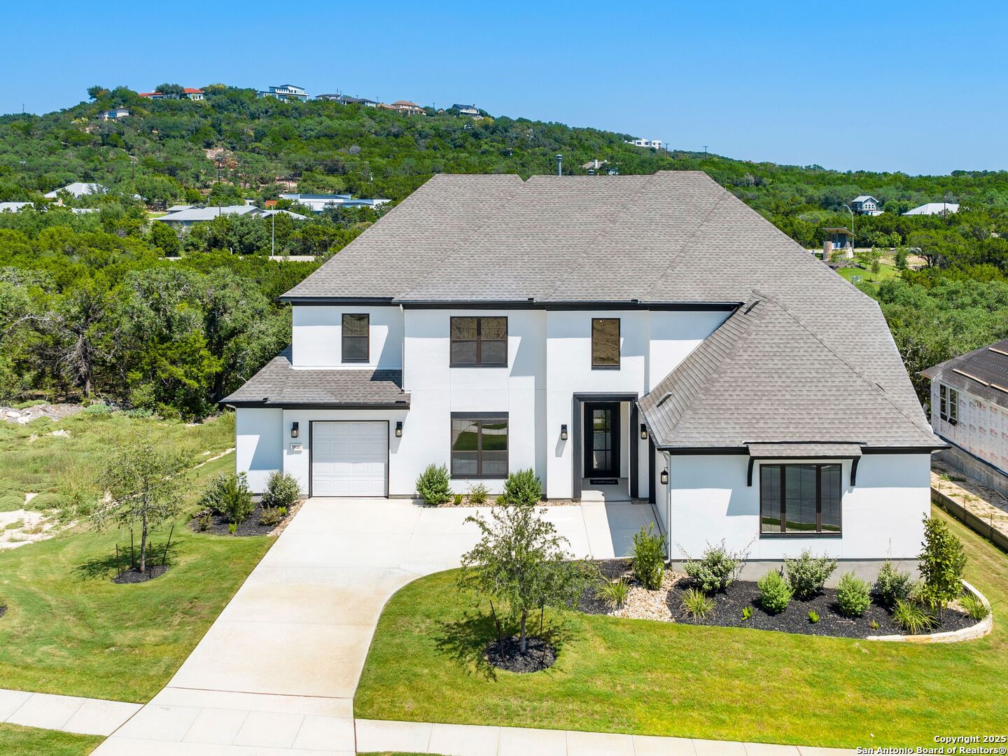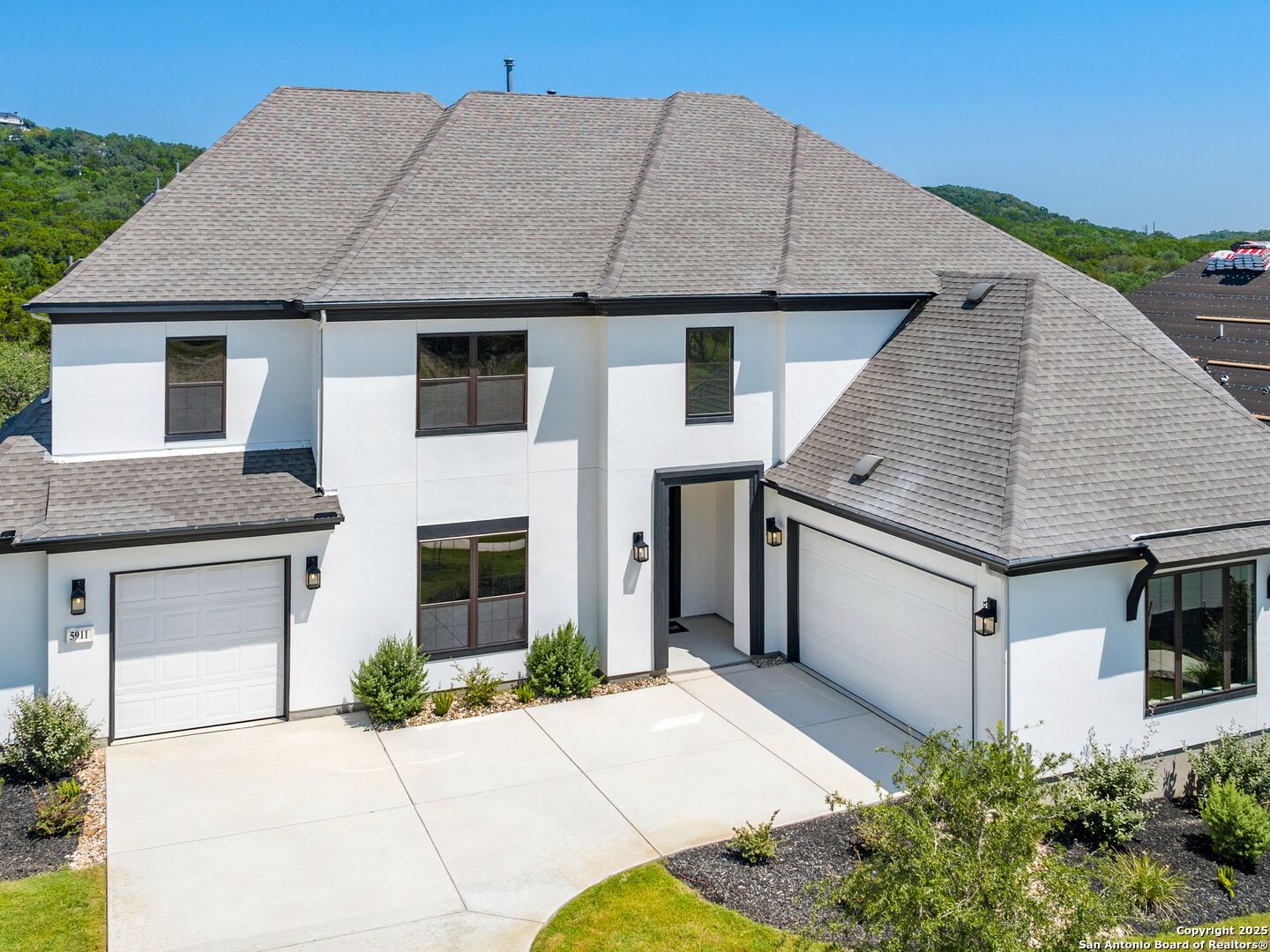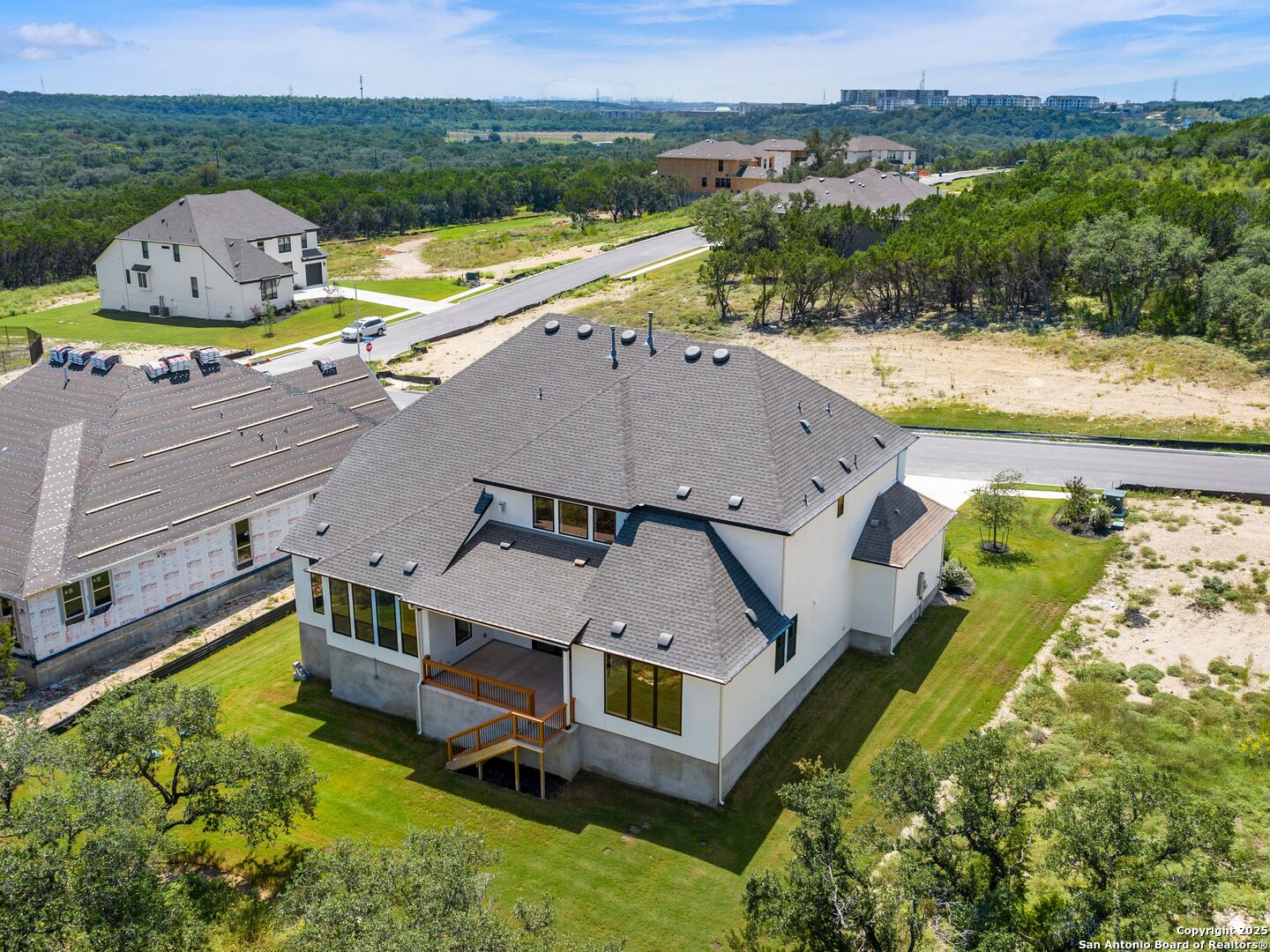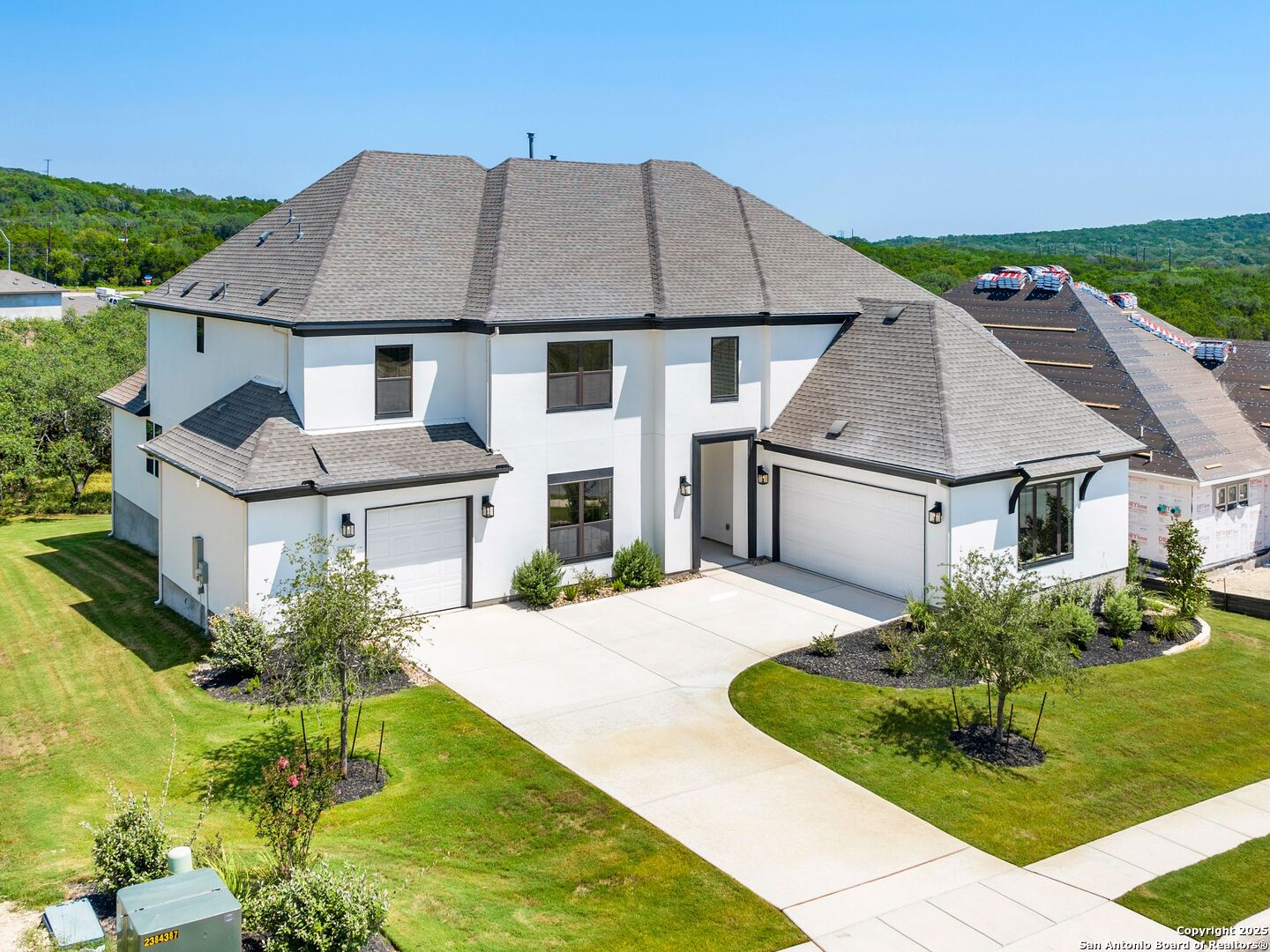 A remarkable opportunity awaits with this new construction, Partridge floor plan by DRB Homes, set on an expansive half-acre homesite with sweeping views. Designed with both sophistication and livability in mind, the residence spans over 4,500 square feet and showcases meticulous upgrades throughout. The gourmet kitchen is an entertainer's dream with custom 42-inch cabinetry accented by crown molding and glass fronts, a generous center island, built-in double ovens, and premium stainless steel appliances. The kitchen flows seamlessly into the grand family room, where a striking fireplace anchors the space and creates an inviting atmosphere. The layout offers exceptional versatility with dedicated areas for entertainment and relaxation, including a media room, game room, and extended breakfast nook. The private owner's retreat is thoughtfully designed with dual vanities and abundant space, while the additional bedrooms each feature en-suite baths for comfort and privacy. Completing the home are practical touches such as a mudroom, 3.5-car garage, and expansive covered patio ideal for outdoor gatherings. Fully landscaped and ready for immediate enjoyment, this property blends timeless design with everyday convenience in a highly desirable setting.
