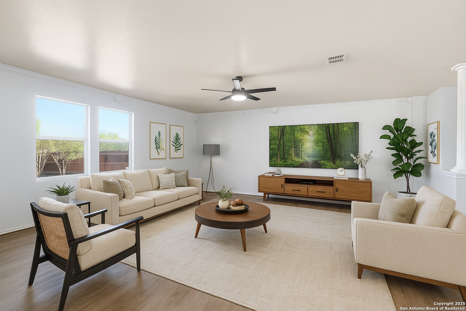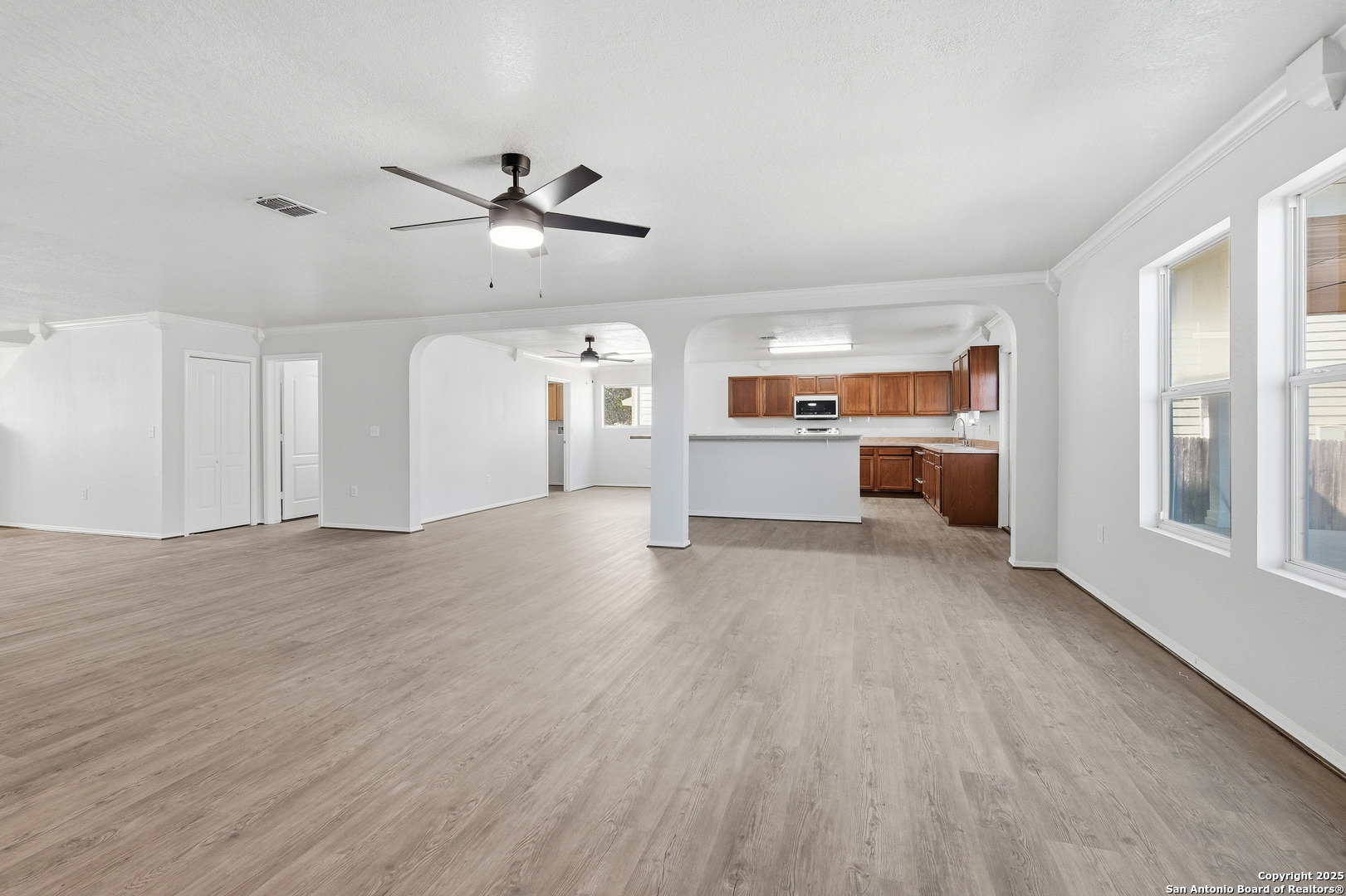 THIS IS THE ONE! With all new floors, paint, and fixtures, (October 2025) This home features two huge living rooms, perfect for formal gatherings in one and cozy time in the other, alongside very spacious bedrooms offering ample room for rest, work or play. The kitchen is a dream for those who cook or entertain-lots of cabinet and counter space, ideal for cooking, serving or simply staging your favorite appliances. Step outside into a large backyard offering privacy and room to roam, set up outdoor entertaining or pets play freely. Beyond the walls you'll love the location: you're minutes to The Forum at Olympia Parkway in nearby Selma for shopping, dining and entertainment. For military, the home's location offers access to Joint Base San Antonio (JBSA) installations including Randolph Air Force Base and Fort Sam Houston, all within about a 30-minute commute. Don't miss the opportunity to make this spacious, well-appointed home your own. It blends everyday comfort, entertaining space and location with ease.