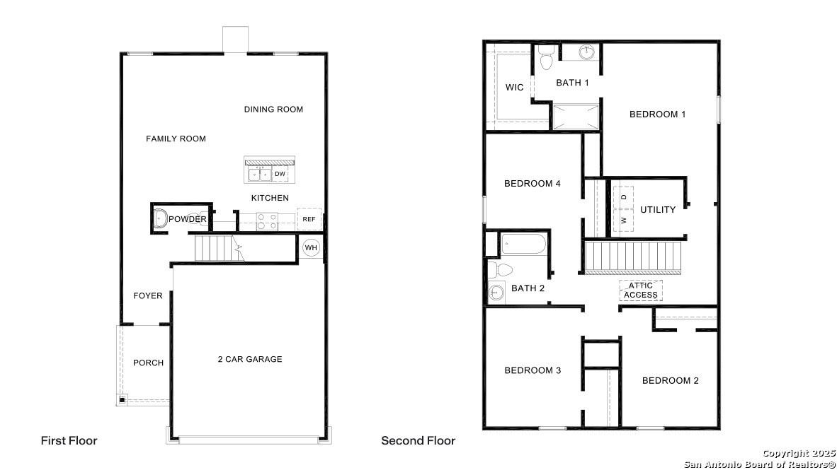 Welcome to The Clyde, a two-story home located at Blue Ridge Ranch in San Antonio, TX. This floor plan offers 2 classic exteriors and 2-car garage. Inside this 4 bedroom, 2.5 bathroom home, you'll find 1617 square feet of living space. The entry opens to a spacious family room before flowing into the dining room and kitchen with an open floorplan concept. The kitchen includes quartz counter tops, quality cabinetry, stainless steel appliances, large breakfast island, and pantry. Head up the stairs to find the main bedroom suite, all secondary bedrooms, the laundry room, and a full bath. The Clyde layout is perfect if you love entertaining downstairs and relaxing upstairs. The private main bedroom features an attractive ensuite with quality cabinetry. A spacious tiled walk-in shower and large walk-in closet provide all the space and convenience you need. Additional features of The Clyde floor plan include sheet vinyl flooring in entry, living room, and all wet areas, quartz counter tops in all bathrooms and HOME IS CONNECTED base package. Using one central hub that talks to all the devices in your home, you can control the lights, thermostat and locks, all from your cellular device.