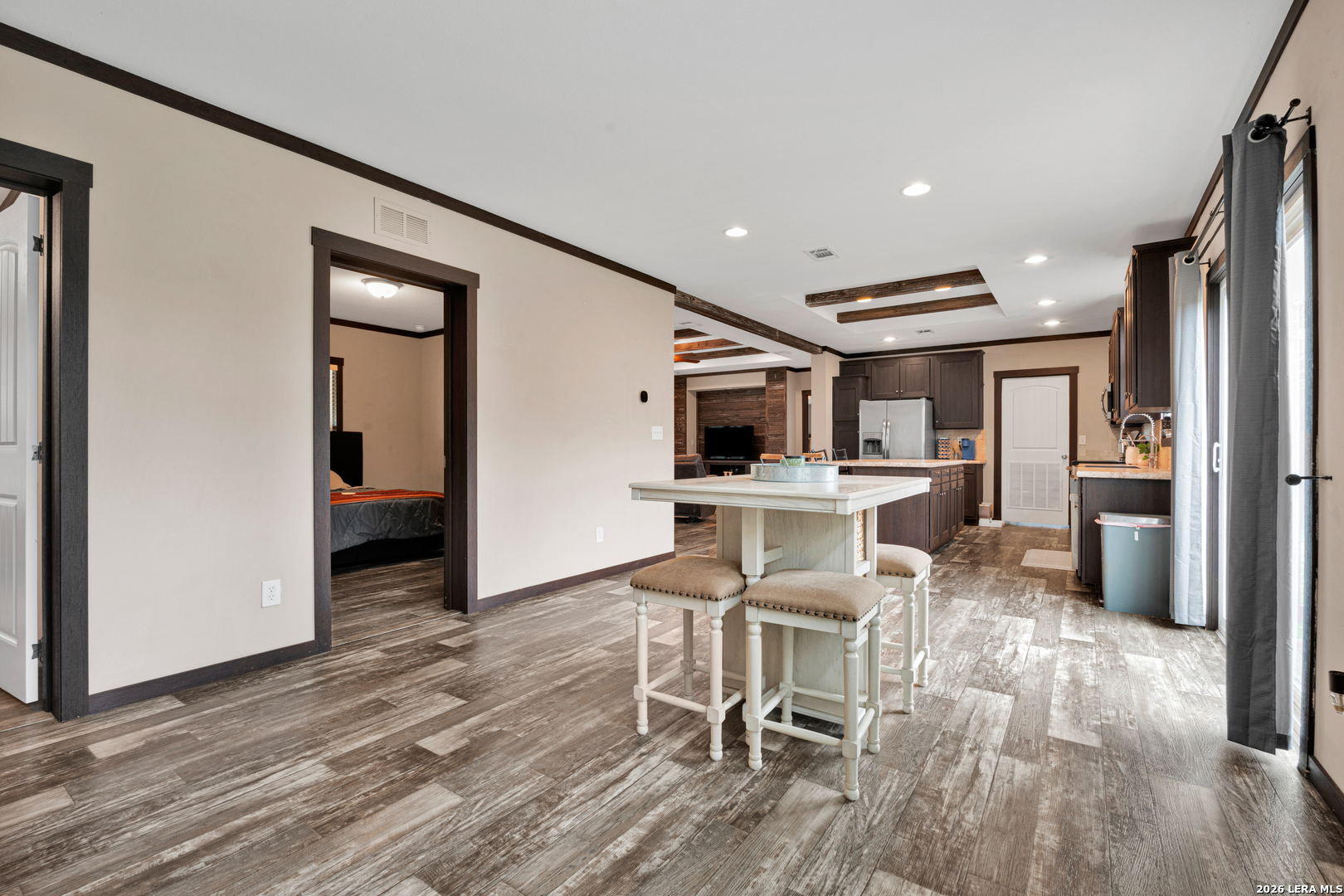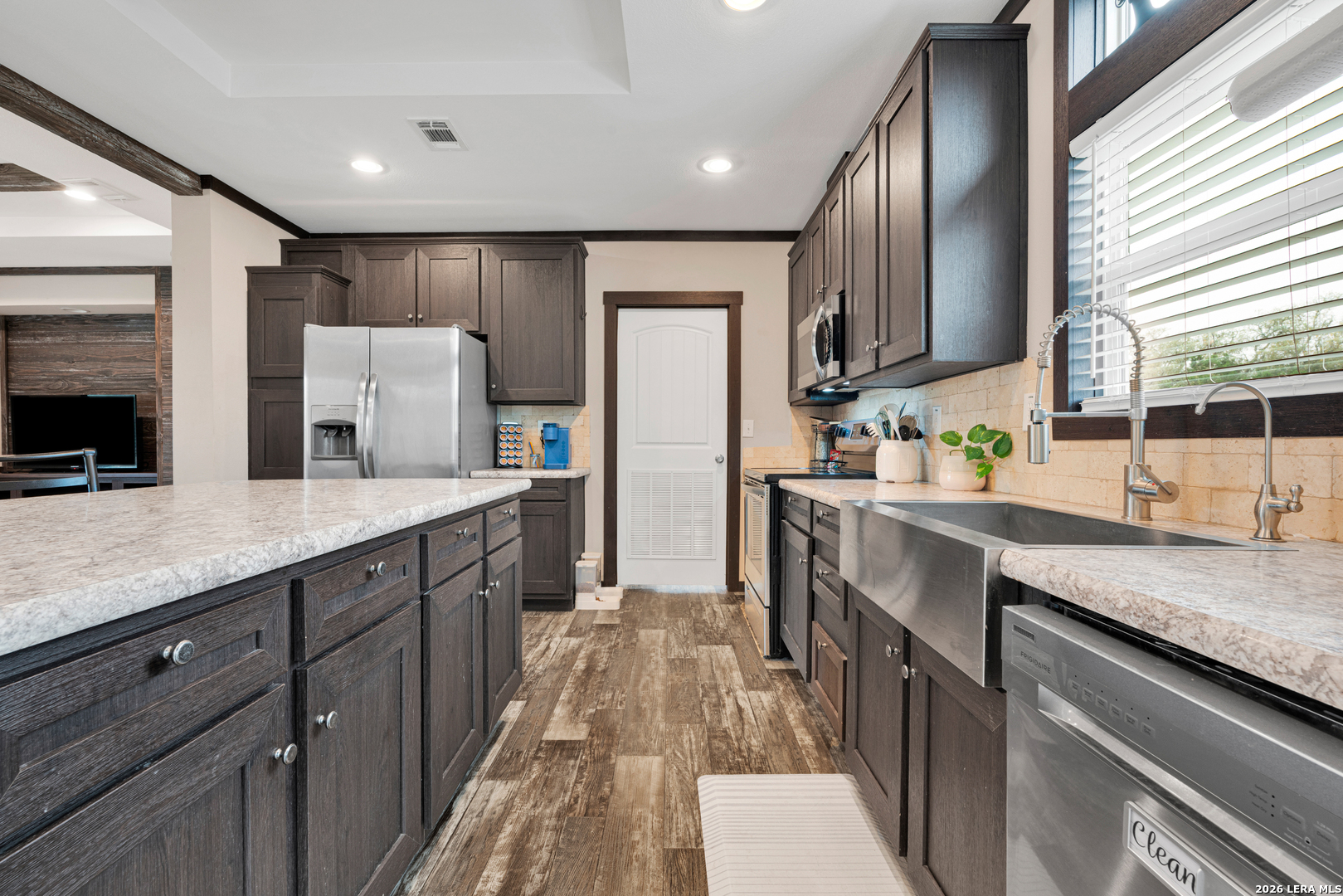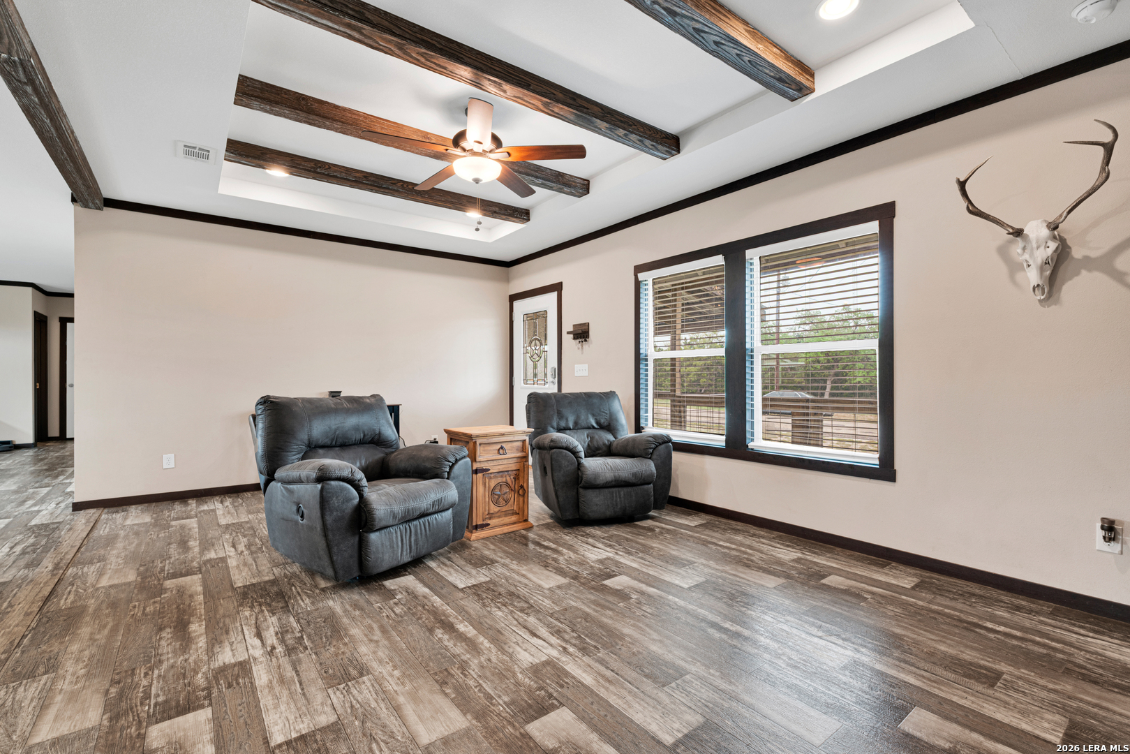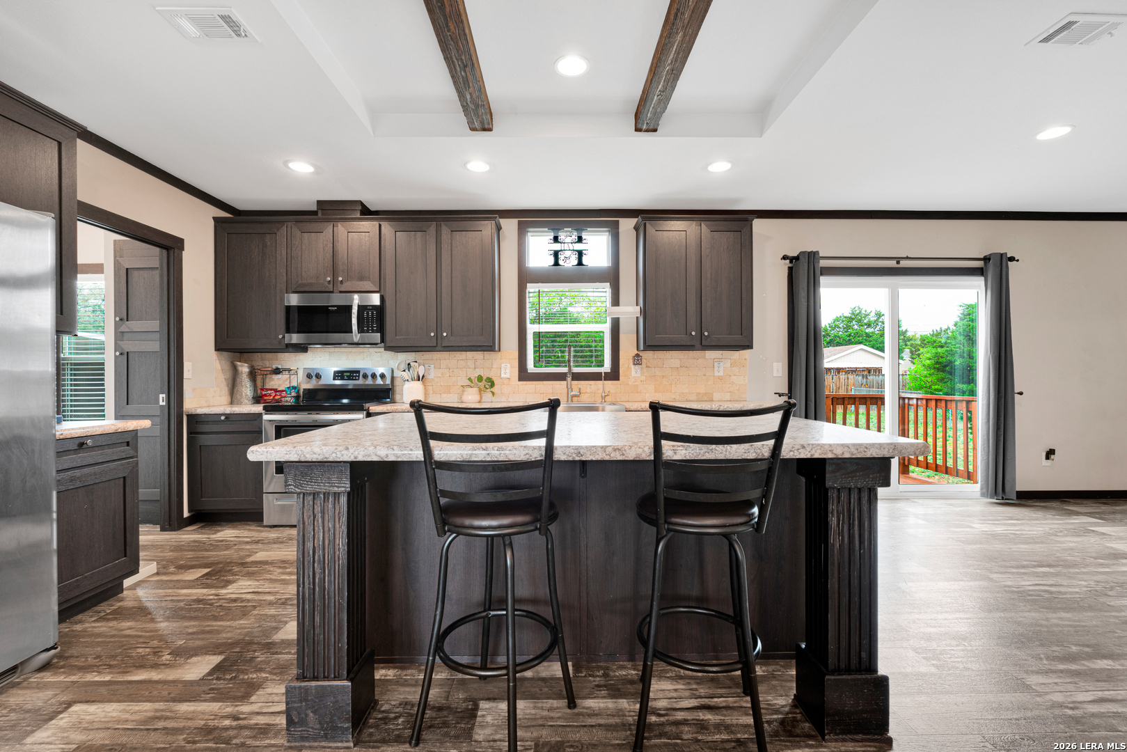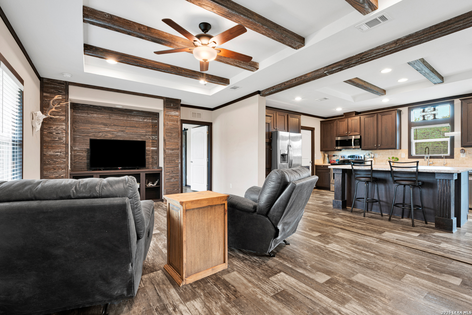Discover this beautiful Hill Country home located in a secure, gated community in Bandera. Start your mornings on the spacious covered front deck, where you can unwind while enjoying the tranquil setting and frequent wildlife sightings. Inside, the home features an airy open-concept design with a large kitchen island-perfect for hosting gatherings. The expansive primary suite offers a private retreat, highlighted by an upgraded, spa-inspired bathroom. This like-new residence blends comfort and modern style in a peaceful setting away from the noise of city life-while still providing dependable BEC Fiber internet. Community amenities include a pool, playground, sports courts, fishing pier, and more, with convenient access to a nearby lake adding to the home's appeal.