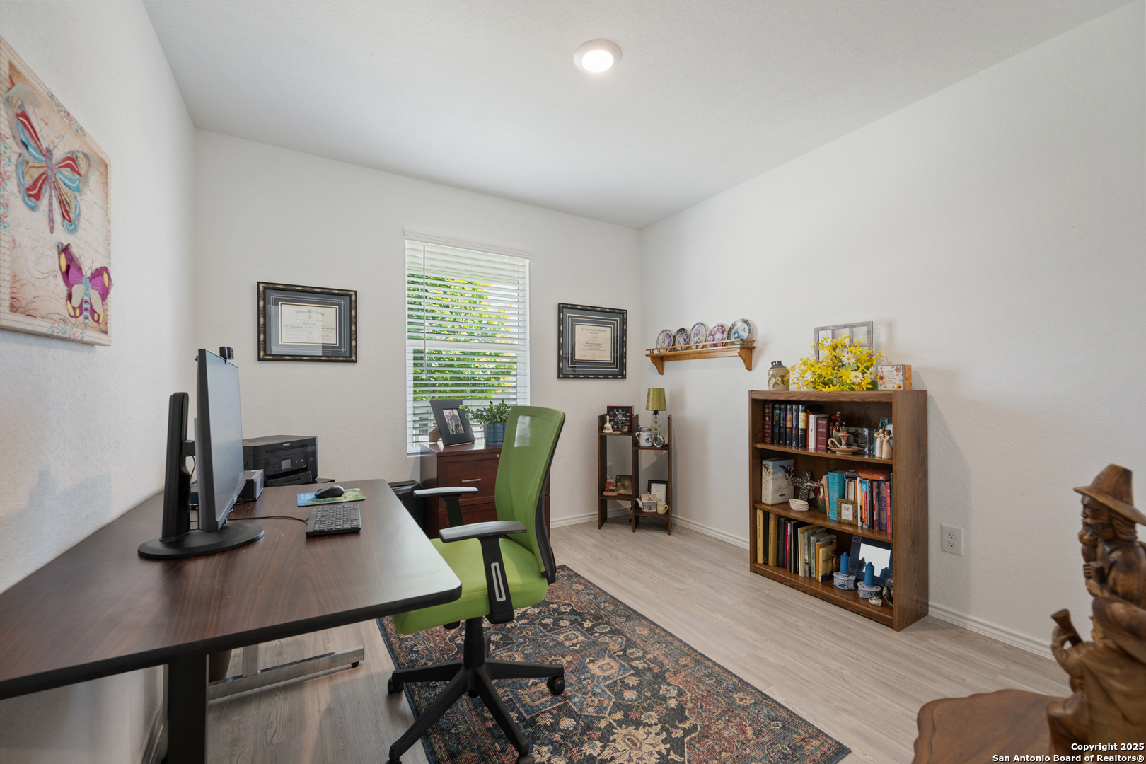 This single-story home has a smart layout and includes four bedrooms in total with the owner's suite strategically placed toward the back of the home for added privacy. The living area flows into the family room, dining area and modern kitchen in an open layout for maximized interior space and features access to the backyard. Lightly lived in, basically as good as new!