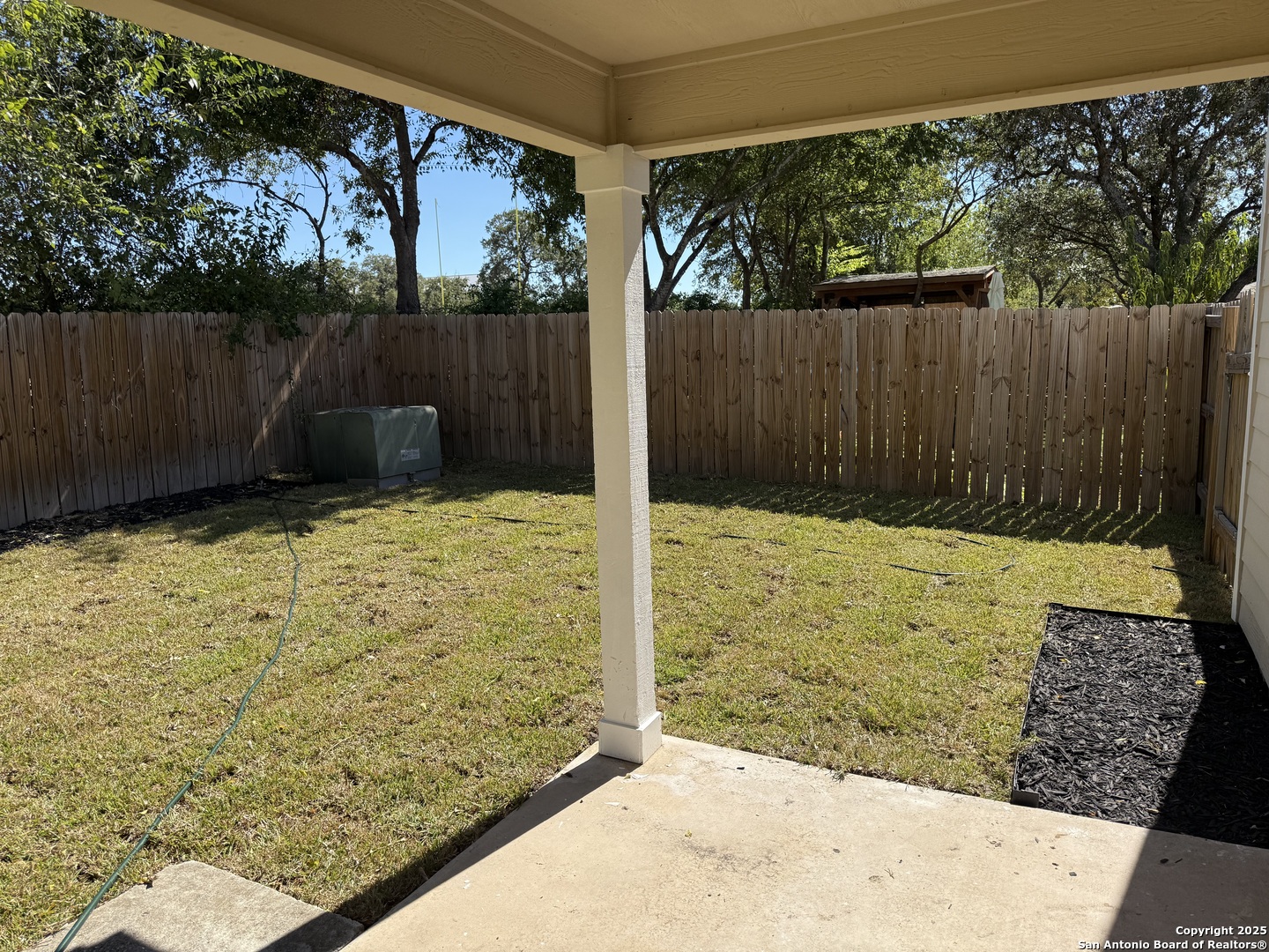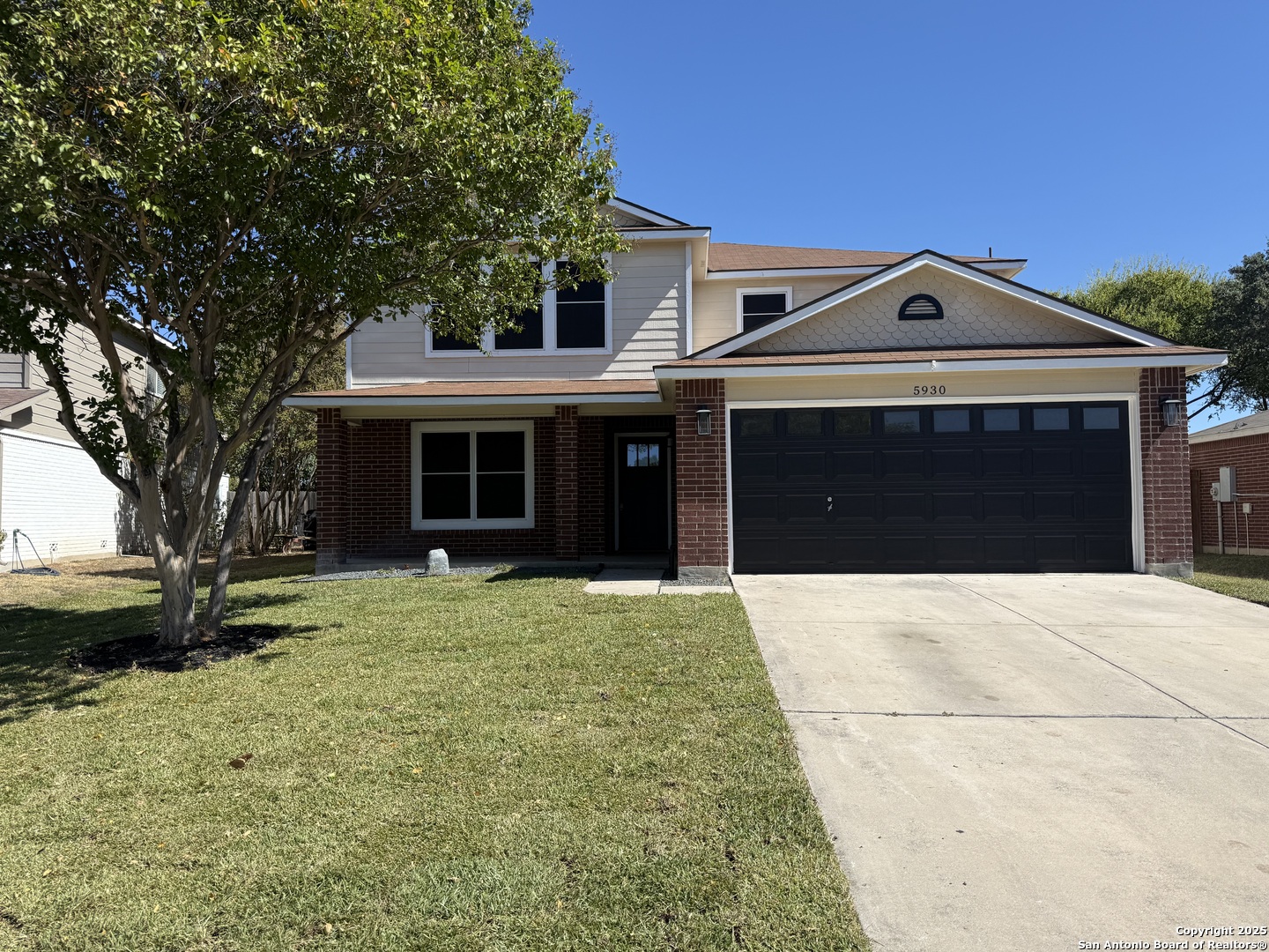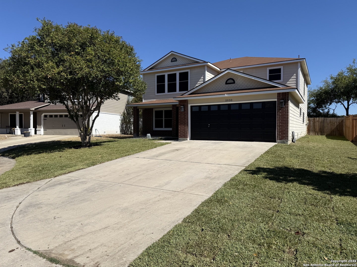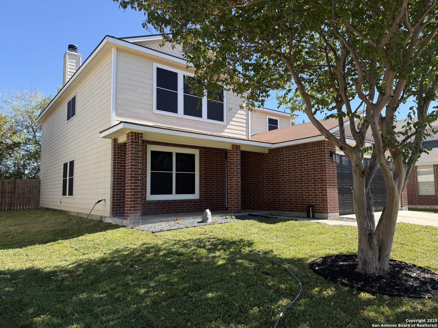 Stunning 5 bedroom 3 bathroom home in Gated community! Once you enter the front door, after walking under your spacious front porch, you are greeted by beautiful laminate flooring and open spaces. The kitchen comes equipped with granite countertops, backsplash and stainless steel appliances. The living room, with a fireplace in its center, is open to the kitchen area, and leads directly to the dining area, as well another living area. Additionally, you will find a bedroom with a full bathroom on the first floor! The huge primary bedroom is located on the second floor and comes with a breathtaking en-suite: Dual vanity with granite countertops, and walk-in glass shower with subway tile in herringbone pattern. Besides the primary there are 3 more bedrooms, which share a full bathroom matching the style of the primary bath. The private backyard with covered patio is perfect for BBQ's with family, friends & neighbors. Conveniently located between loop 410 and loop 1604 this home is in close proximity to schools, shopping, restaurants and all other attractions San Antonio has to offer. Schedule your private tour today!