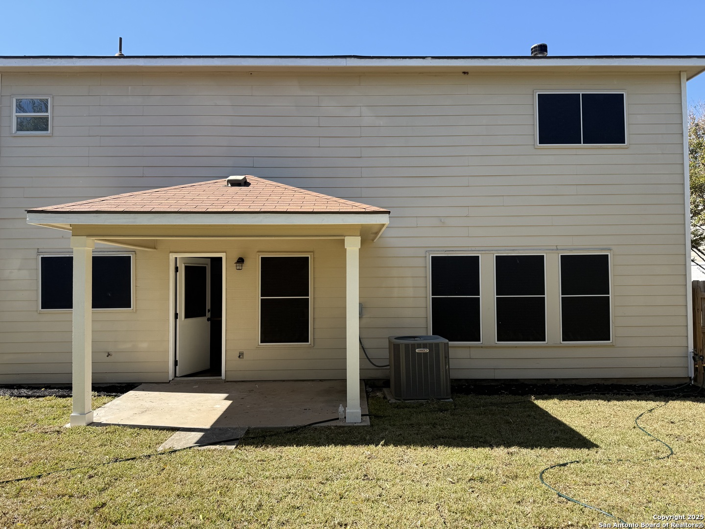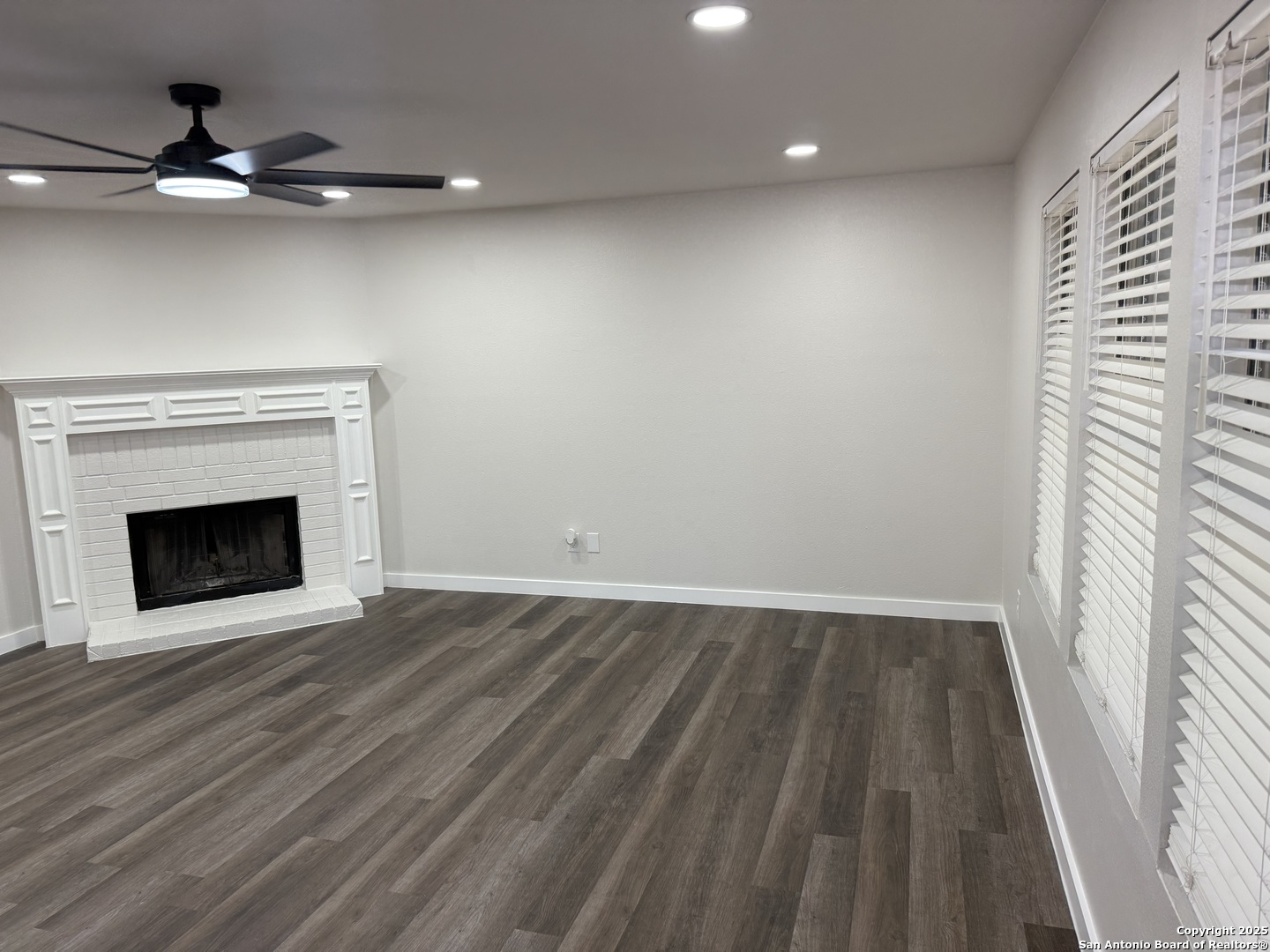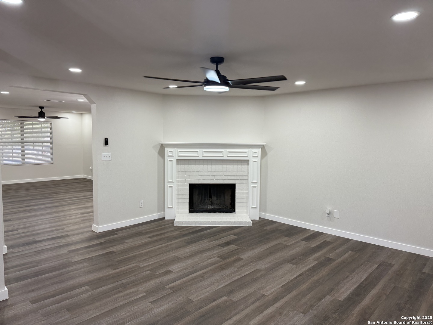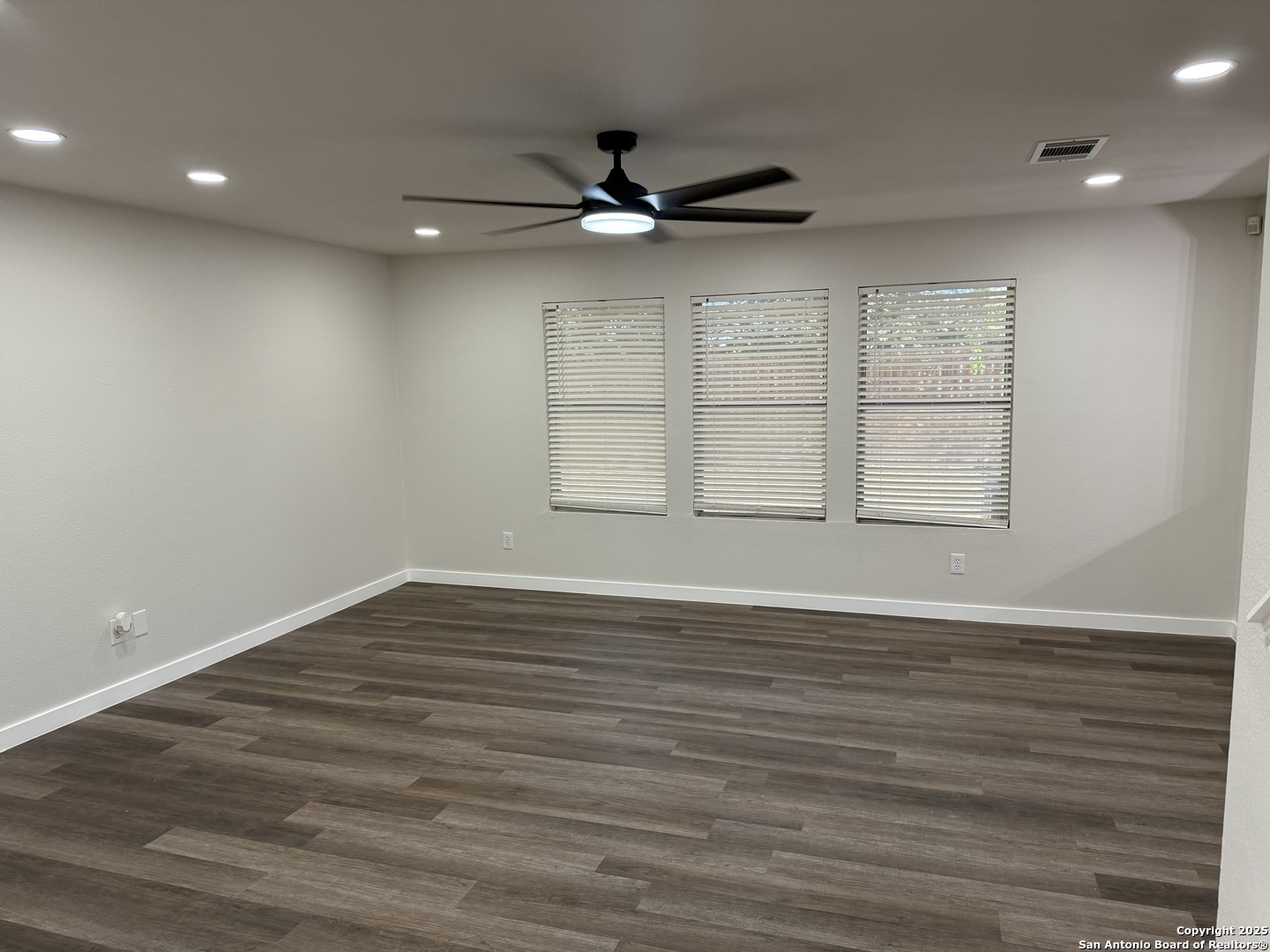 Stunning 5 bedroom 3 bathroom home in Gated community! Once you enter the front door, after walking under your spacious front porch, you are greeted by beautiful laminate flooring and open spaces. The kitchen comes equipped with granite countertops, backsplash and stainless steel appliances. The living room, with a fireplace in its center, is open to the kitchen area, and leads directly to the dining area, as well another living area. Additionally, you will find a bedroom with a full bathroom on the first floor! The huge primary bedroom is located on the second floor and comes with a breathtaking en-suite: Dual vanity with granite countertops, and walk-in glass shower with subway tile in herringbone pattern. Besides the primary there are 3 more bedrooms, which share a full bathroom matching the style of the primary bath. The private backyard with covered patio is perfect for BBQ's with family, friends & neighbors. Conveniently located between loop 410 and loop 1604 this home is in close proximity to schools, shopping, restaurants and all other attractions San Antonio has to offer. Schedule your private tour today!