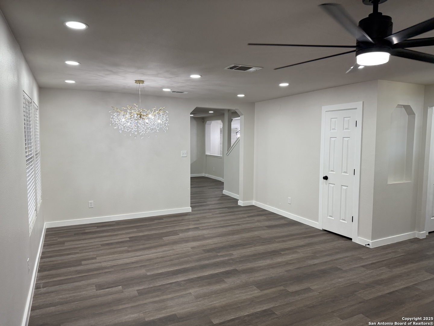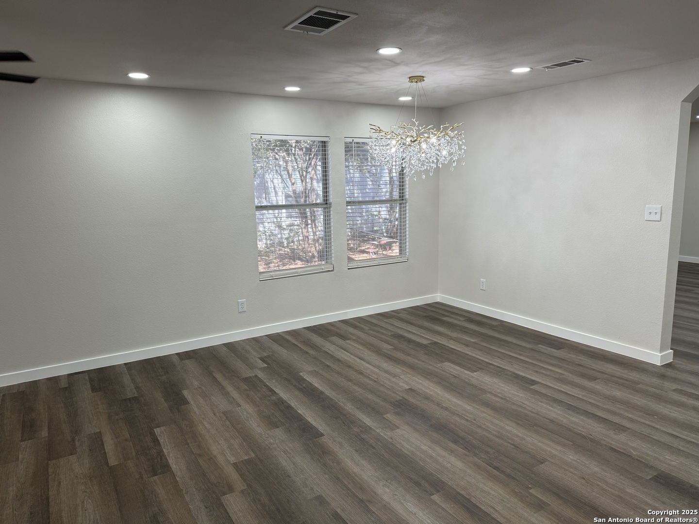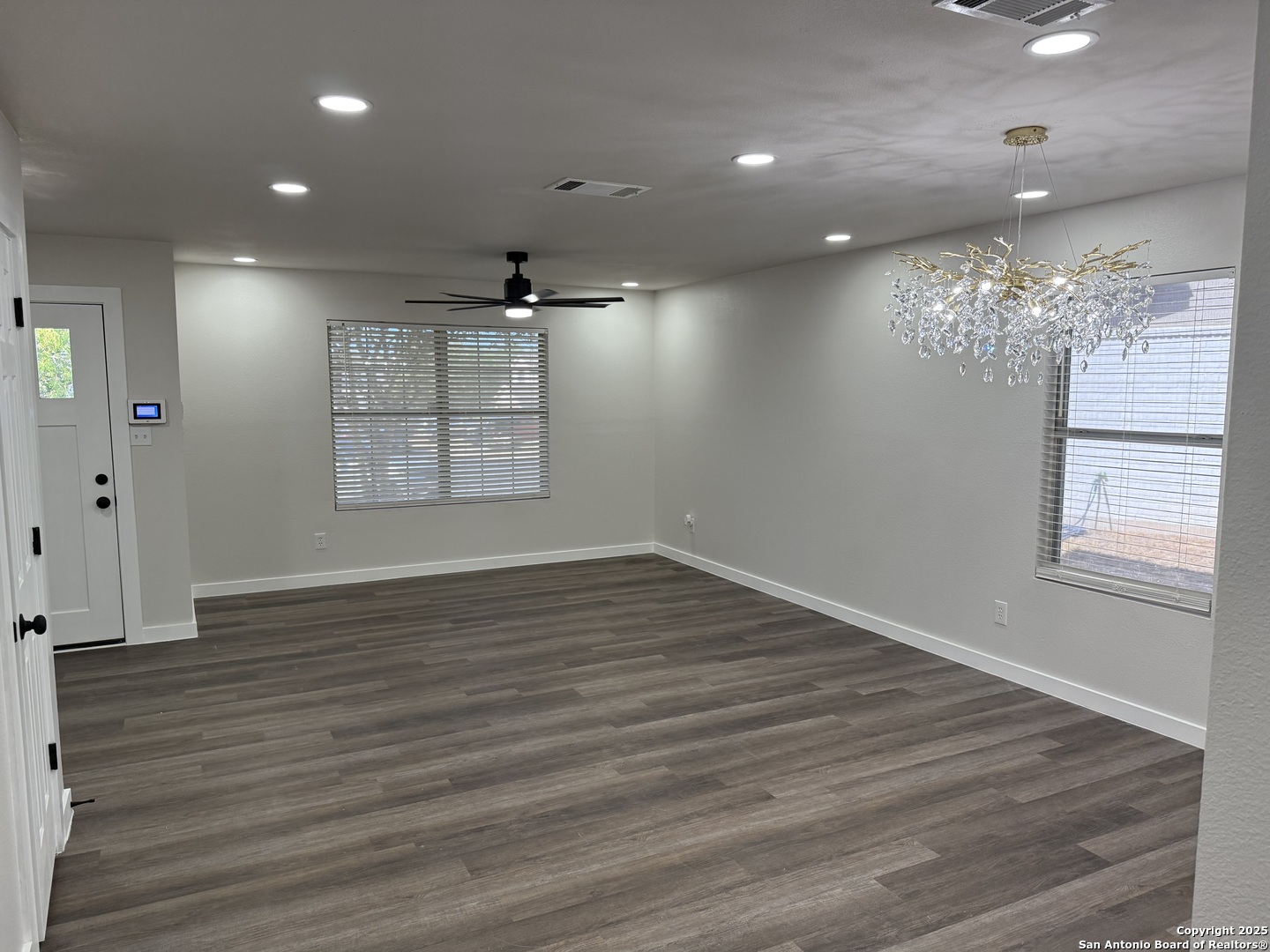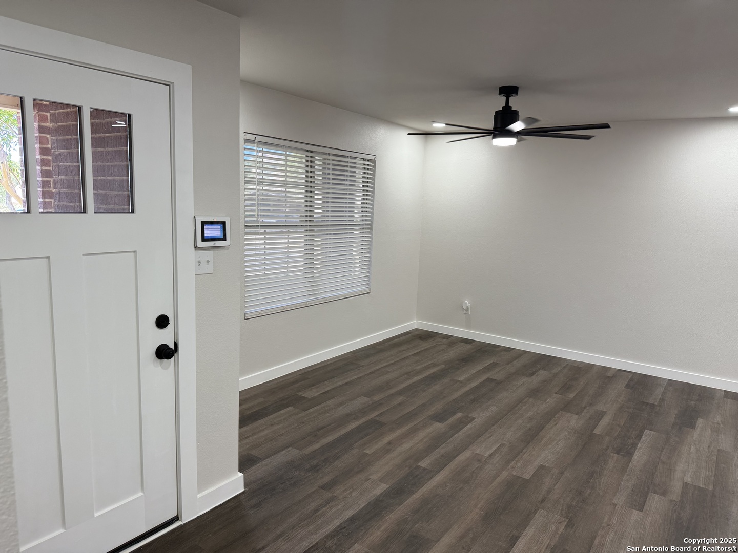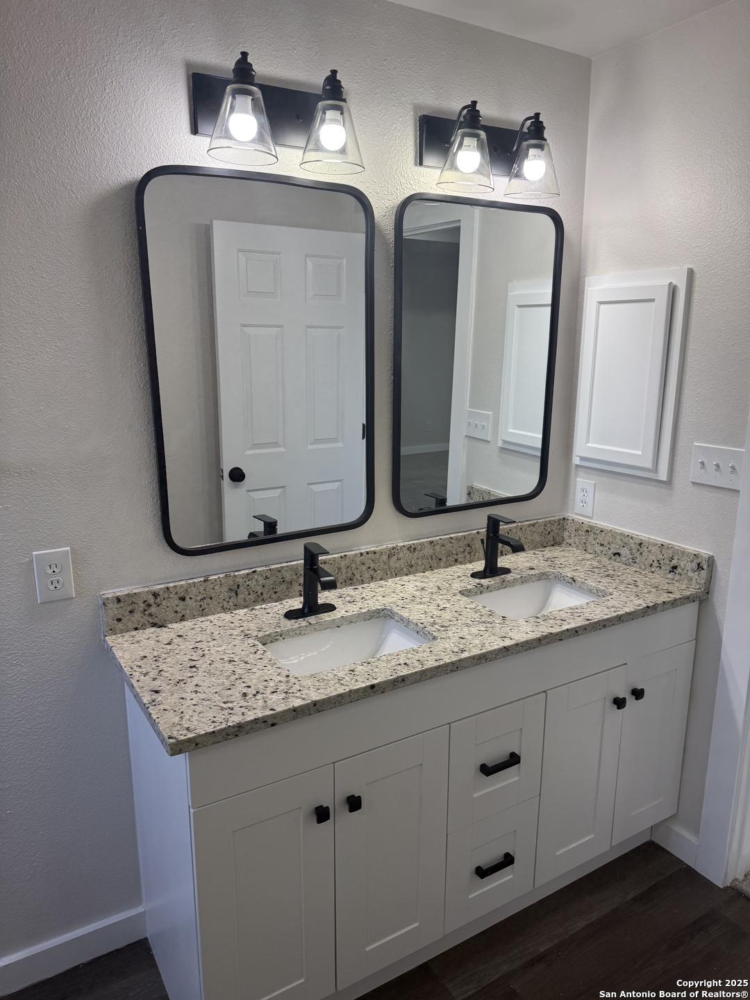 Stunning 5 bedroom 3 bathroom home in Gated community! Once you enter the front door, after walking under your spacious front porch, you are greeted by beautiful laminate flooring and open spaces. The kitchen comes equipped with granite countertops, backsplash and stainless steel appliances. The living room, with a fireplace in its center, is open to the kitchen area, and leads directly to the dining area, as well another living area. Additionally, you will find a bedroom with a full bathroom on the first floor! The huge primary bedroom is located on the second floor and comes with a breathtaking en-suite: Dual vanity with granite countertops, and walk-in glass shower with subway tile in herringbone pattern. Besides the primary there are 3 more bedrooms, which share a full bathroom matching the style of the primary bath. The private backyard with covered patio is perfect for BBQ's with family, friends & neighbors. Conveniently located between loop 410 and loop 1604 this home is in close proximity to schools, shopping, restaurants and all other attractions San Antonio has to offer. Schedule your private tour today!