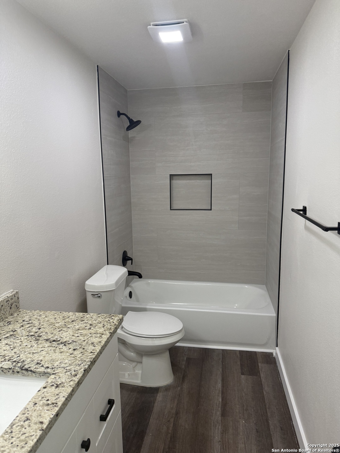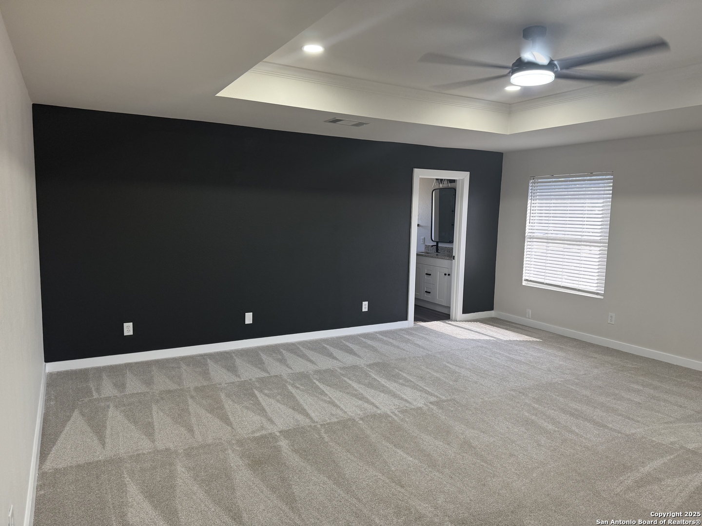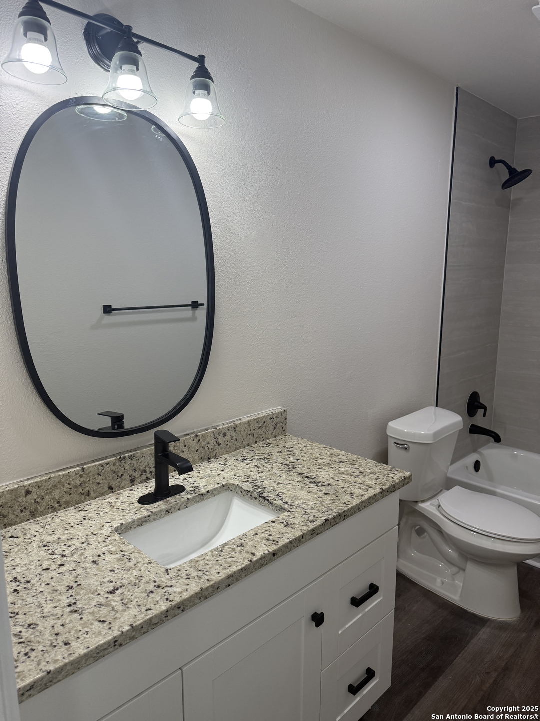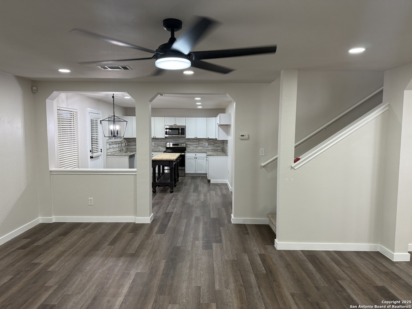 Stunning 5 bedroom 3 bathroom home in Gated community! Once you enter the front door, after walking under your spacious front porch, you are greeted by beautiful laminate flooring and open spaces. The kitchen comes equipped with granite countertops, backsplash and stainless steel appliances. The living room, with a fireplace in its center, is open to the kitchen area, and leads directly to the dining area, as well another living area. Additionally, you will find a bedroom with a full bathroom on the first floor! The huge primary bedroom is located on the second floor and comes with a breathtaking en-suite: Dual vanity with granite countertops, and walk-in glass shower with subway tile in herringbone pattern. Besides the primary there are 3 more bedrooms, which share a full bathroom matching the style of the primary bath. The private backyard with covered patio is perfect for BBQ's with family, friends & neighbors. Conveniently located between loop 410 and loop 1604 this home is in close proximity to schools, shopping, restaurants and all other attractions San Antonio has to offer. Schedule your private tour today!