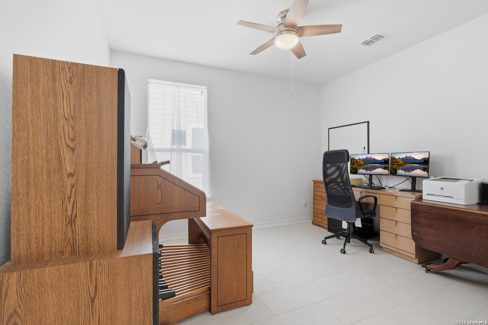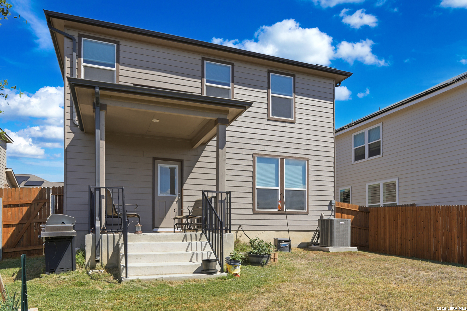 Welcome to this well-maintained, 3-year-old two-story home backing to neighborhood-owned open space, offering added privacy and a peaceful setting right behind your backyard. Enjoy the quiet, natural backdrop with no direct rear neighbors, creating a sense of space that's hard to find. As you step inside, you're greeted by an open and inviting main living area filled with natural light, seamlessly connecting the living, dining, and kitchen spaces. The kitchen features granite countertops, ample cabinetry, stainless steel appliances, and a functional island with bar seating, perfect for casual meals or entertaining. Downstairs also includes a flexible room ideal for a home office, study, or creative space. Upstairs, generously sized bedrooms provide comfort and privacy, including a large primary suite with an ensuite bath featuring dual vanities and a combined tub and shower. Secondary bedrooms offer plenty of space for guests or family, along with additional storage throughout. Step outside to enjoy a spacious backyard with room to relax, garden, or entertain, plus a covered patio for shaded outdoor living, all while taking in the added privacy of the open space behind. Conveniently located near major highways, shopping, dining, and everyday essentials, this home offers the perfect balance of space, functionality, and accessibility.