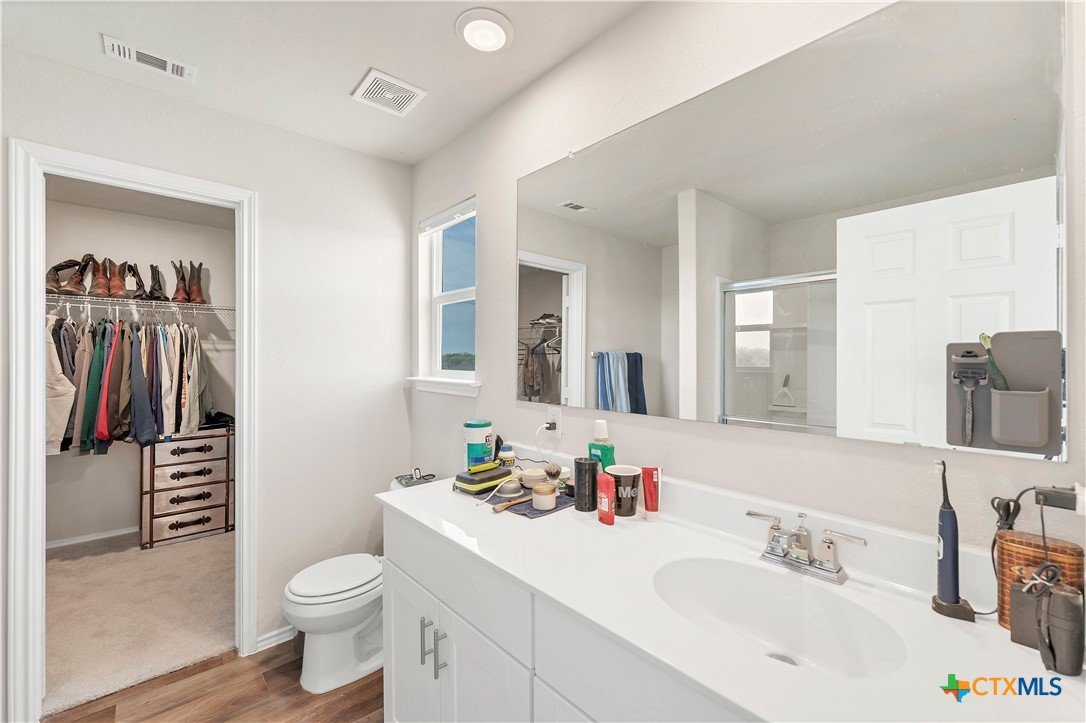Reduced to sell! GREENBELT view and a private backyard complete with a covered patio perfect for entertaining and relaxation. Step into this spacious two-story home featuring three bedrooms and two and a half baths, all just two years old. This layout features an open floor plan that connects to a spacious living and dining area. A welcoming kitchen that offers plenty of cabinet space and room for all your cooking adventures. All bedrooms are conveniently located upstairs. The bedrooms are in excellent condition and provide ample space, giving you a comfortable living experience. Create a perfect space for entertaining or relaxing in the upstairs loft. The Modern design and ample living space make it the perfect blend of comfort and style for your family. Enjoy the remaining years of a builder's 10-year warranty. Kitchen refrigerator, washer and dryer, Security system convey. Motivated seller is ready for you to schedule your viewing.