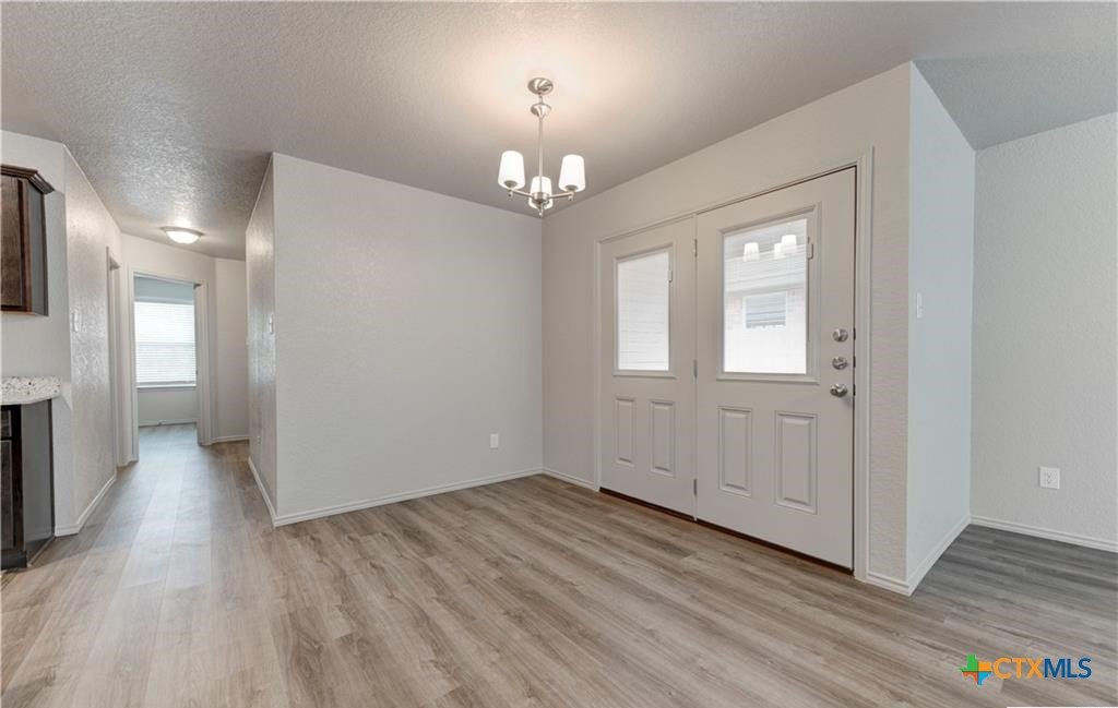 This stunning new 3-bedroom, 2-bath duplex with a 1-car garage. Located at the Valleys at Great Hills subdivision with quick access to Fort Hood, shopping, and restaurants. Comes with bright high ceilings, luxury vinyl plank, and recessed lighting. The kitchen is nice and comes with granite countertops, brown cabinetry, and all-black appliances. Minor bedrooms are spacious with ceiling fans and closets. Guests have access to a hall bathroom that contains a tub with a tile surround and a granite vanity with an undermount sink. Laundry will be a breeze in the oversized interior utility closet. The master suite is located at the rear of the unit and boasts of ceiling fan lighting, a walk-in closet, and an en suite with its own bathroom. Watch Cove's natural landscape and the Texas sunsets from your secluded privacy-fenced backyard. The home is pre-wired with fiber optics and high-speed Internet to be subscribed to and activated by the tenant upon move-in