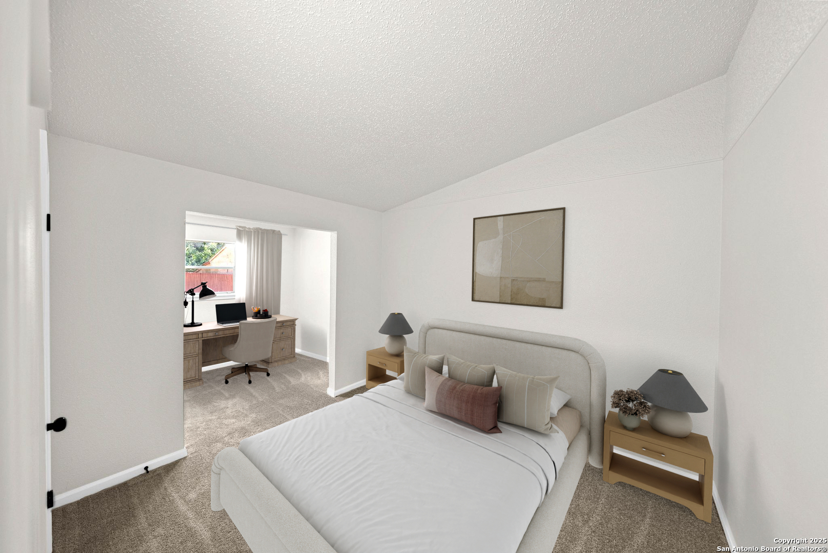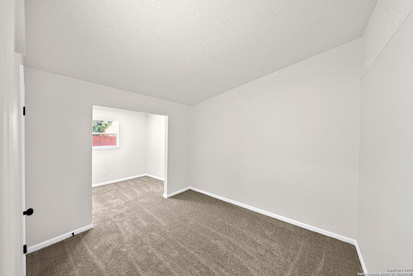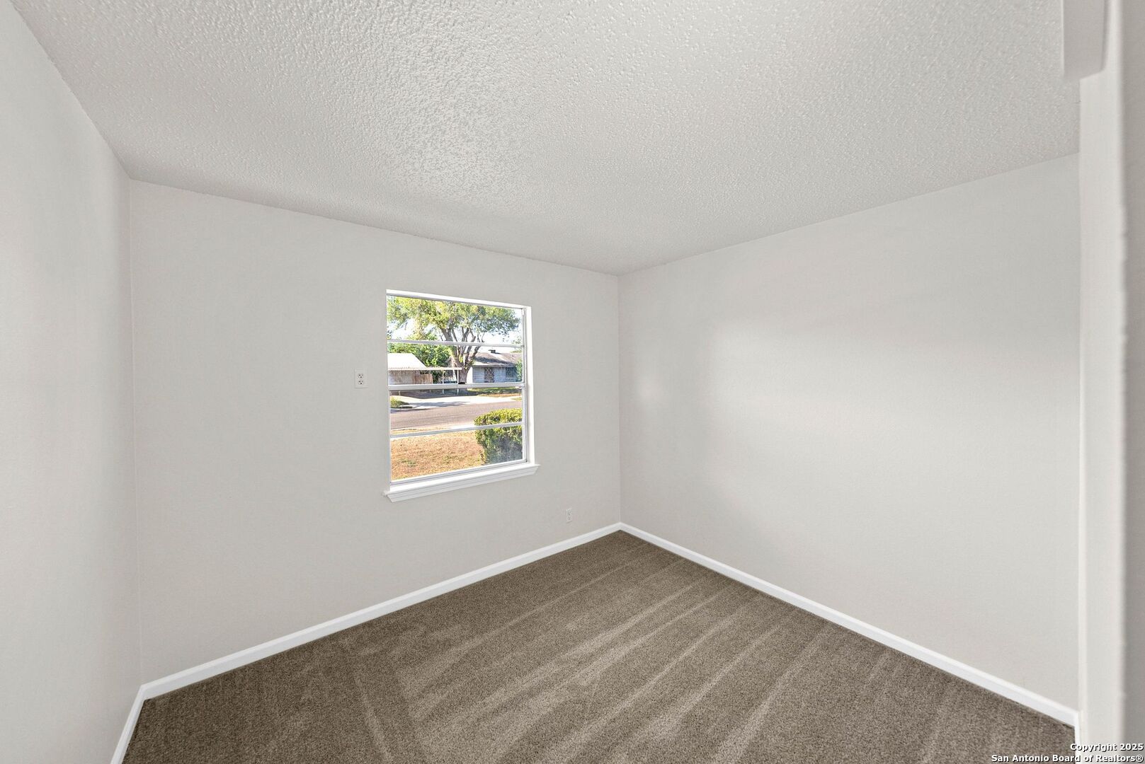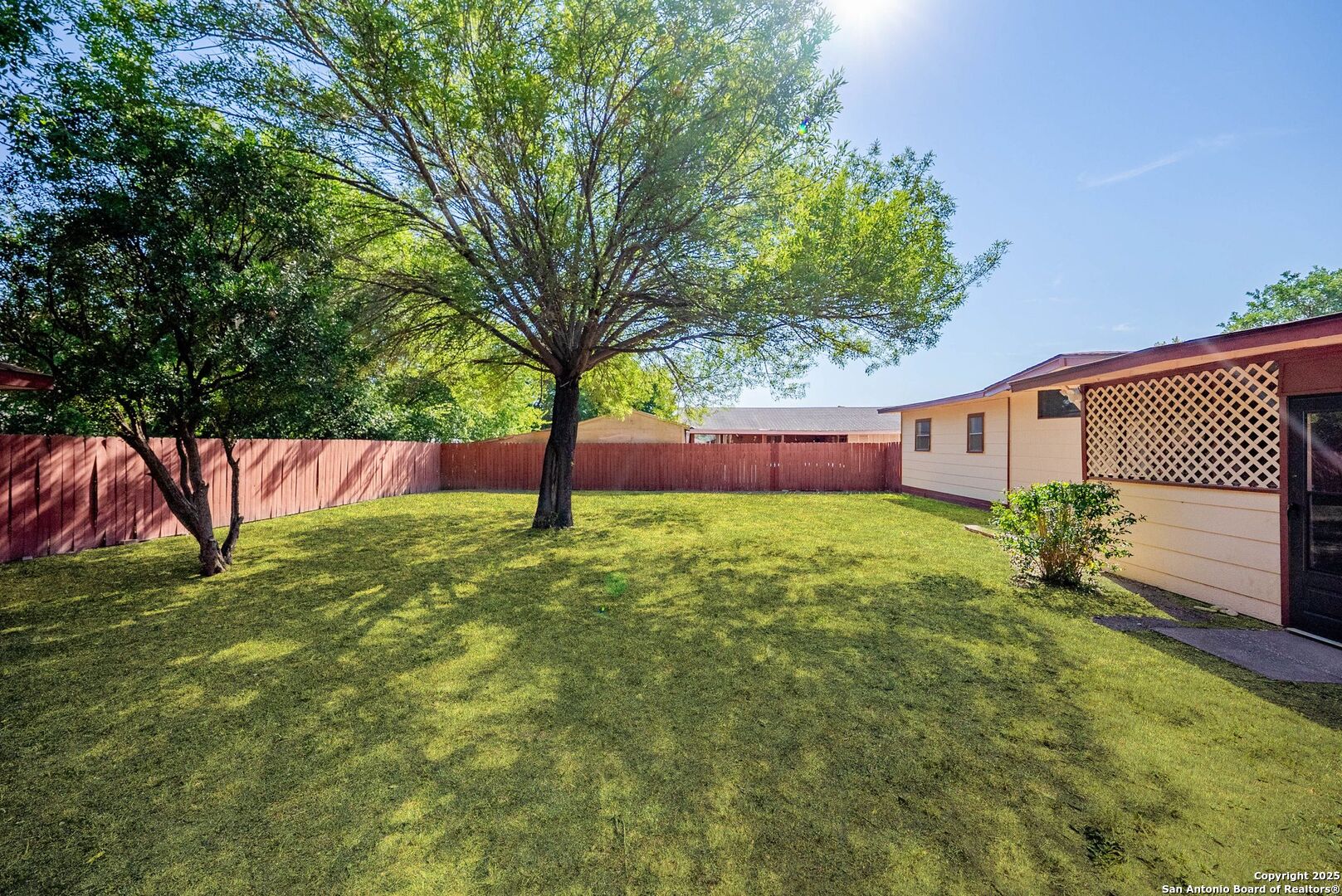 Beneath the shade of majestic oaks, this single-story sanctuary has been reborn with modern elegance. Spanning 1,404 square feet on a generous .21-acre lot, every corner of this 3-bedroom, 2-bath retreat has been thoughtfully reimagined. Step inside to find soaring vaulted ceilings, walls of natural light, and the seamless flow of new luxury vinyl wood-look flooring. The kitchen dazzles with quartz countertops, freshly painted cabinetry, a deep stainless steel sink, and a brand-new stainless gas range ready for your culinary adventures. Each bathroom features walk-in showers clad in decorative modern tile, sleek vanities, and refined plumbing fixtures. Fresh paint, plush new carpet, chic light fixtures, and new ceiling fans complete the interior's transformation. Outdoors you will find an expansive yard that unfolds beneath the canopy of mature oaks, perfect for gatherings, play, or quiet reflection. A storage shed offers convenience, while the sheer size of the lot invites endless possibility. Nearby Lackland Air Force Base and easy access to Loop 410 for a quick commute to work.