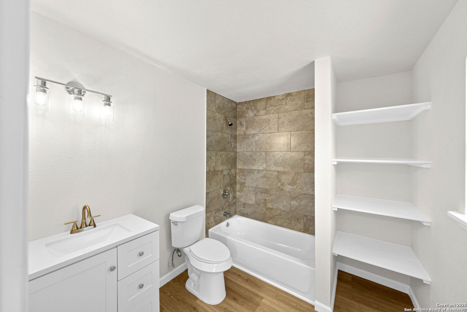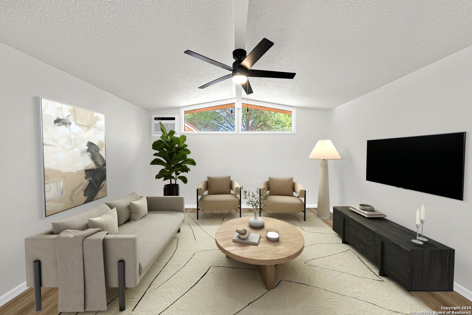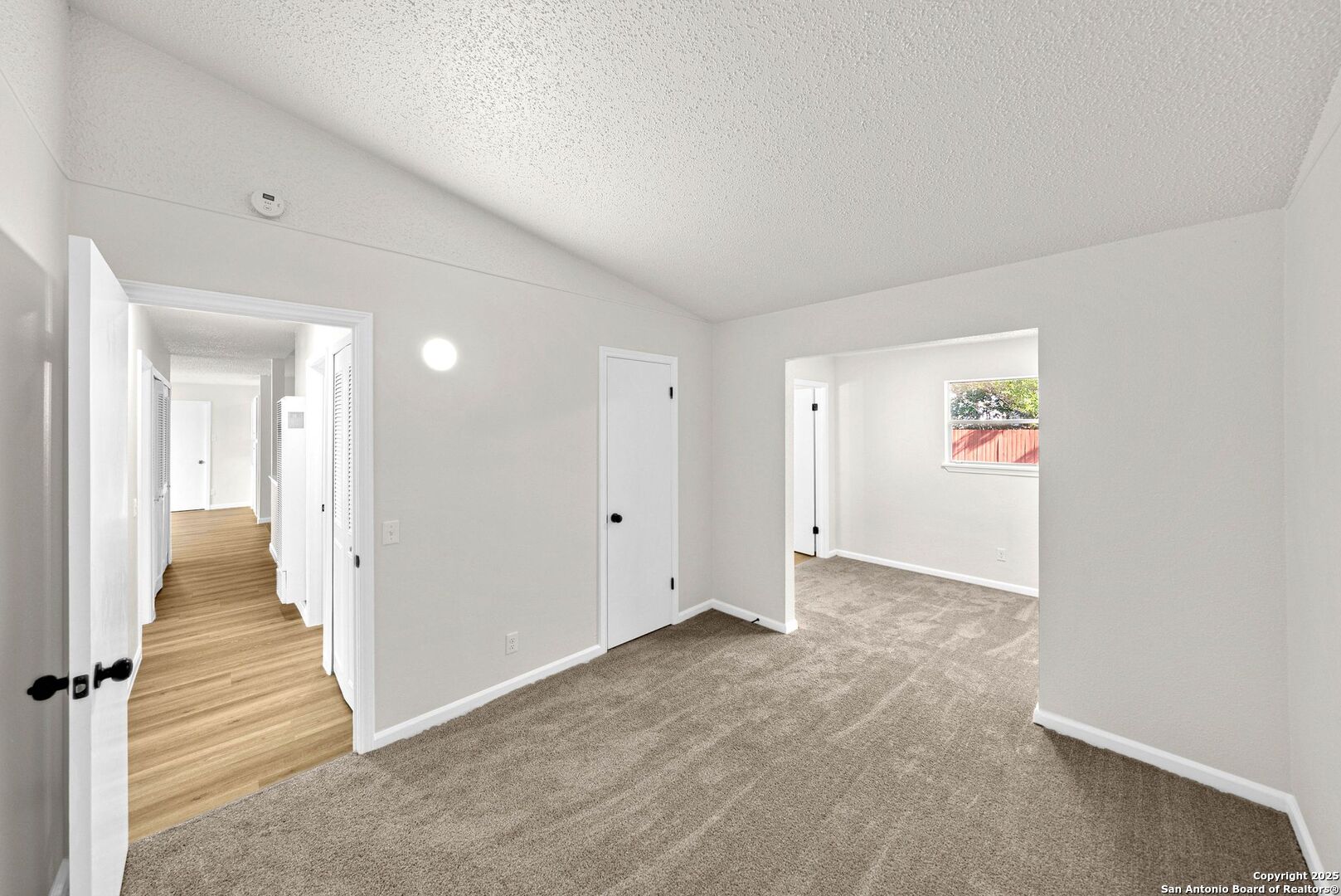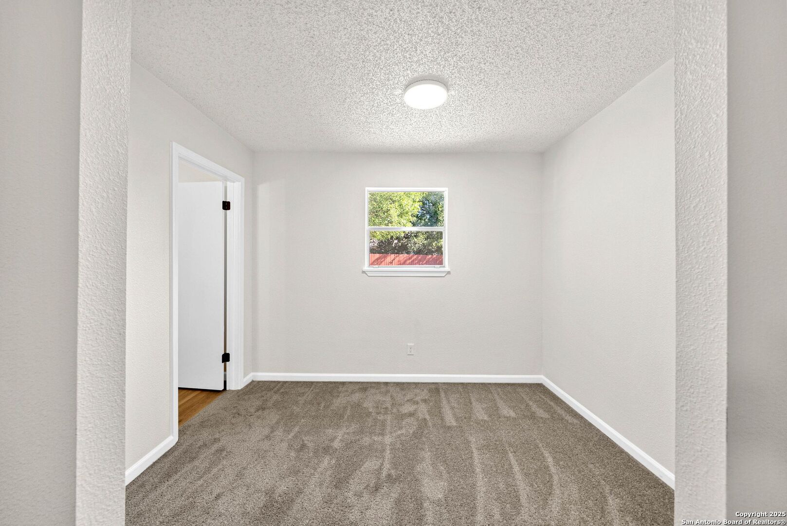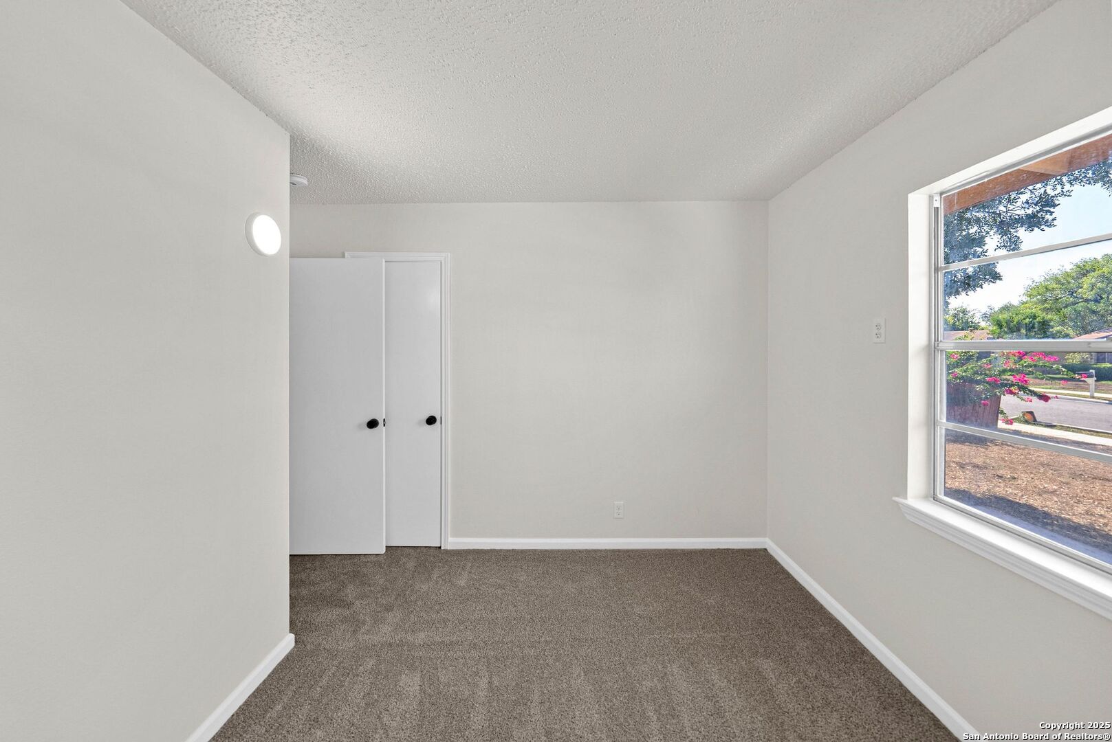 Beneath the shade of majestic oaks, this single-story sanctuary has been reborn with modern elegance. Spanning 1,404 square feet on a generous .21-acre lot, every corner of this 3-bedroom, 2-bath retreat has been thoughtfully reimagined. Step inside to find soaring vaulted ceilings, walls of natural light, and the seamless flow of new luxury vinyl wood-look flooring. The kitchen dazzles with quartz countertops, freshly painted cabinetry, a deep stainless steel sink, and a brand-new stainless gas range ready for your culinary adventures. Each bathroom features walk-in showers clad in decorative modern tile, sleek vanities, and refined plumbing fixtures. Fresh paint, plush new carpet, chic light fixtures, and new ceiling fans complete the interior's transformation. Outdoors you will find an expansive yard that unfolds beneath the canopy of mature oaks, perfect for gatherings, play, or quiet reflection. A storage shed offers convenience, while the sheer size of the lot invites endless possibility. Nearby Lackland Air Force Base and easy access to Loop 410 for a quick commute to work.