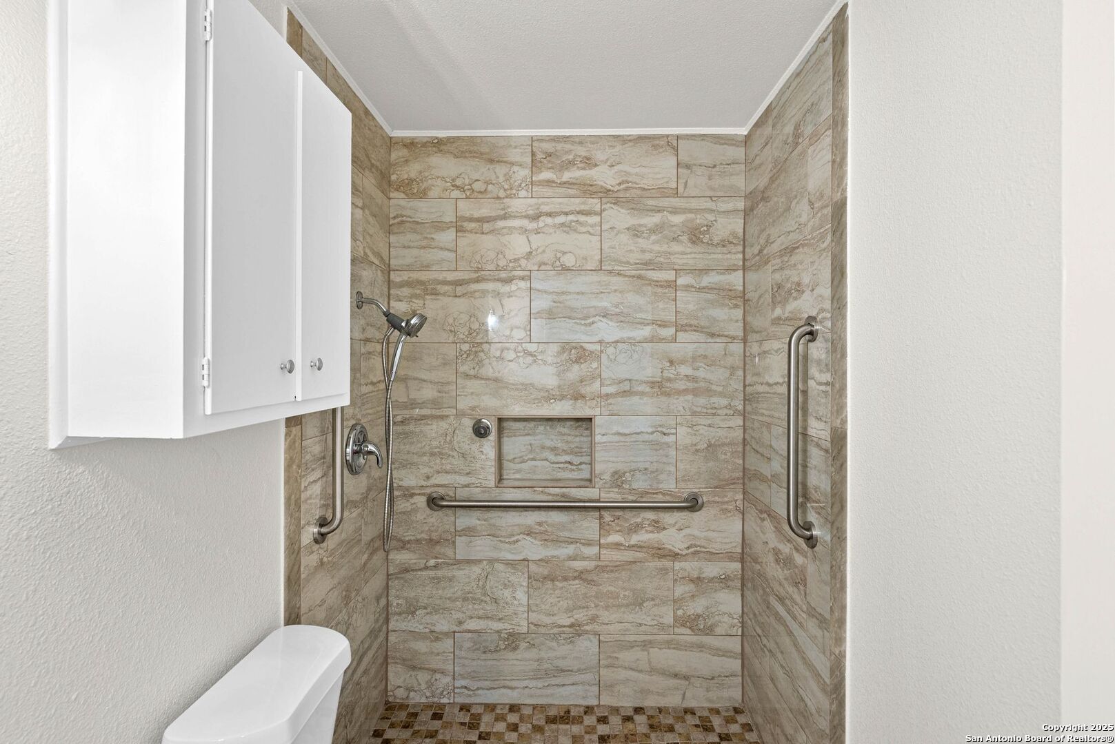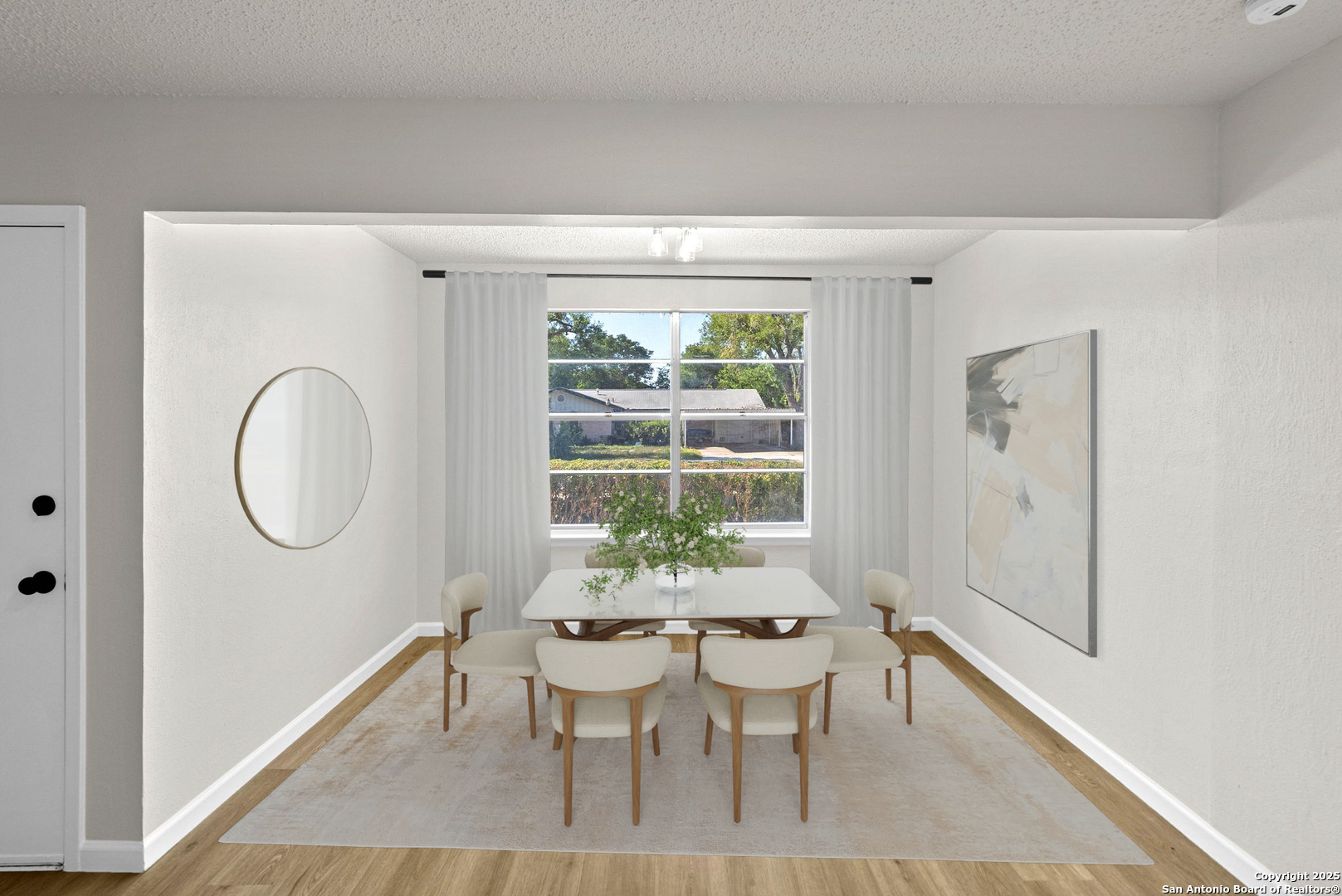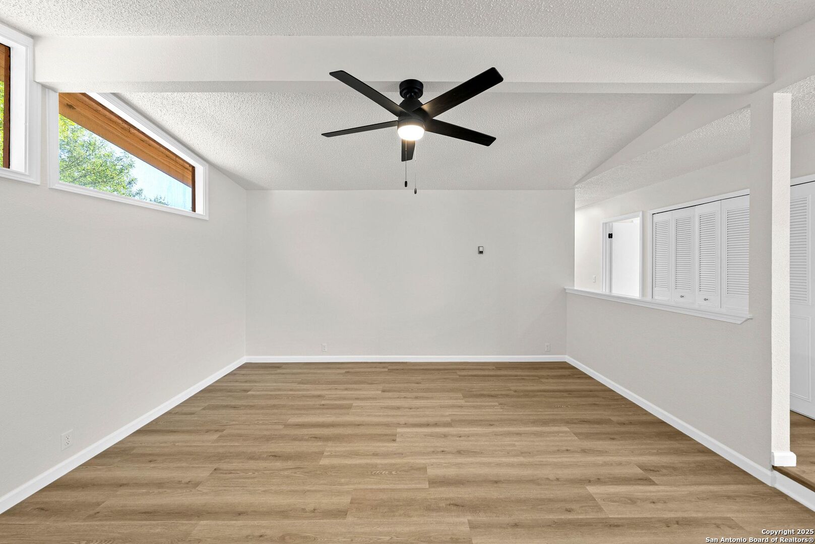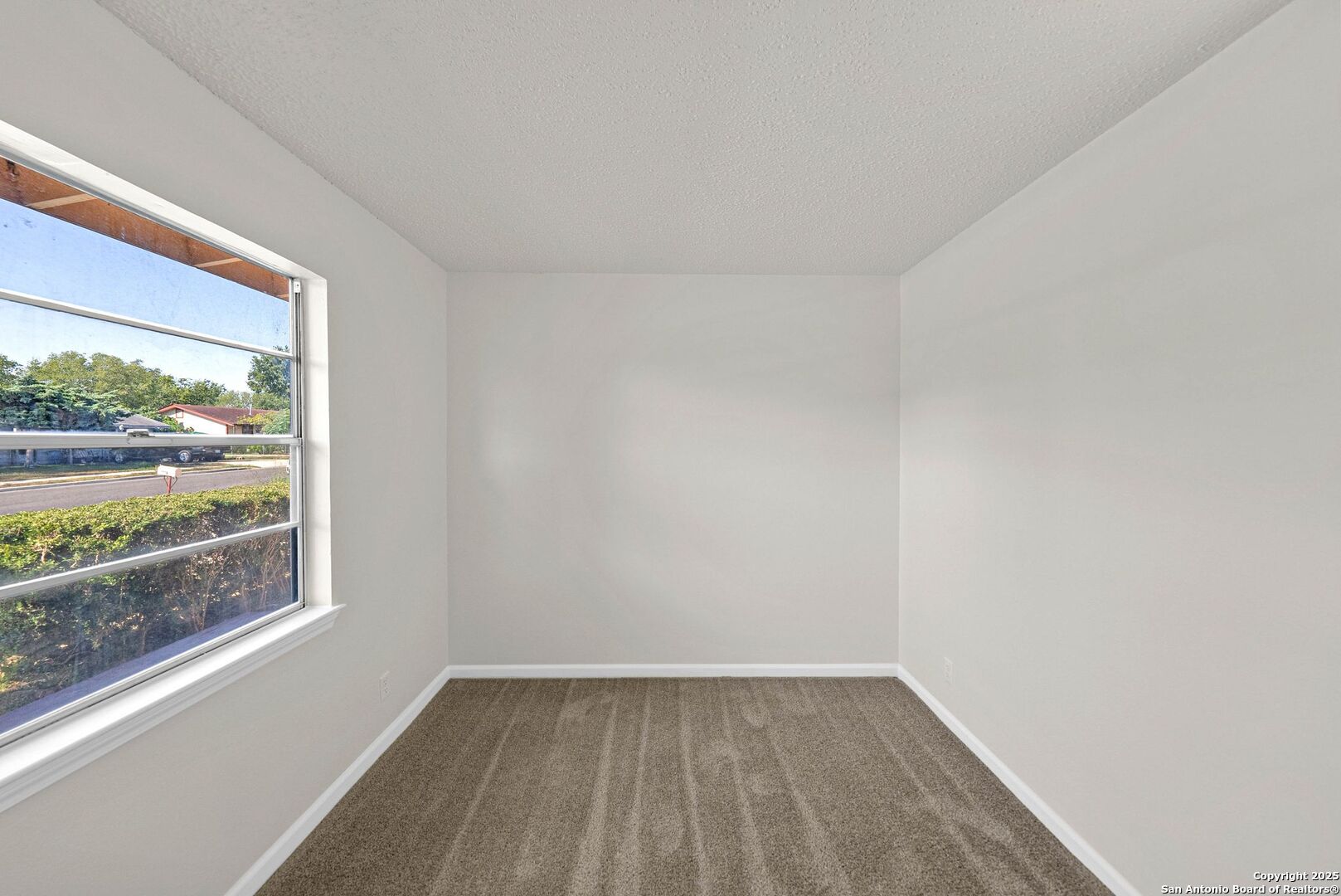 Beneath the shade of majestic oaks, this single-story sanctuary has been reborn with modern elegance. Spanning 1,404 square feet on a generous .21-acre lot, every corner of this 3-bedroom, 2-bath retreat has been thoughtfully reimagined. Step inside to find soaring vaulted ceilings, walls of natural light, and the seamless flow of new luxury vinyl wood-look flooring. The kitchen dazzles with quartz countertops, freshly painted cabinetry, a deep stainless steel sink, and a brand-new stainless gas range ready for your culinary adventures. Each bathroom features walk-in showers clad in decorative modern tile, sleek vanities, and refined plumbing fixtures. Fresh paint, plush new carpet, chic light fixtures, and new ceiling fans complete the interior's transformation. Outdoors you will find an expansive yard that unfolds beneath the canopy of mature oaks, perfect for gatherings, play, or quiet reflection. A storage shed offers convenience, while the sheer size of the lot invites endless possibility. Nearby Lackland Air Force Base and easy access to Loop 410 for a quick commute to work.