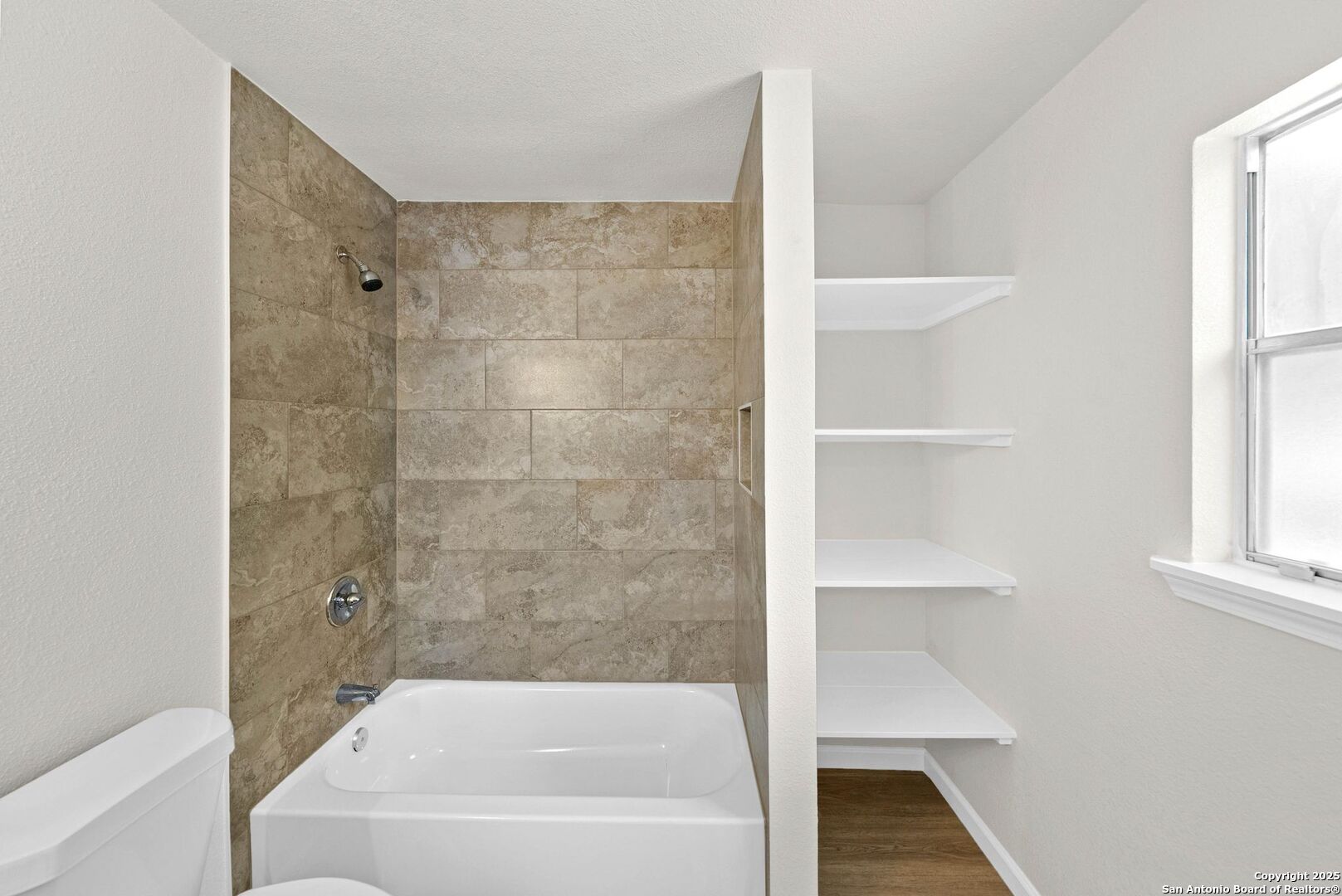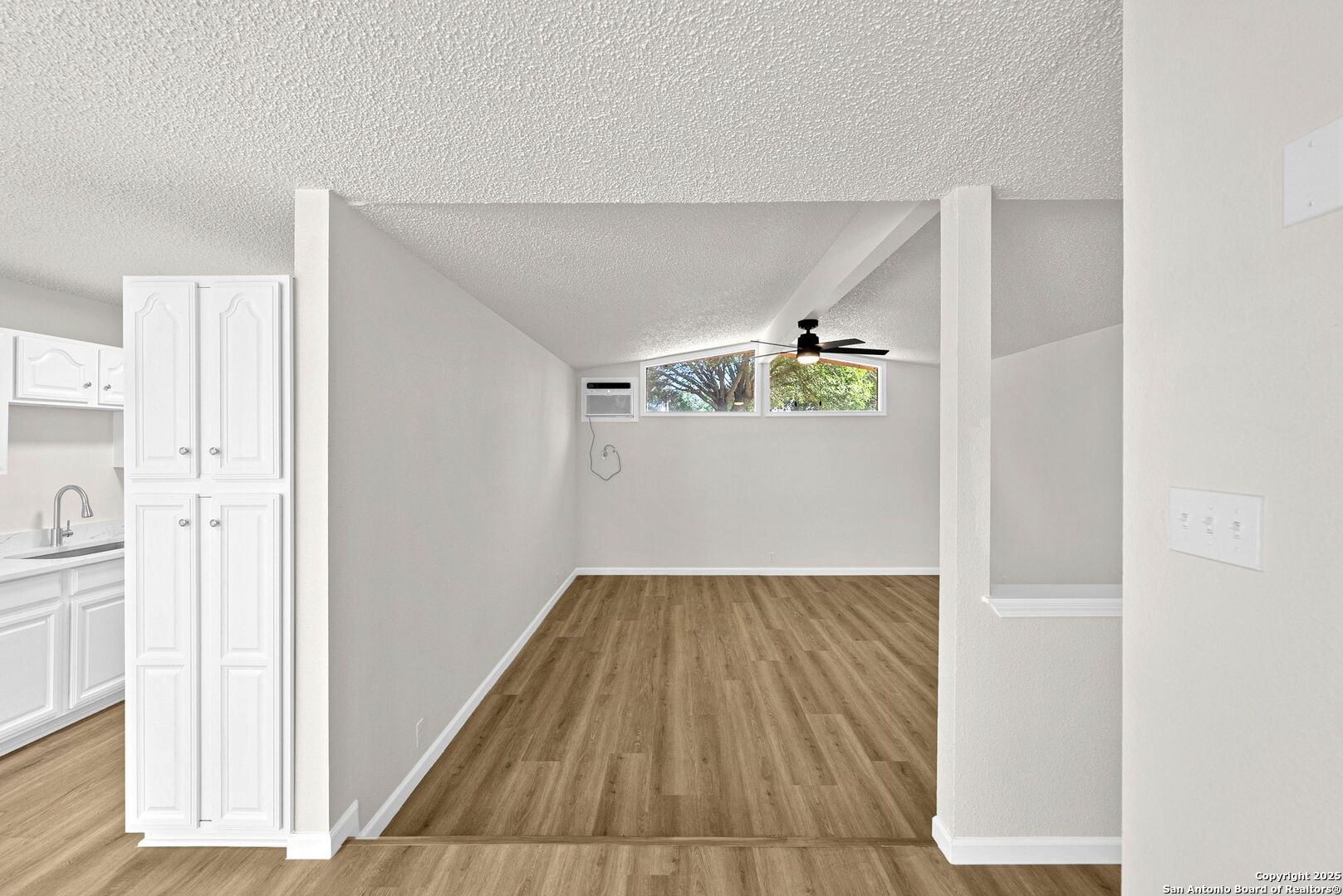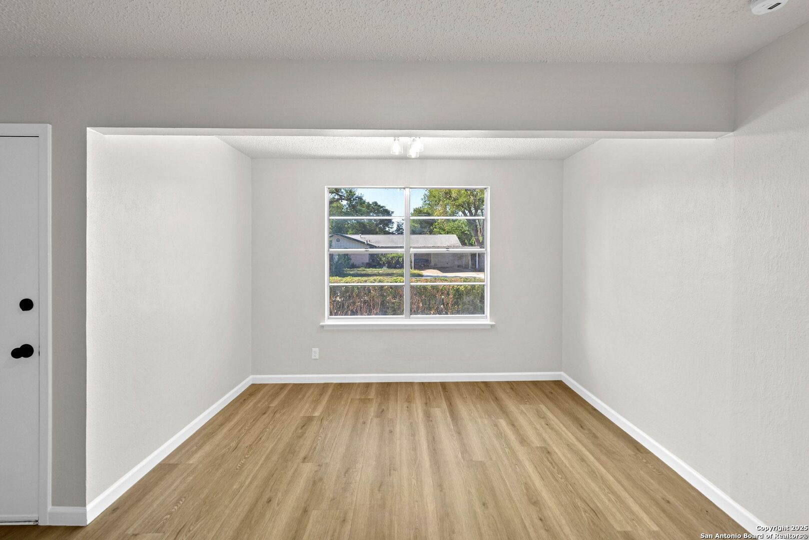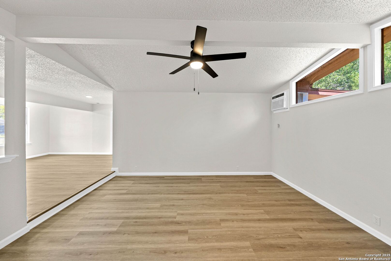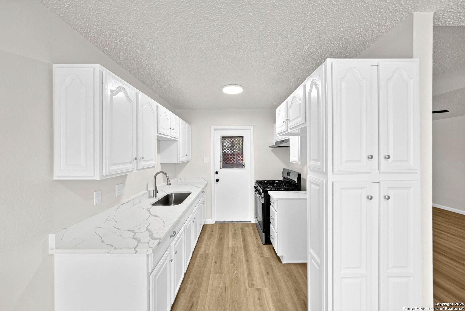Beneath the shade of majestic oaks, this single-story sanctuary has been reborn with modern elegance. Spanning 1,404 square feet on a generous .21-acre lot, every corner of this 3-bedroom, 2-bath retreat has been thoughtfully reimagined. Step inside to find soaring vaulted ceilings, walls of natural light, and the seamless flow of new luxury vinyl wood-look flooring. The kitchen dazzles with quartz countertops, freshly painted cabinetry, a deep stainless steel sink, and a brand-new stainless gas range ready for your culinary adventures. Each bathroom features walk-in showers clad in decorative modern tile, sleek vanities, and refined plumbing fixtures. Fresh paint, plush new carpet, chic light fixtures, and new ceiling fans complete the interior's transformation. Outdoors you will find an expansive yard that unfolds beneath the canopy of mature oaks, perfect for gatherings, play, or quiet reflection. A storage shed offers convenience, while the sheer size of the lot invites endless possibility. Nearby Lackland Air Force Base and easy access to Loop 410 for a quick commute to work.