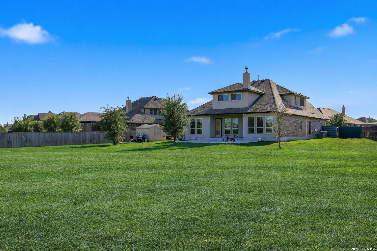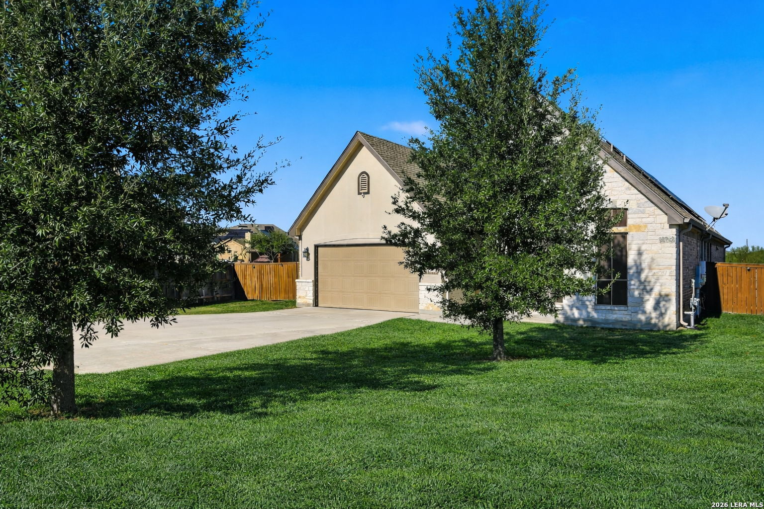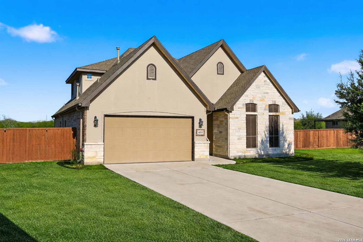 Welcome to this stunning 1.5-story home in San Antonio-a rare find offering 5 bedrooms, 4 full bathrooms, a large game room, and over 3/4 acre of space to enjoy. Conveniently located near Randolph Air Force Base, this home is an excellent option for buyers searching for San Antonio military homes, planning a PCS to San Antonio, or exploring VA loans in San Antonio. Step inside to an inviting entry with soaring ceilings and a formal dining room accented by elegant tray ceilings and abundant natural light. The open-concept main living area features beautiful wood flooring, a cozy corner fireplace, and effortless flow into the kitchen-perfect for everyday living and entertaining. The kitchen is designed for both style and function with granite countertops, a wide breakfast bar, recessed lighting, and an eat-in dining area overlooking the backyard. The spacious primary suite feels like a private retreat with tray ceilings, dual vanities, a soaking garden tub, separate shower, and a huge walk-in closet. Outside, enjoy an oversized patio, a sprawling private yard, and custom JellyFish lighting that adds year-round ambiance and standout curb appeal. Super clean and loaded with upgrades, this property truly checks every box-space, comfort, and an unbeatable location near Randolph AFB, shopping, and dining. Schedule your showing today and ask about the assumable VA loan opportunity.