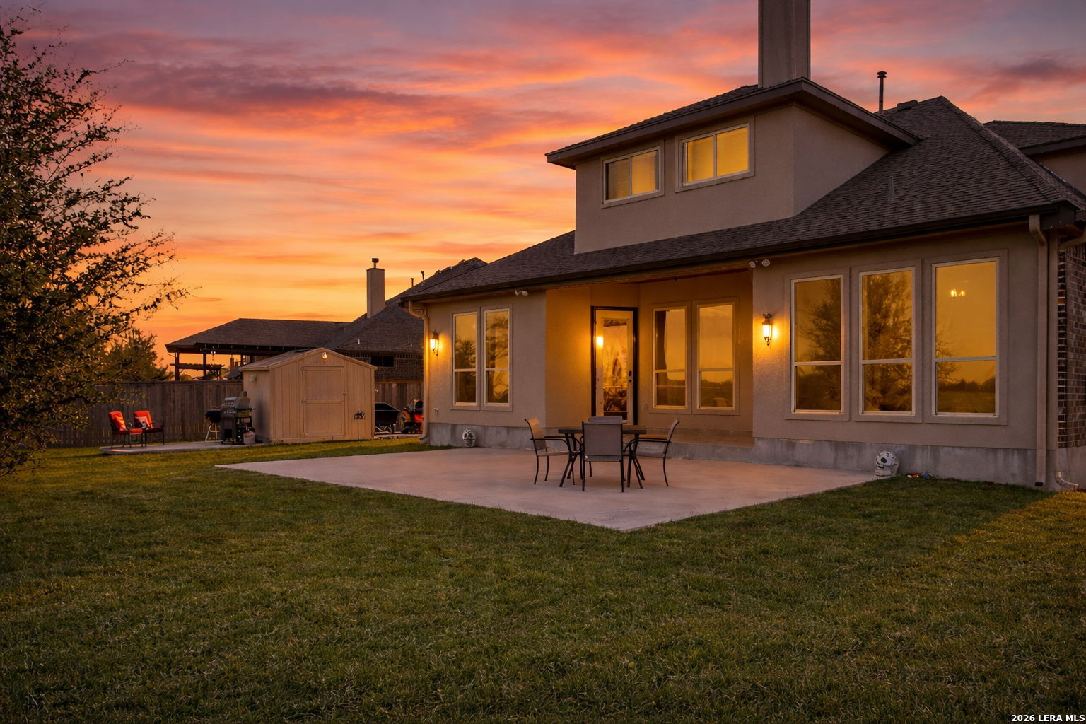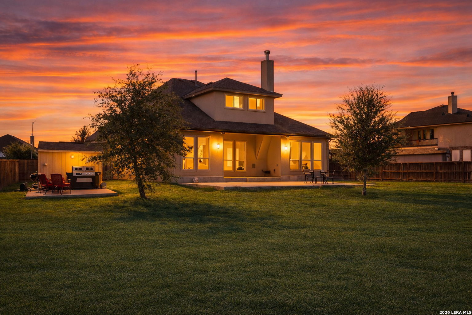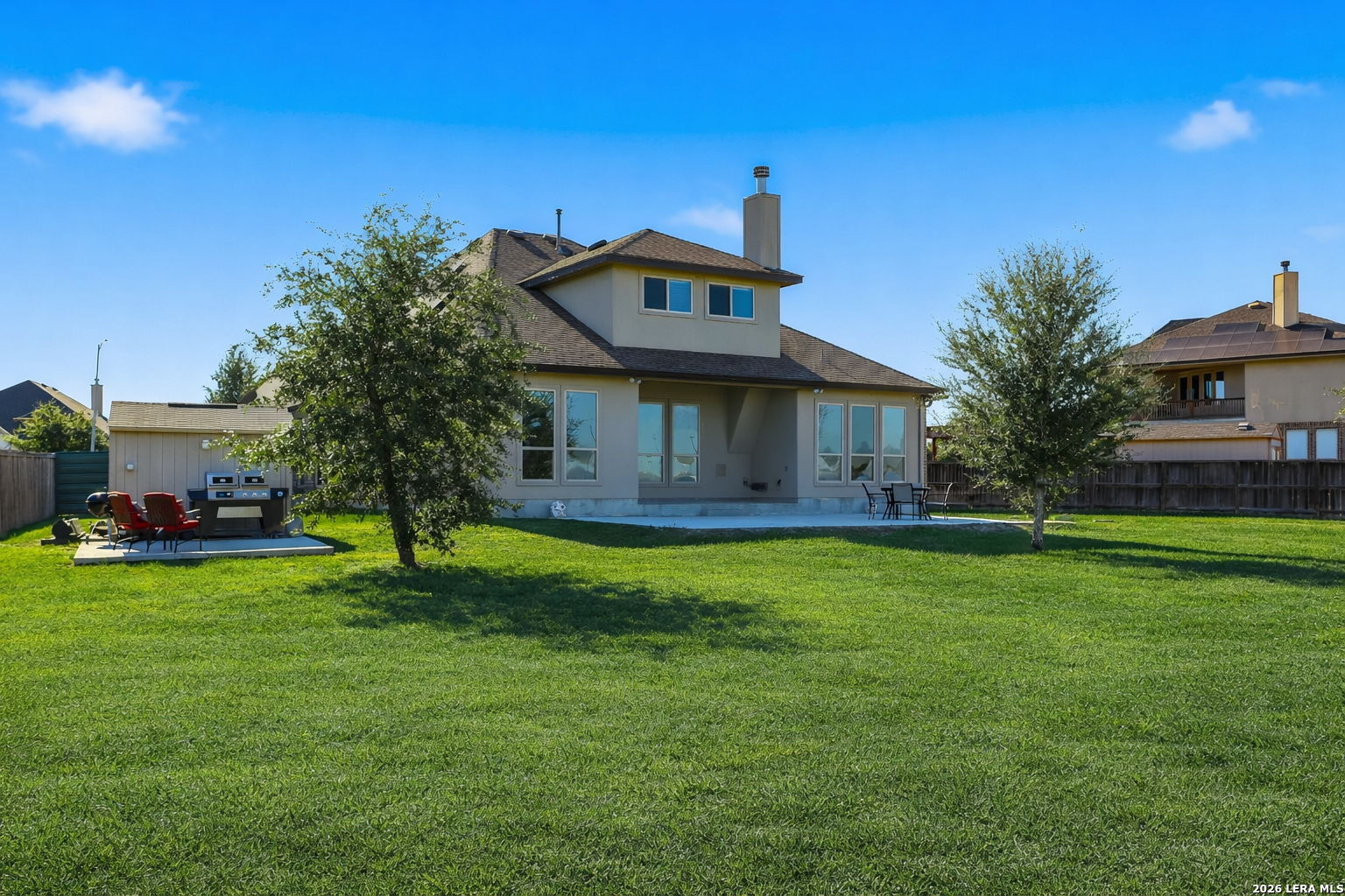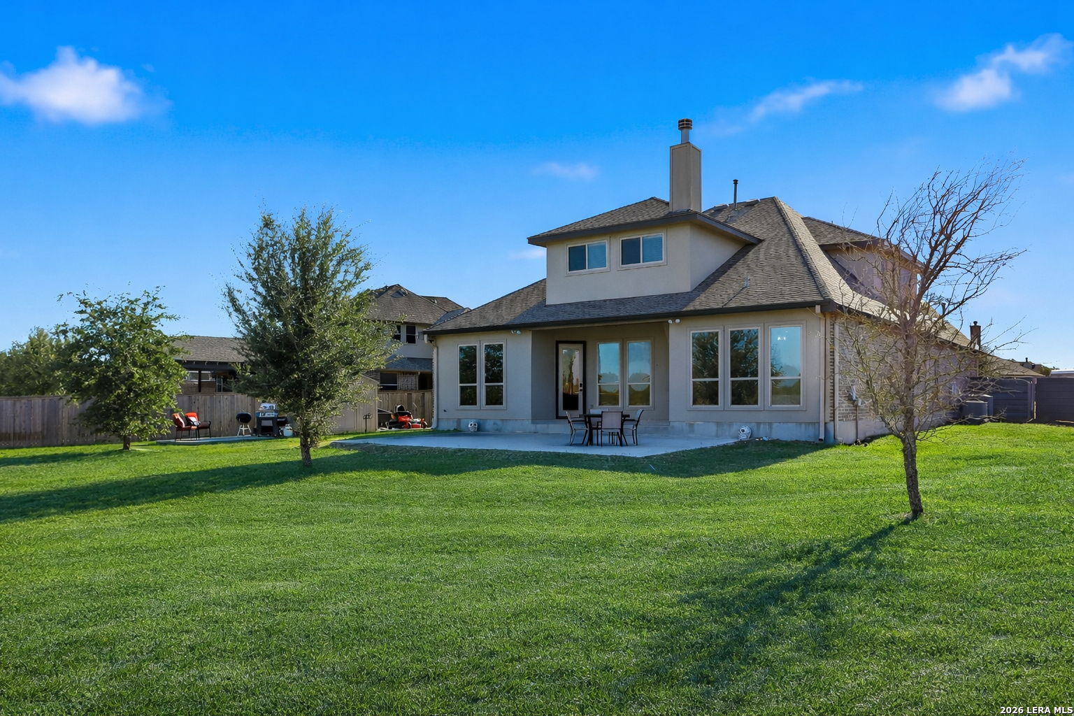 Welcome to this stunning 1.5-story home in San Antonio-a rare find offering 5 bedrooms, 4 full bathrooms, a large game room, and over 3/4 acre of space to enjoy. Conveniently located near Randolph Air Force Base, this home is an excellent option for buyers searching for San Antonio military homes, planning a PCS to San Antonio, or exploring VA loans in San Antonio. Step inside to an inviting entry with soaring ceilings and a formal dining room accented by elegant tray ceilings and abundant natural light. The open-concept main living area features beautiful wood flooring, a cozy corner fireplace, and effortless flow into the kitchen-perfect for everyday living and entertaining. The kitchen is designed for both style and function with granite countertops, a wide breakfast bar, recessed lighting, and an eat-in dining area overlooking the backyard. The spacious primary suite feels like a private retreat with tray ceilings, dual vanities, a soaking garden tub, separate shower, and a huge walk-in closet. Outside, enjoy an oversized patio, a sprawling private yard, and custom JellyFish lighting that adds year-round ambiance and standout curb appeal. Super clean and loaded with upgrades, this property truly checks every box-space, comfort, and an unbeatable location near Randolph AFB, shopping, and dining. Schedule your showing today and ask about the assumable VA loan opportunity.