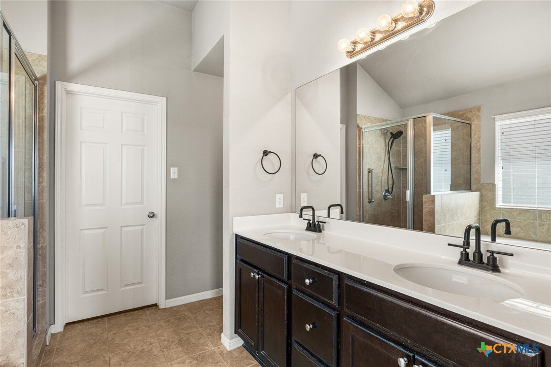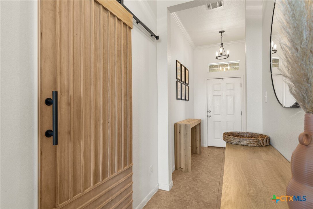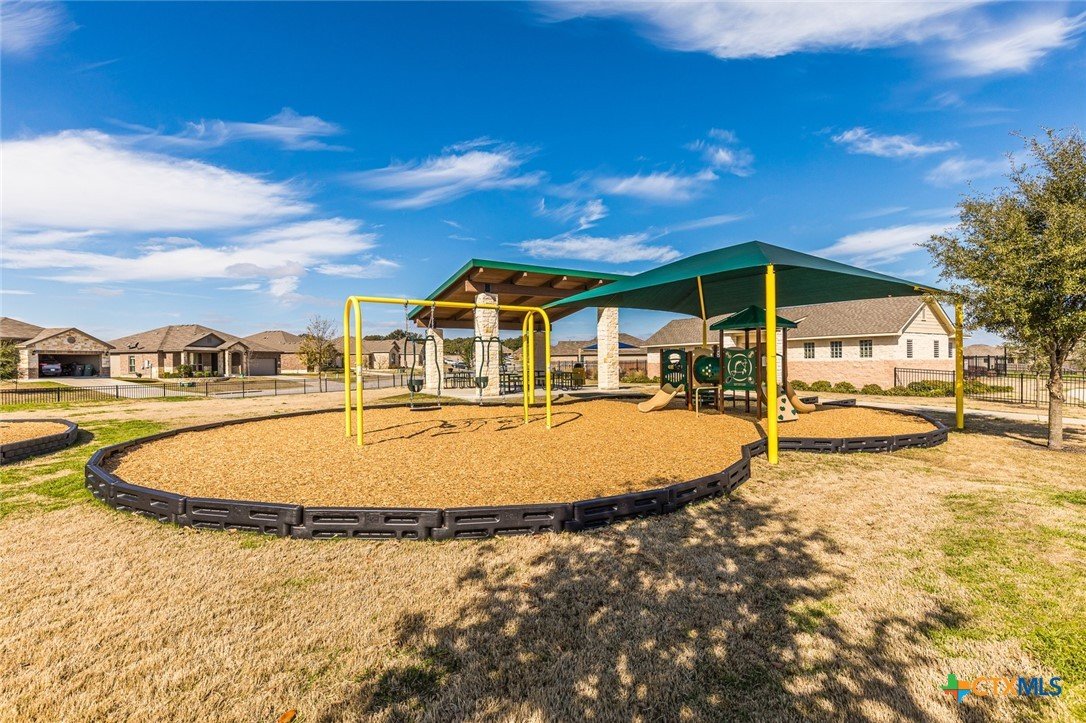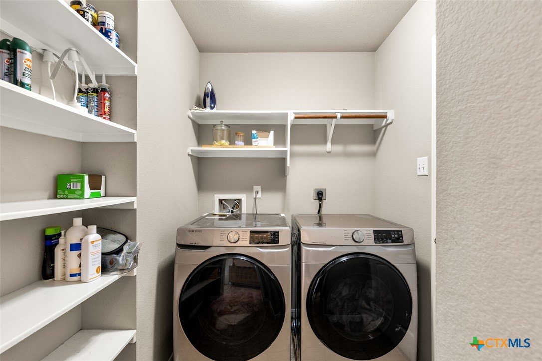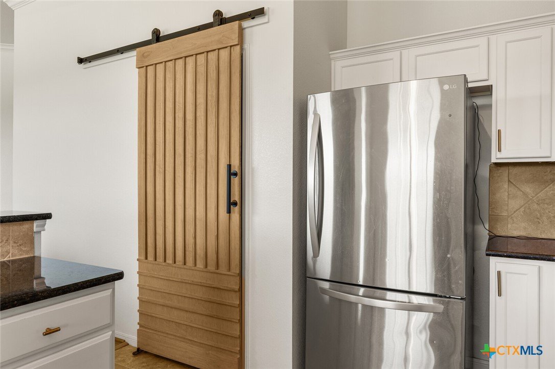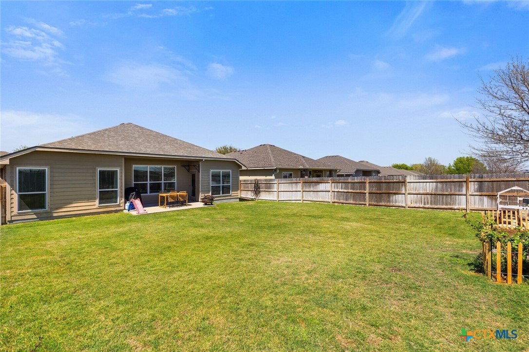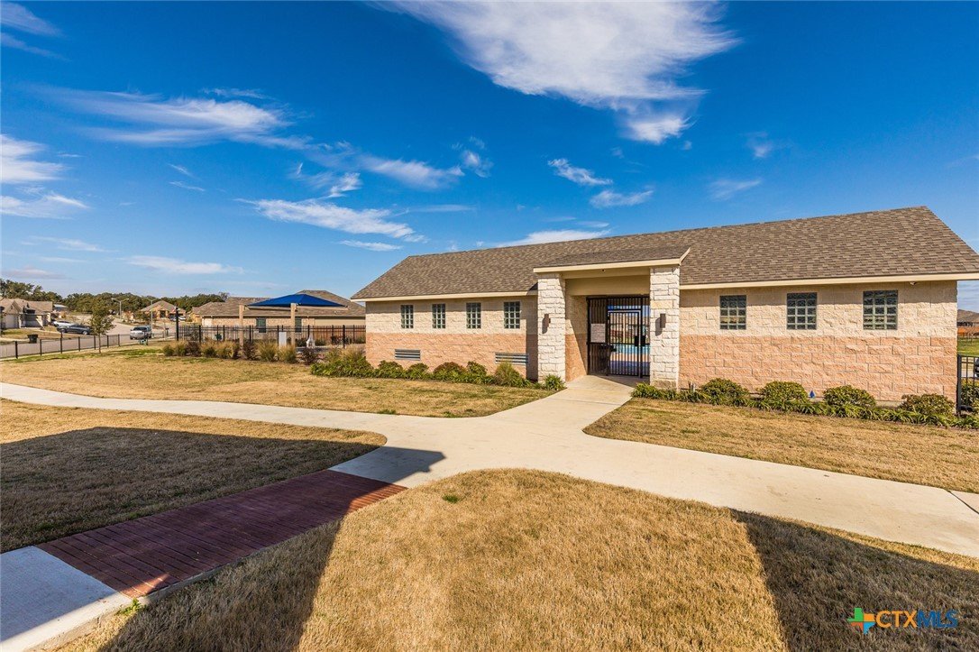 WITH AN UPSCALE STONE EXTERIOR & THOUGHTFUL UPDATES, THIS 3-BEDROOM, 2-BATH WYNDHAM HILL HOME SHINES FROM EVERY ANGLE! Designed with today’s buyers in mind, this split-bedroom floor plan centers around a spacious open-concept layout that seamlessly connects the kitchen, dining, and family room. The galley kitchen features white painted cabinetry, dark granite countertops, and opens to a generously sized dining area, making it ideal for both everyday living and entertaining. Large windows in the living room highlight the tall ceilings and fill the space with natural light while offering views of the patio and backyard. The utility room stands out with a floor-to-ceiling built-in bookshelf wall for added storage. The private primary suite offers a beautifully appointed bath with dual vanities, a garden tub, separate shower, and walk-in closet. Recent updates include handmade barn doors at the pantry and utility room, plus a custom wood accent wall in the primary bedroom. Located in desirable Wyndham Hill with neighborhood amenities including a residents only pool, playground, and clubhouse, this home also offers convenient access to medical centers, shopping, restaurants, and I-35! Definitely a property that is easy to love!