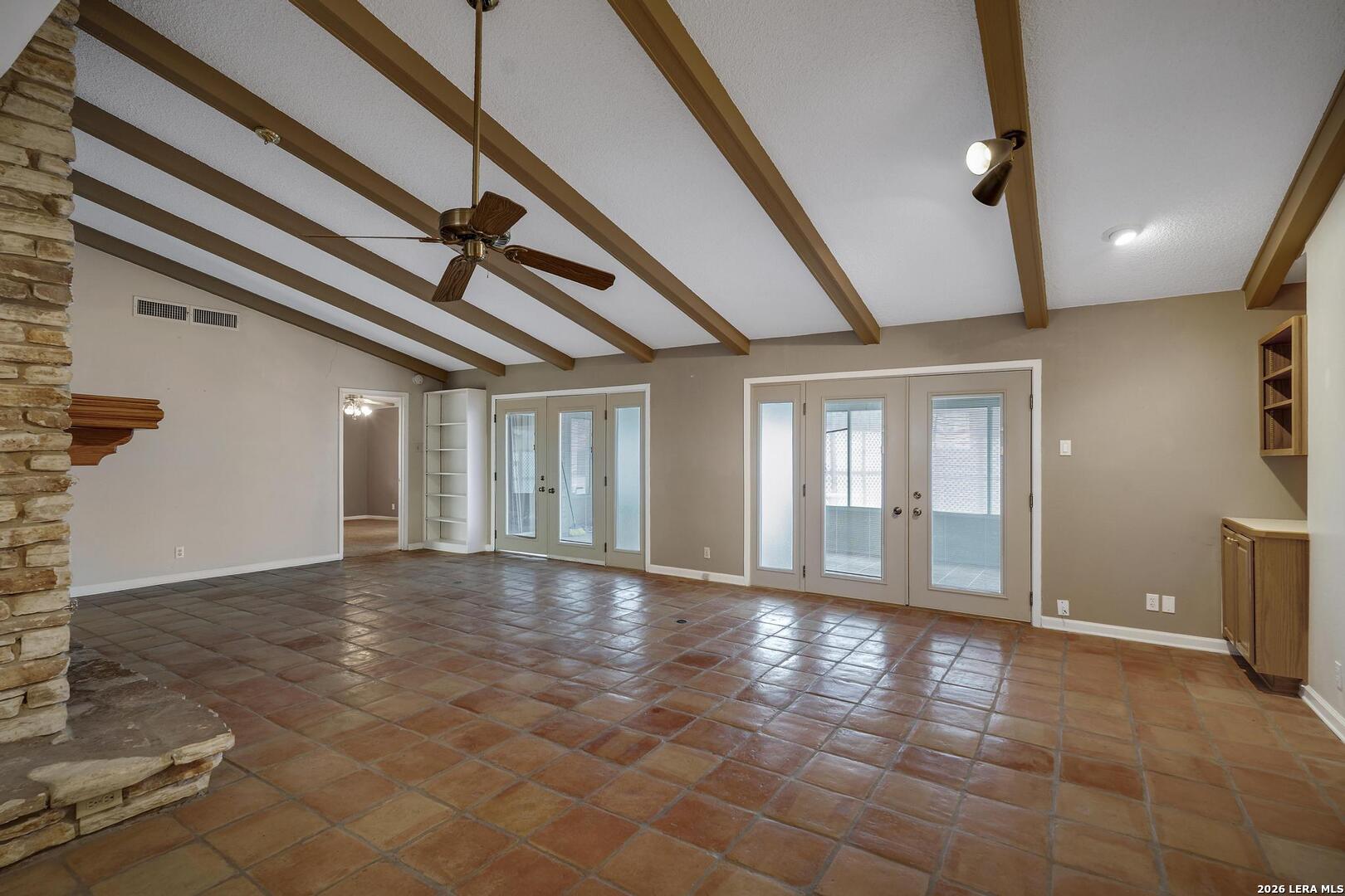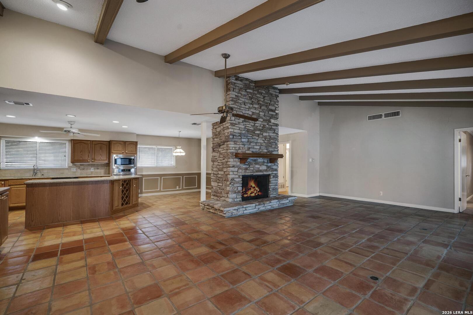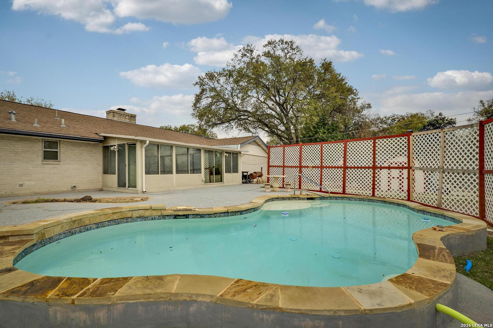 Estate sale property, no seller disclosure. Seller name: Laird H. McNeil, Dependent Administrator of the Estate of William Tullos. Welcome to Windcrest, with a oversized corner lot! Large and open four bedroom, two and 1/2 bath home, with a in-ground pool. Saltillo Tile in living areas, with large kitchen, open to the dining and family room. Center rock fireplace, with tons of windows for natural light. Primary bedroom with patio access, large primary bath and walk in closet. Secondary bedrooms are split, and oversized. Covered and glassed in patio in back yard, overlooking the pool, with privacy fence and mature trees. Side entry garage, oversized, with a workshop; alley access in rear of property. Come see why so many people love Windcrest, and the central location!