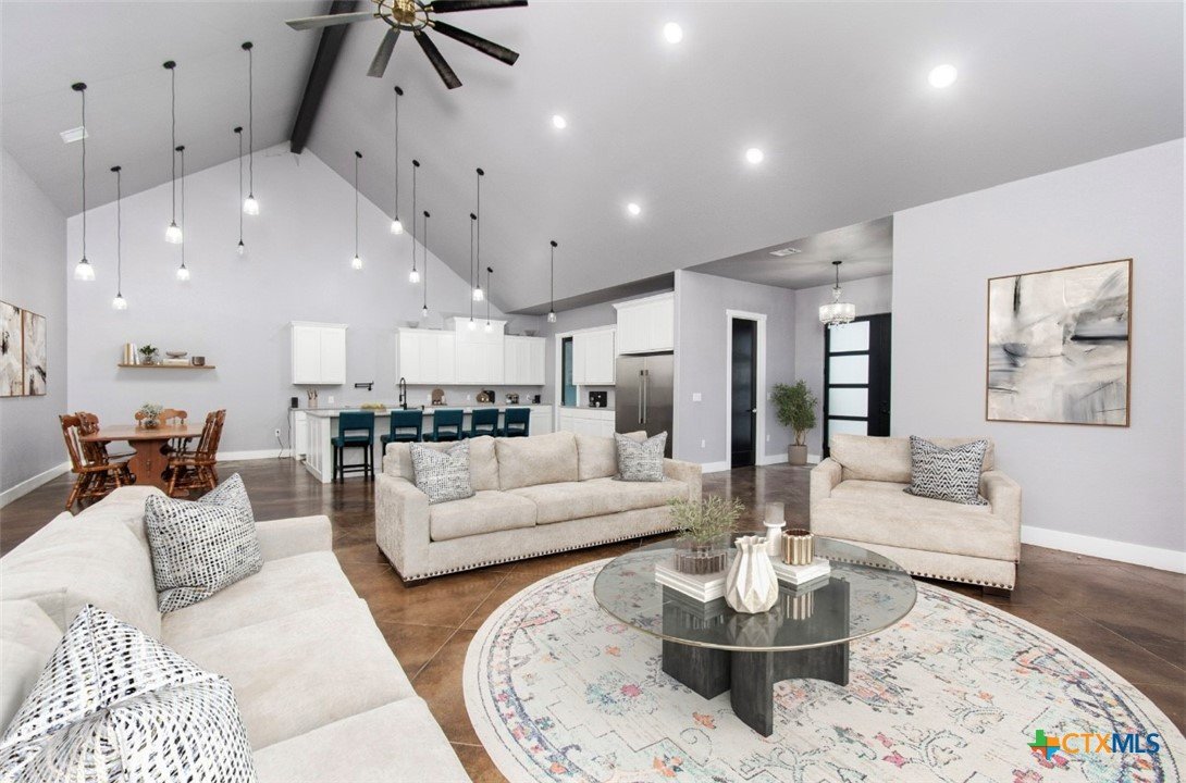 Welcome to this beautifully designed, energy-efficient home set on 3.43 +\- serene acres, offering luxury finishes, thoughtful craftsmanship, and exceptional functionality throughout. Built in 2023, with 4 bedrooms 3 bath and office and a huge media/extra living/theater/hobby upstairs, this property combines modern comfort with high-quality construction. Inside, you’ll find spray-foam insulation in the walls and attic, 2x6 exterior walls, and 10-foot ceilings with 8-foot double doors, creating a spacious, quiet, and efficient living environment. The gourmet kitchen features double ovens, an industrial-grade refrigerator and freezer, and a convenient butler’s pantry for extra storage and prep space. An oversized primary suite is complete with a jetted tub in the master bath—perfect for unwinding after a long day. Step outside to enjoy double front and back doors that enhance the home’s flow and natural light. The property also boasts a 40x50 shop, fully equipped with heating and air conditioning, ideal for hobbies, storage, or workspace needs. This property offers the peace of country living with all the modern conveniences. A MUST-SEE! In between Cameron and Temple off 485 for quick access to amenities. Move-in ready and built to impress—come experience it for yourself! Virtual staging for pics.