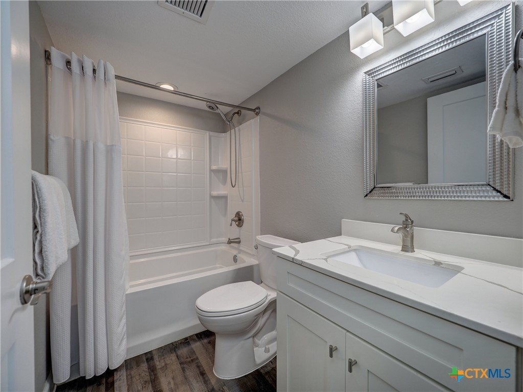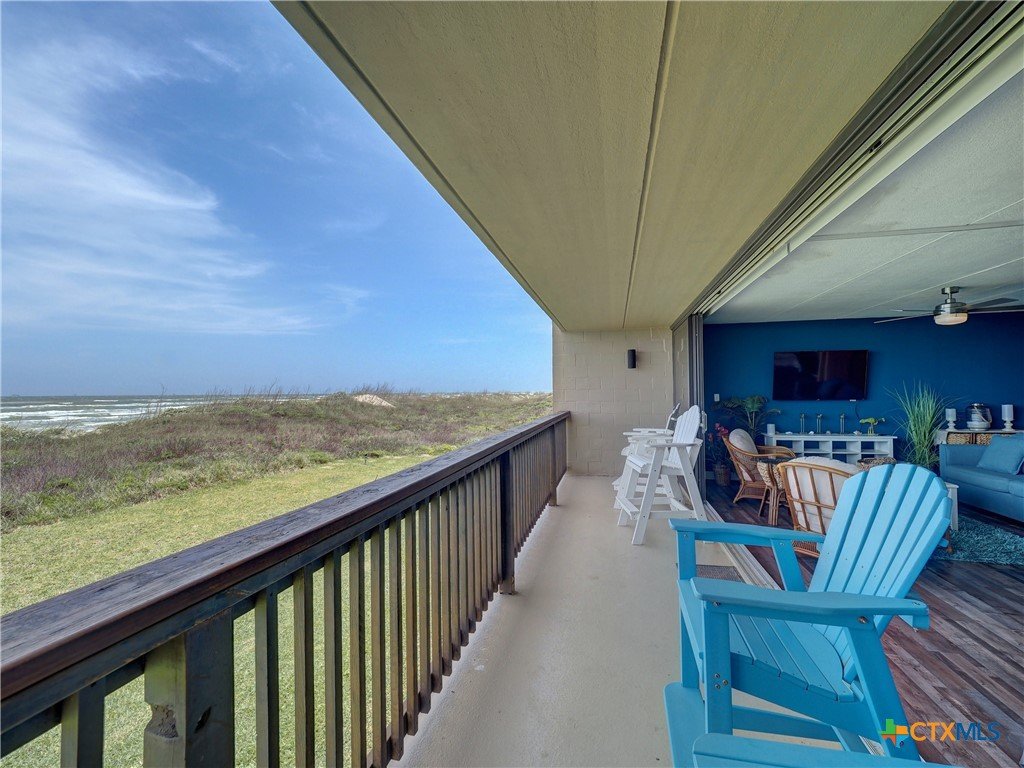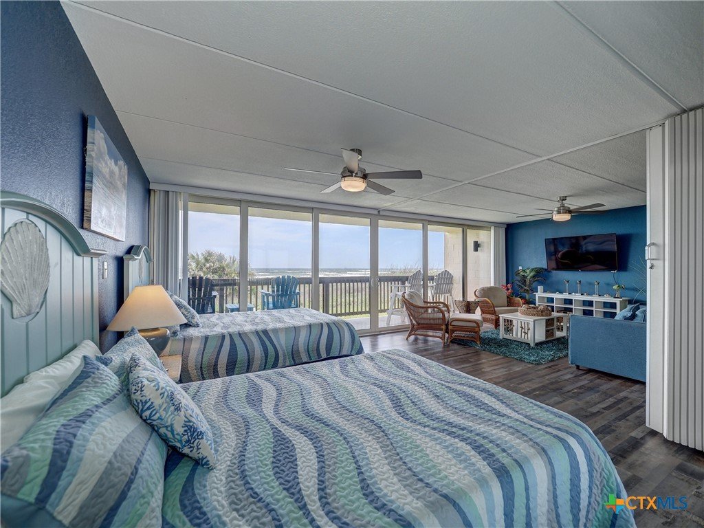 Beachfront getaway with unbeatable views! Gulf Shores Unit 108 is a ground-floor, condo located just steps from the sand in one of Port Aransas' closest complexes to the beach. This 2-bedroom, 2-bath unit features a spacious 27-foot beachfront patio—perfect for enjoying the sunrise and the sound of the waves. Inside, you’ll find a bright and inviting open layout. The kitchen is equipped with quartz countertops, a large refrigerator, microwave, and a peninsula with seating for two. The living and dining areas offer a relaxed coastal feel, and the full-length storm-rated sliding glass doors open wide to extend your living space to the beachfront patio—perfect for soaking in the views and sea breeze. Both bathrooms have modern finishes and the laundry room includes a full-size washer and dryer for added convenience. This unit is being sold fully furnished, making it ready to enjoy as your personal beach retreat or vacation rental. The HOA assessment covers almost everything, including exterior maintenance, exterior insurance, cable, internet, trash, onsite management, a private boardwalk to the beach, sparkling pool, hot tub, and a fish cleaning station. With no short-term rental restrictions and strong rental potential, Unit 108 offers an exceptional opportunity for both enjoyment and income. The large parking area provides plenty of space for owners and guests—including room for boats and RVs. Whether you're dreaming of morning coffee with ocean views or looking for a hassle-free vacation rental, Unit 108 offers the perfect balance of comfort, convenience, and coastal charm. With everything taken care of by the HOA and direct beach access just steps away, all you need to do is show up and enjoy. Start making memories—or income—right away in this beautifully updated, move-in-ready condo.