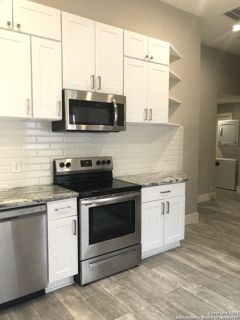 Live in the heart of the historic Lavaca District, just minutes from Downtown San Antonio! This beautifully updated 1-bedroom, 1-bath duplex (right-side unit) features an open floor plan with high ceilings, modern fixtures, and abundant natural light. The spacious kitchen offers ample cabinet storage, a breakfast bar, and brand-new stainless steel appliances, including refrigerator plus new stacked washer and dryer. All utilities included in rent: electricity, gas, water, sewer, trash, WiFi, cable, yard maintenance, and pest control - truly hassle-free living in one of San Antonio's most desirable historic neighborhoods!