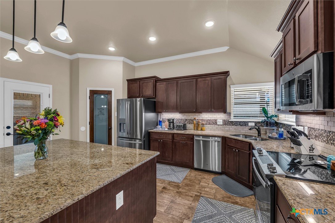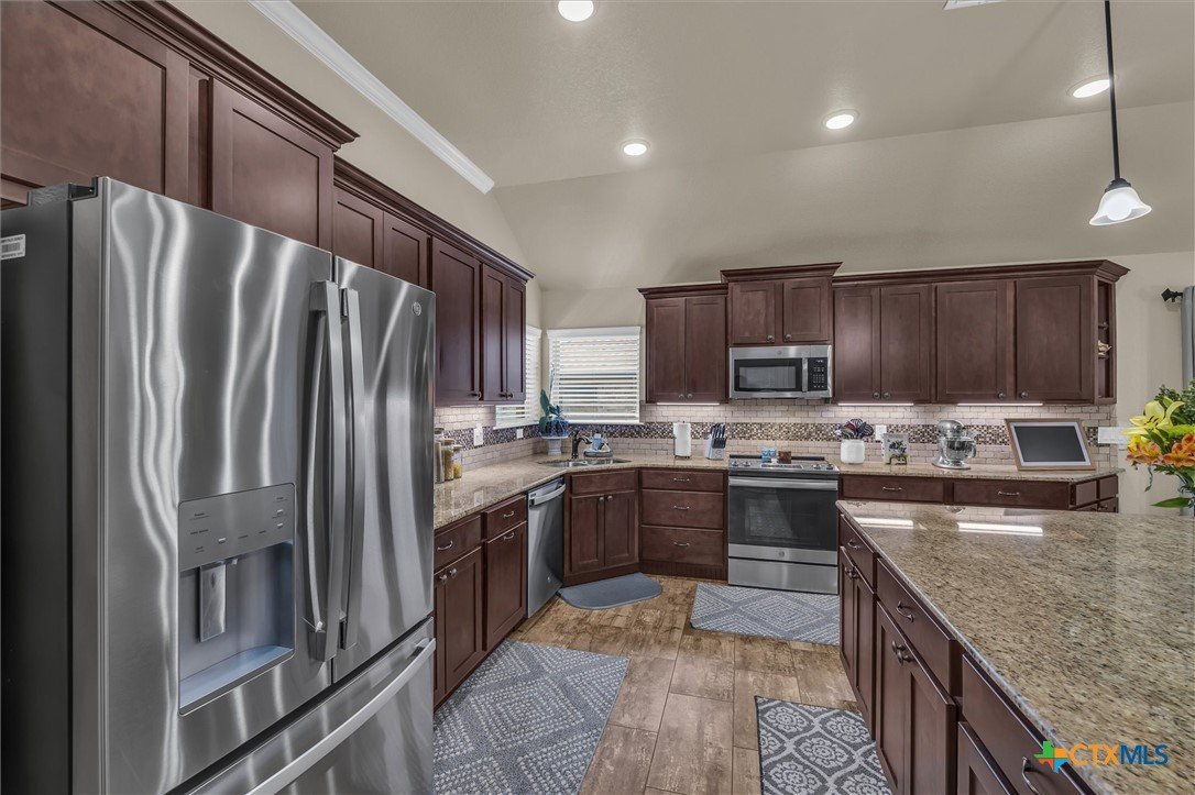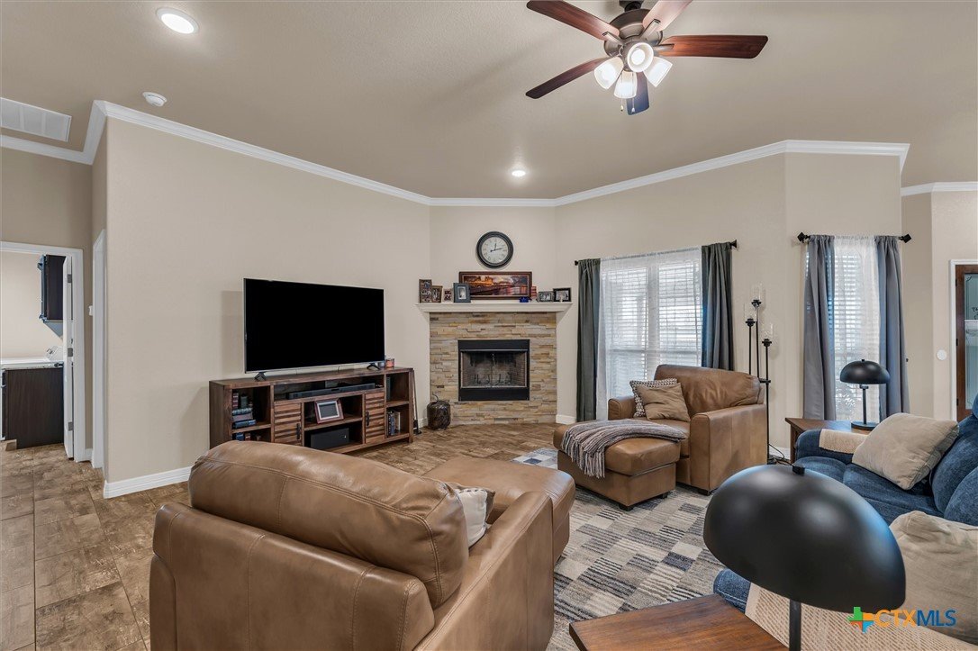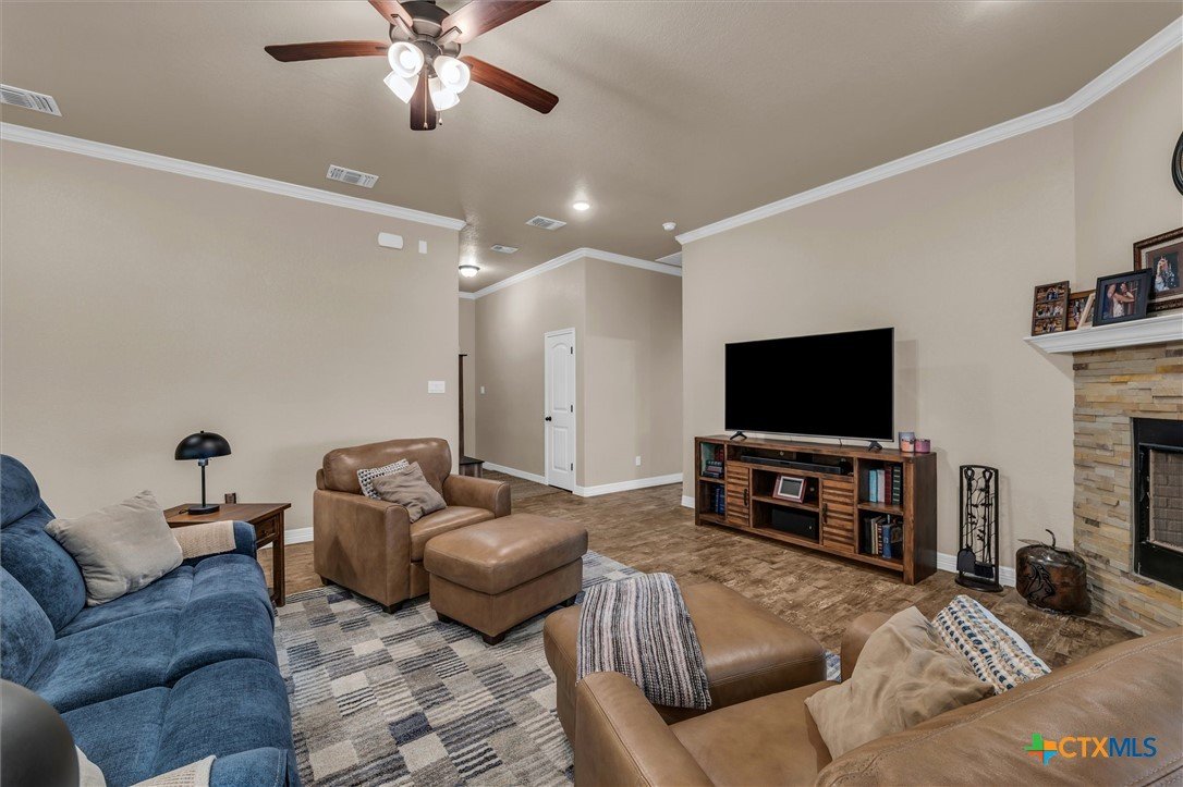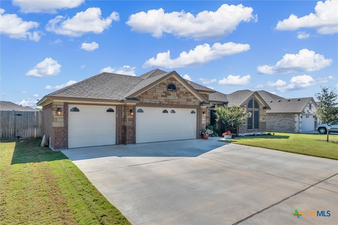 Check out this beautifully designed 2082 square foot Home in Troy! Step inside this stunning home and fall in love with the perfect layout and modern design. The open floor plan welcomes you with a spacious living area and cozy corner fireplace, creating the ideal space for relaxing or entertaining. The gourmet kitchen features a gorgeous granite island, full amenities, and a large eat-in area for family meals and gatherings. The split floor plan offers three bedrooms and a guest bath on one side, while the primary suite is a private retreat complete with a luxurious ensuite showcasing double vanities, granite counters, and an extra-large walk-in closet. Additional highlights include, 3-car garage with room for parking, storage, or what suites your needs, convenient separate laundry room, energy-efficient spray foam insulation for lower utility costs, full sprinkler system for easy yard maintenance, and a large covered back patio with privacy shades for your own retreat at home. Located in Troy addition, this home is close to schools and only minutes from I-35, offering both convenience and community. Don’t miss your chance to make this home yours! Schedule a showing today!