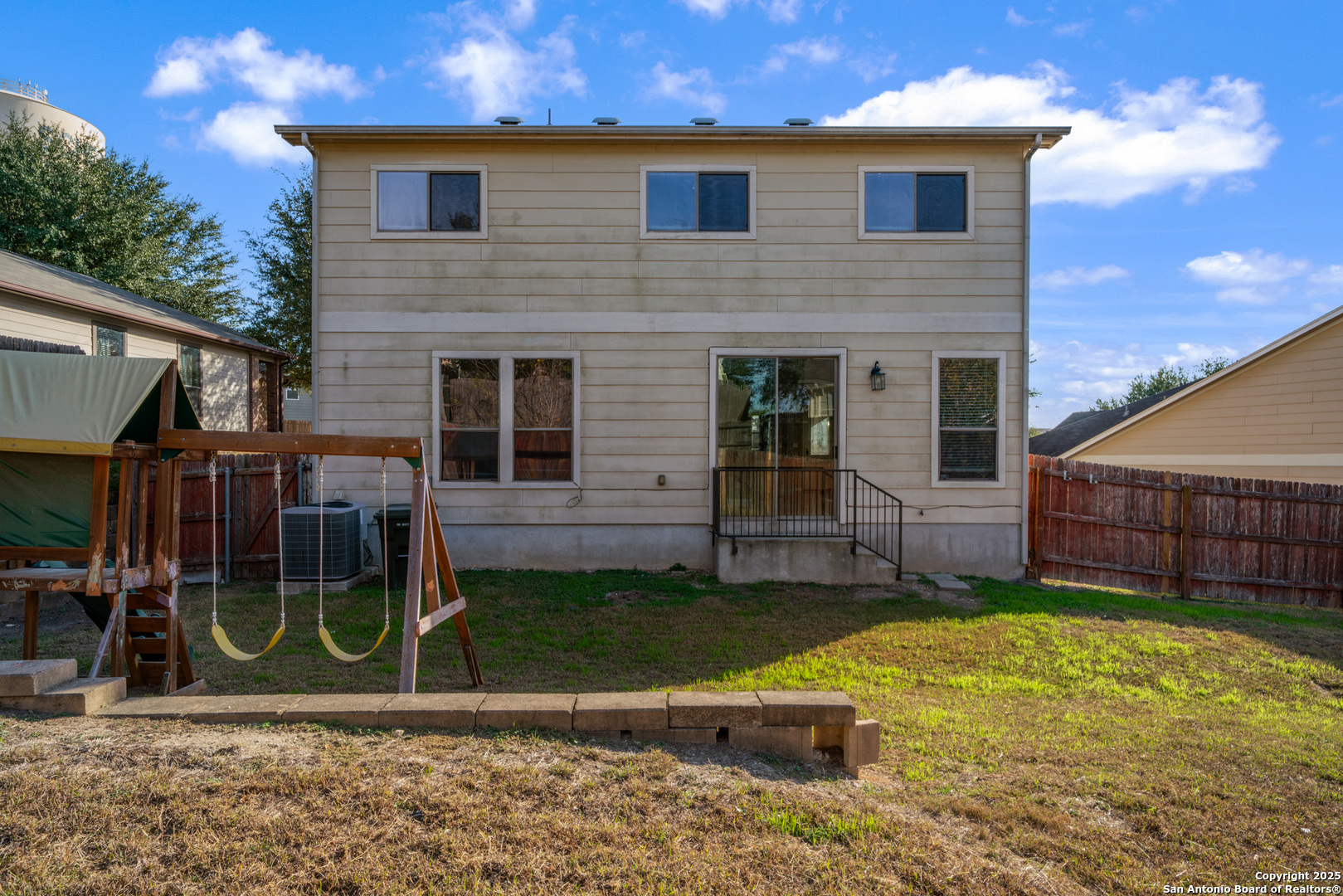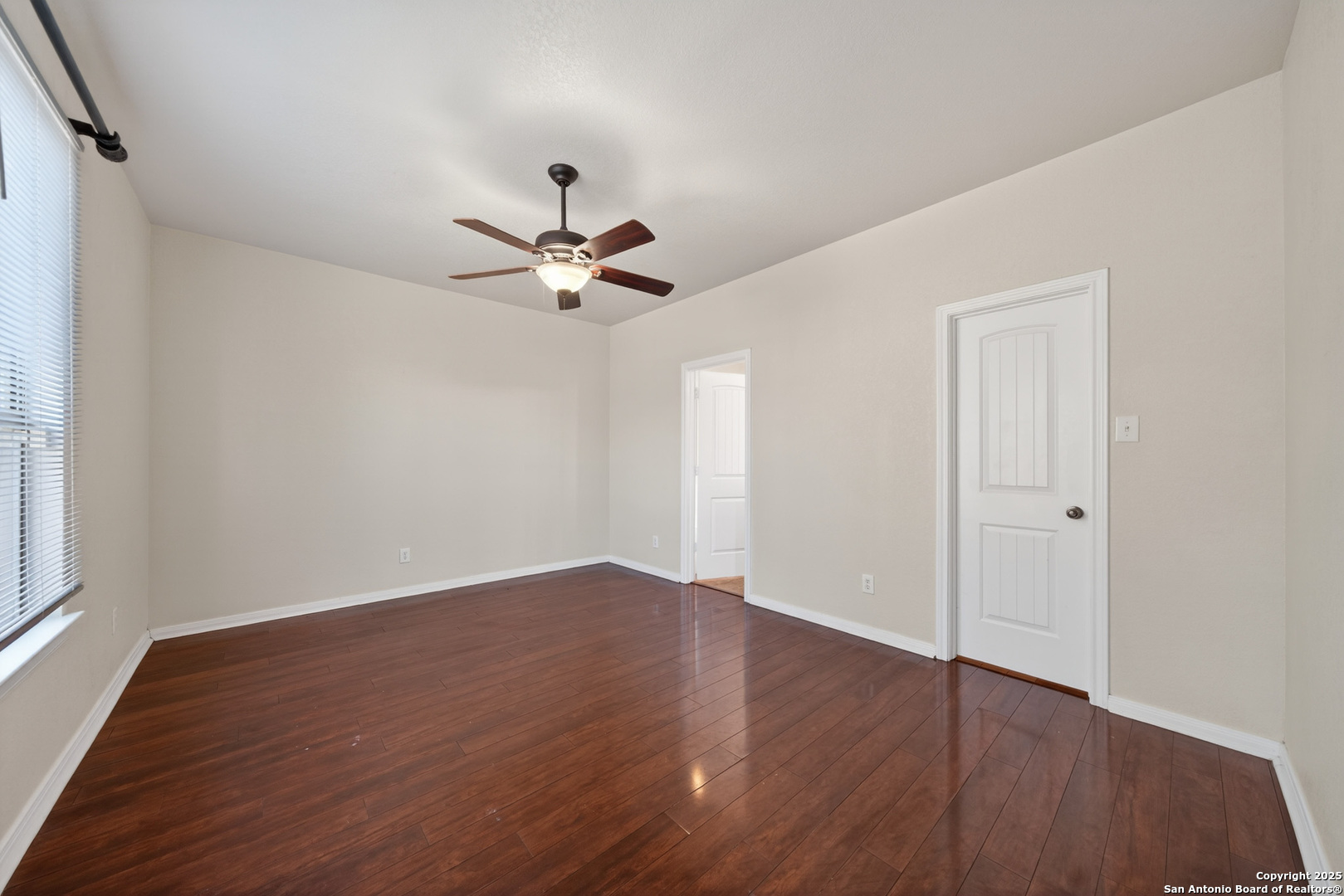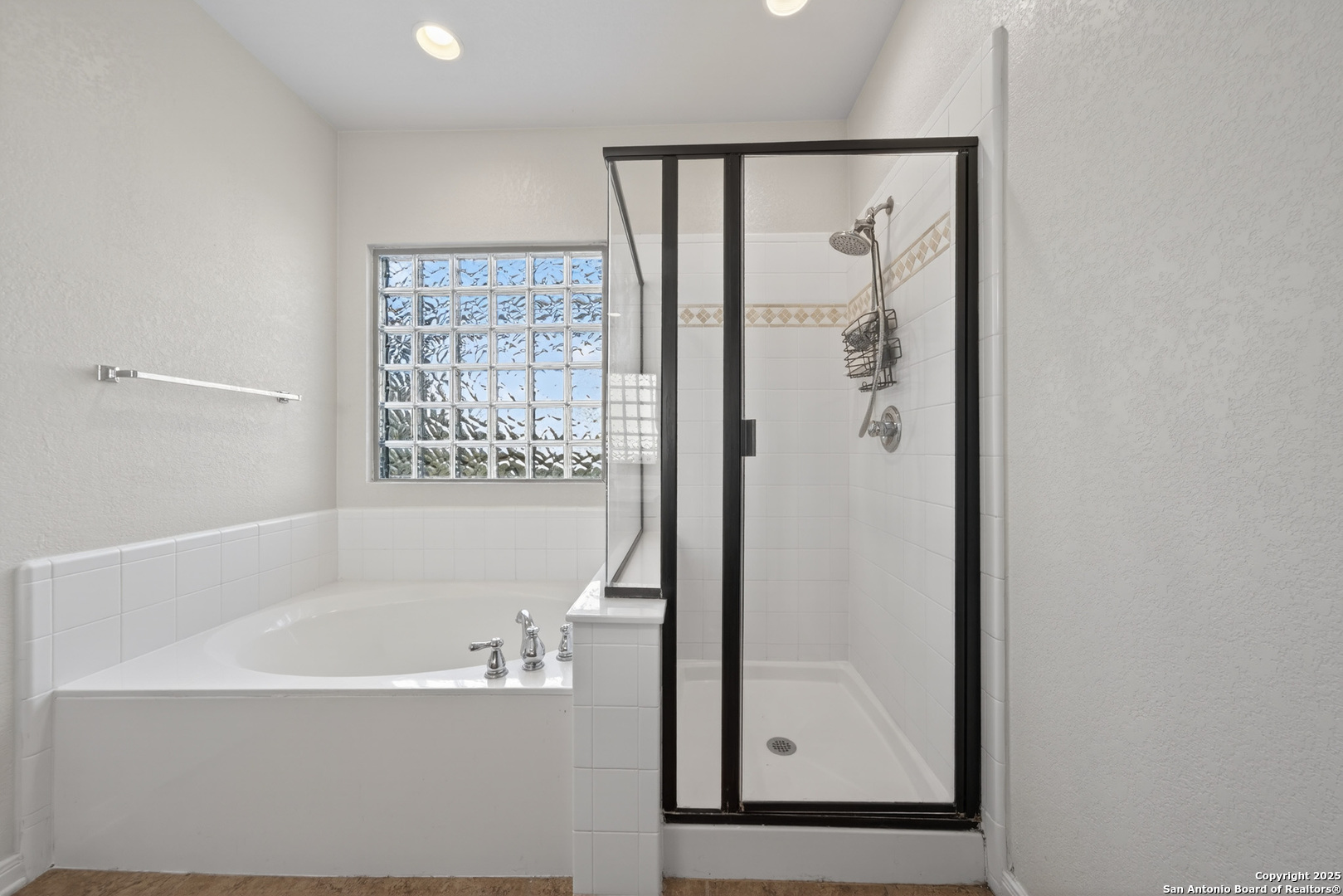 Gorgeous 4-bedroom, 3-full-bath home located in the desirable Links at Scenic Hills subdivision. Upon entry, you are welcomed into a spacious combined living and dining area that flows seamlessly into the kitchen, creating an ideal layout for everyday living and entertaining. The kitchen offers ample cabinetry, recessed lighting, black appliances, and a stainless-steel refrigerator. The primary suite is conveniently located downstairs just off the living area and features a full en-suite bathroom with dual vanities, a large garden tub, and a separate walk-in shower. Laminate wood flooring and ceramic tile have been installed throughout the home for easy maintenance and durability. Upstairs, you will find the remaining bedrooms along with a generously sized game room, providing flexible living space for work, play, or relaxation. Ideally situated with quick access to Interstate 35, Randolph Air Force Base, and premier shopping and dining at The Forum. The City of Schertz is currently developing a new 14-acre Hilltop Park adjacent to the subdivision, which will feature walking and mountain bike trails, an accessible loop trail around the pond, and a fishing pier. Residents of the subdivision also enjoy access to a community pool, further enhancing the neighborhood's amenities. A wonderful opportunity in a growing area-this home is truly a pleasure to show.