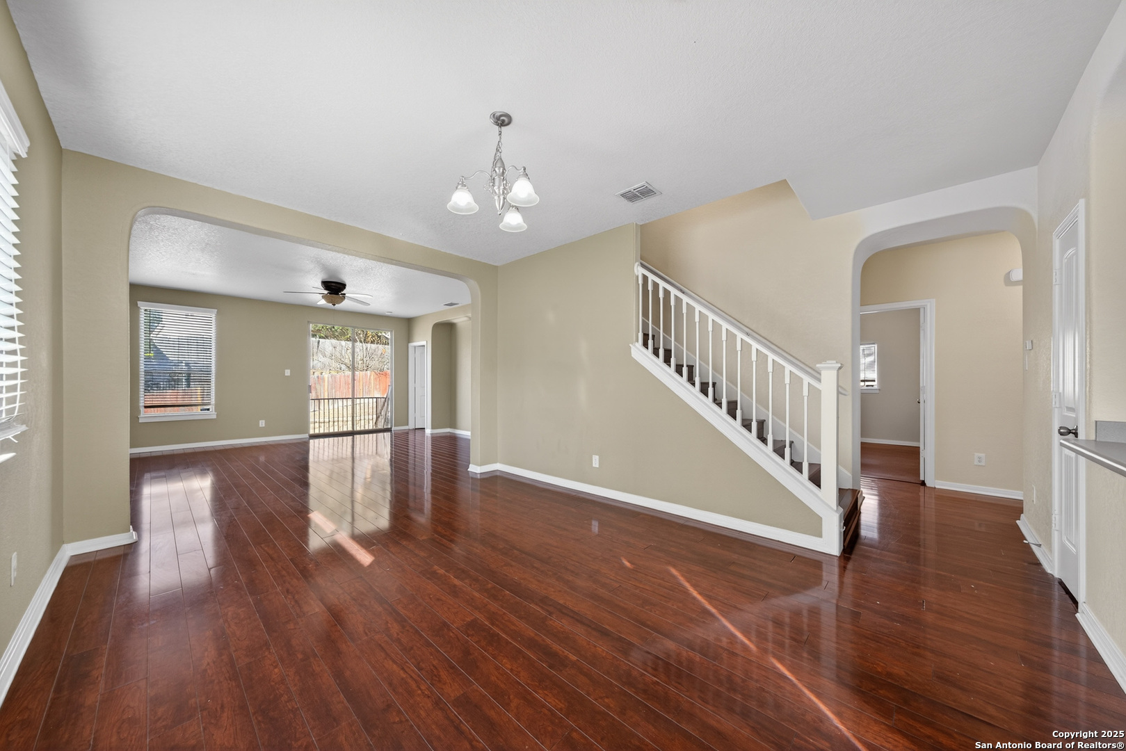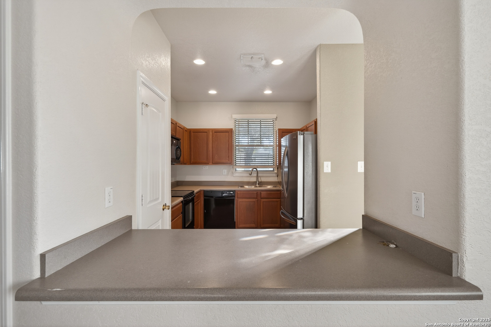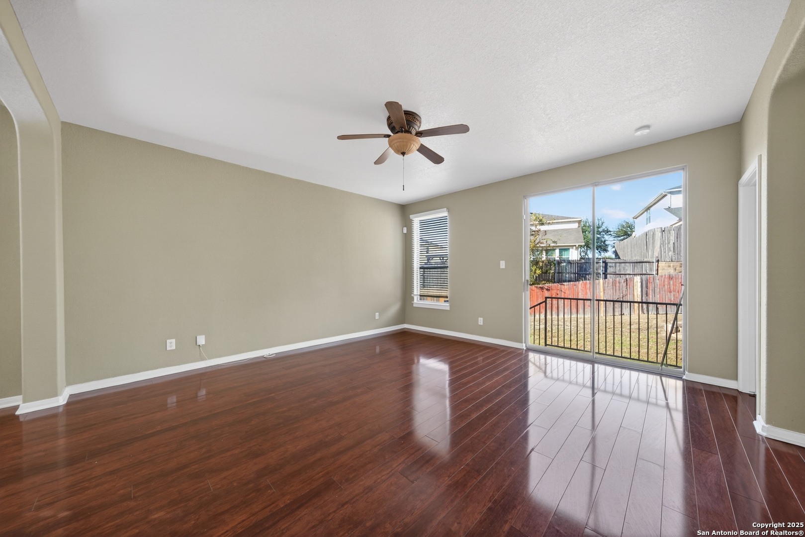 Gorgeous 4-bedroom, 3-full-bath home located in the desirable Links at Scenic Hills subdivision. Upon entry, you are welcomed into a spacious combined living and dining area that flows seamlessly into the kitchen, creating an ideal layout for everyday living and entertaining. The kitchen offers ample cabinetry, recessed lighting, black appliances, and a stainless-steel refrigerator. The primary suite is conveniently located downstairs just off the living area and features a full en-suite bathroom with dual vanities, a large garden tub, and a separate walk-in shower. Laminate wood flooring and ceramic tile have been installed throughout the home for easy maintenance and durability. Upstairs, you will find the remaining bedrooms along with a generously sized game room, providing flexible living space for work, play, or relaxation. Ideally situated with quick access to Interstate 35, Randolph Air Force Base, and premier shopping and dining at The Forum. The City of Schertz is currently developing a new 14-acre Hilltop Park adjacent to the subdivision, which will feature walking and mountain bike trails, an accessible loop trail around the pond, and a fishing pier. Residents of the subdivision also enjoy access to a community pool, further enhancing the neighborhood's amenities. A wonderful opportunity in a growing area-this home is truly a pleasure to show.