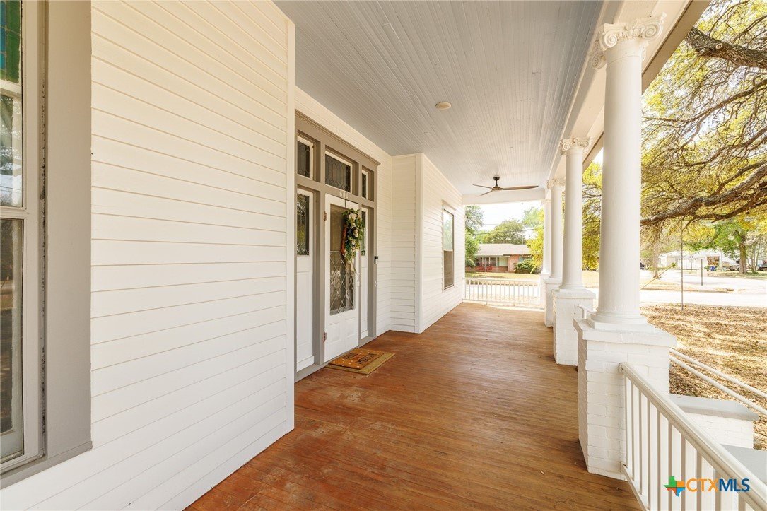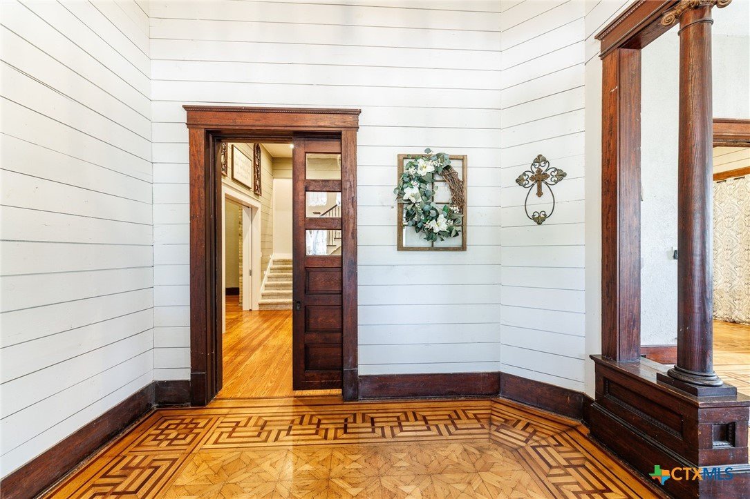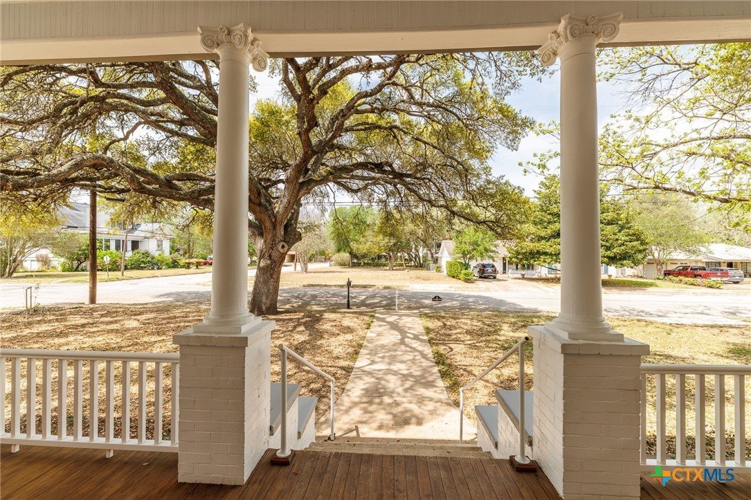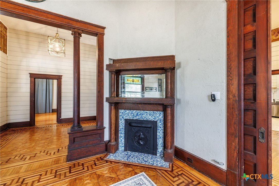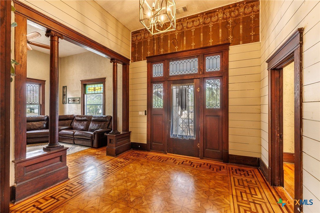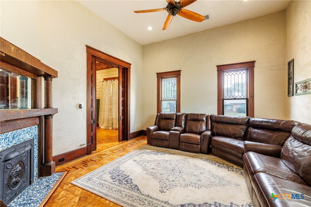 Step into timeless elegance with this beautifully preserved five bedroom Victorian home, where historic craftsmanship meets modern convenience. From the moment you enter the gracious foyer, you are surrounded by original woodwork, stained and leaded glass windows, and ornate fireplaces with their original tile and mantels - a true testament to the era's artistry. Elegant parquet and hardwood floors flow throughout, complemented by classic pocket doors that define each room with character and grace. The updated kitchen blends seamlessly with the home's vintage charm, featuring stainless steel appliances, abundant custom cabinetry, and modern functionality. The primary bath features heated marble floors while retaining vintage charm. Enjoy relaxed mornings and evenings on the covered front porch, ideal for morning coffee or relaxing after a busy day. Outdoors, the property offers a large, private backyard enclosed by a privacy fence with an electric gate, plus an office and workshop both with mini-split units. Mature trees provide ample shade. Recent updates include electrical and plumbing, storm windows, seamless gutters and energy efficient insulation, and a 50-amp RV plug with an additional driveway. A new roof was installed in 2017. Offering the perfect blend of Victorian beauty and everyday livability this home offers you the opportunity to own a cherished piece of Gonzales' rich history.