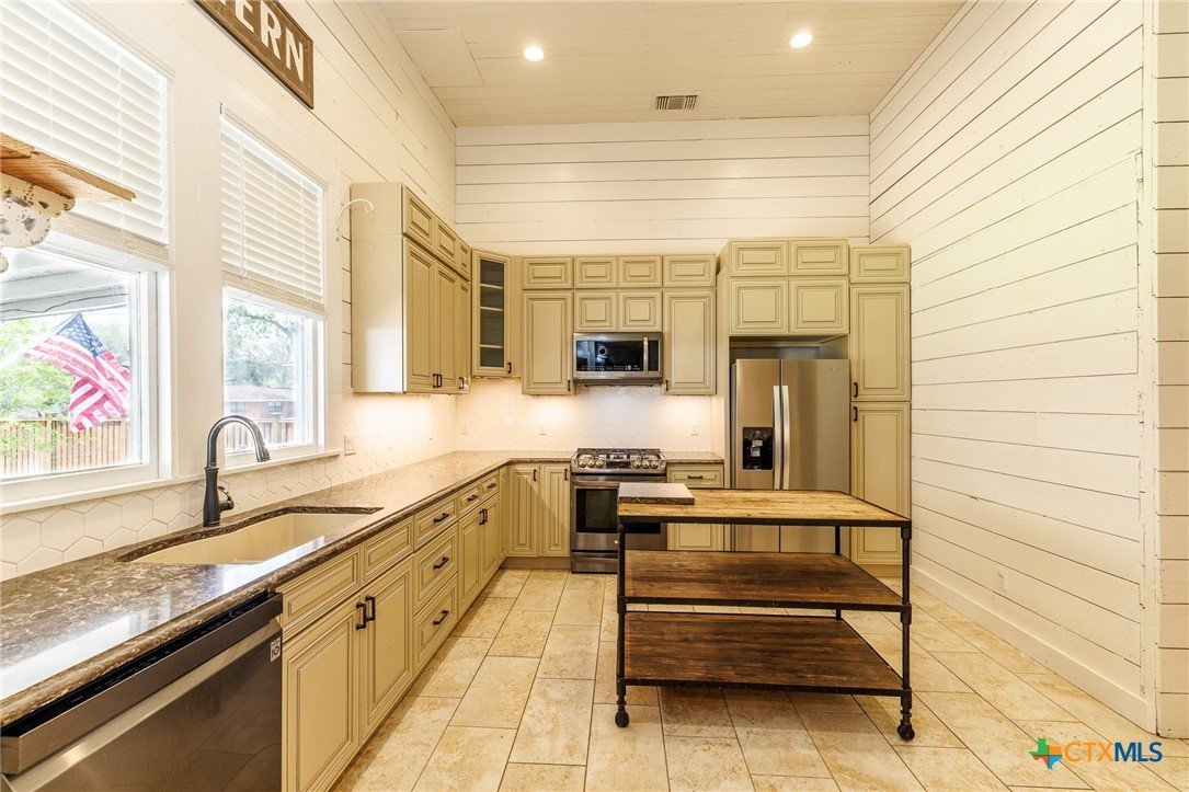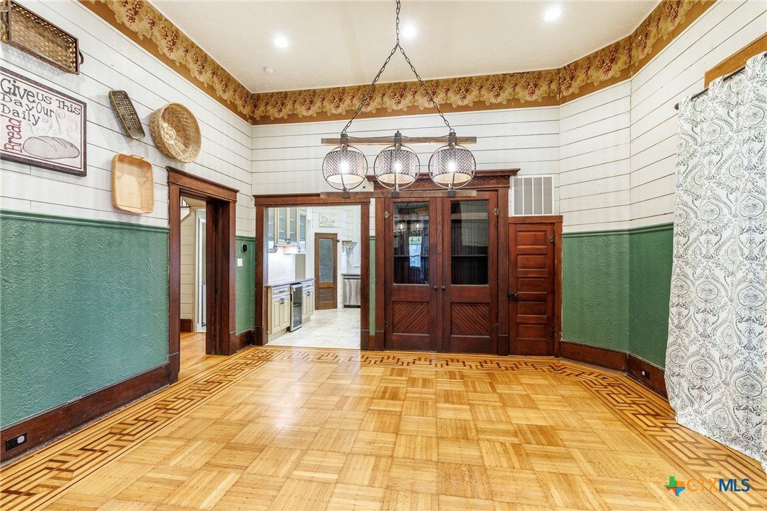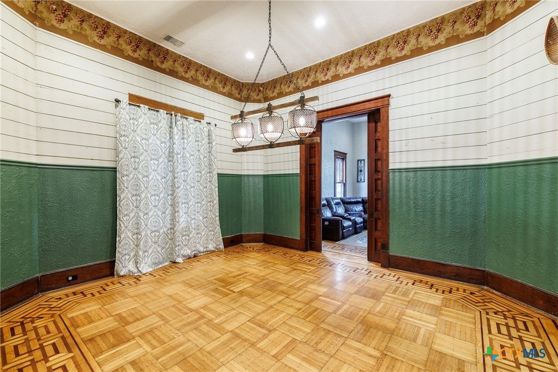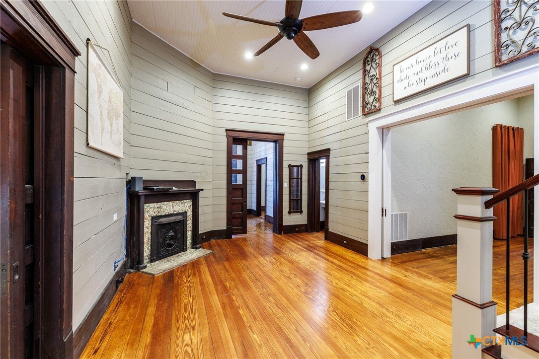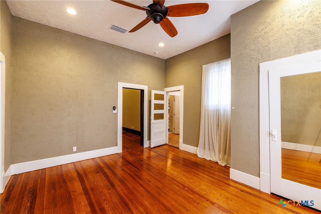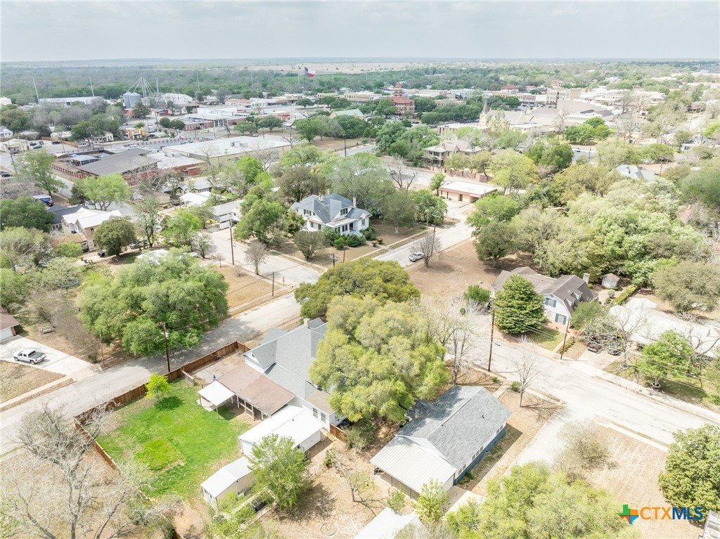 Step into timeless elegance with this beautifully preserved five bedroom Victorian home, where historic craftsmanship meets modern convenience. From the moment you enter the gracious foyer, you are surrounded by original woodwork, stained and leaded glass windows, and ornate fireplaces with their original tile and mantels - a true testament to the era's artistry. Elegant parquet and hardwood floors flow throughout, complemented by classic pocket doors that define each room with character and grace. The updated kitchen blends seamlessly with the home's vintage charm, featuring stainless steel appliances, abundant custom cabinetry, and modern functionality. The primary bath features heated marble floors while retaining vintage charm. Enjoy relaxed mornings and evenings on the covered front porch, ideal for morning coffee or relaxing after a busy day. Outdoors, the property offers a large, private backyard enclosed by a privacy fence with an electric gate, plus an office and workshop both with mini-split units. Mature trees provide ample shade. Recent updates include electrical and plumbing, storm windows, seamless gutters and energy efficient insulation, and a 50-amp RV plug with an additional driveway. A new roof was installed in 2017. Offering the perfect blend of Victorian beauty and everyday livability this home offers you the opportunity to own a cherished piece of Gonzales' rich history.