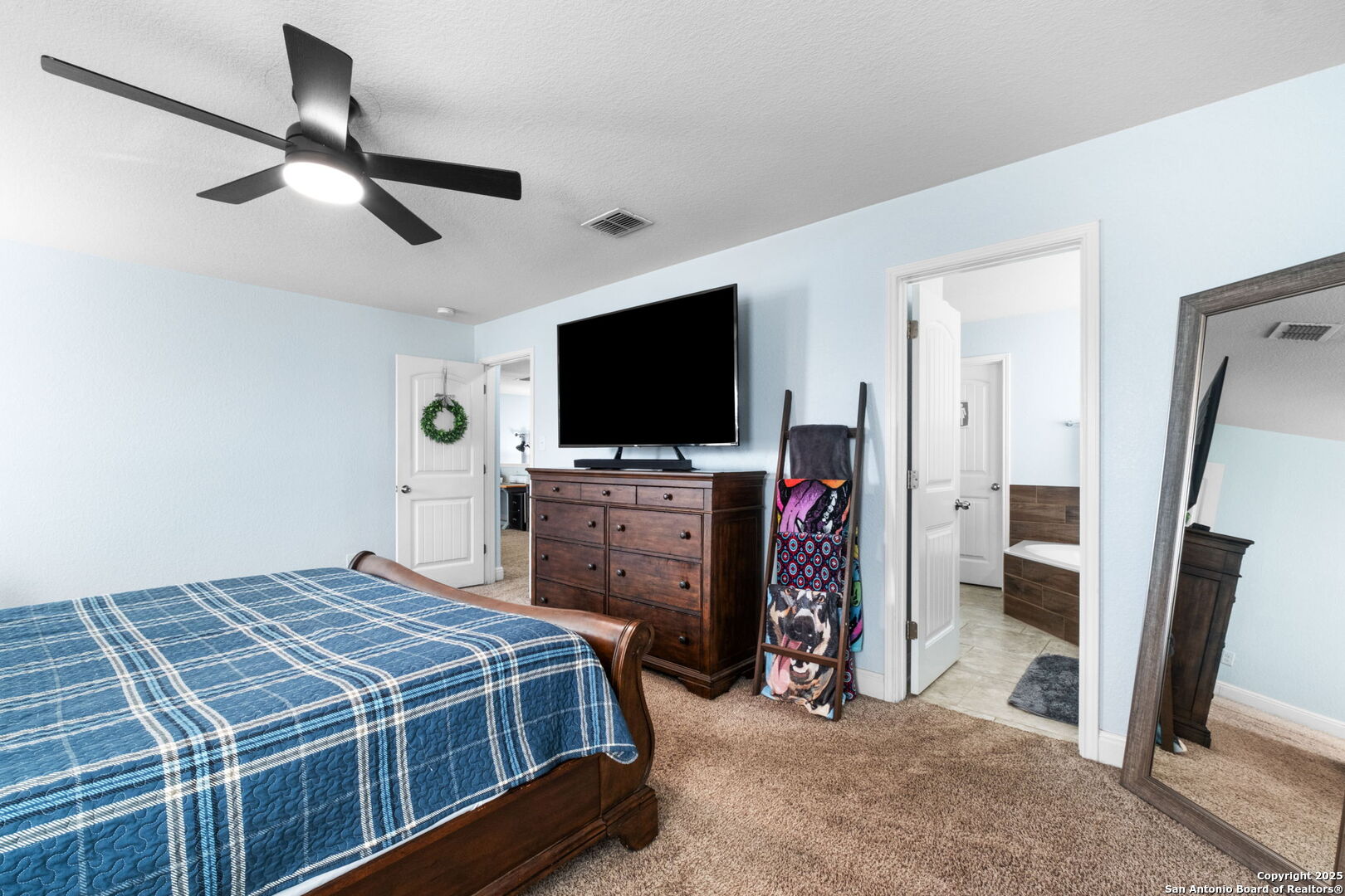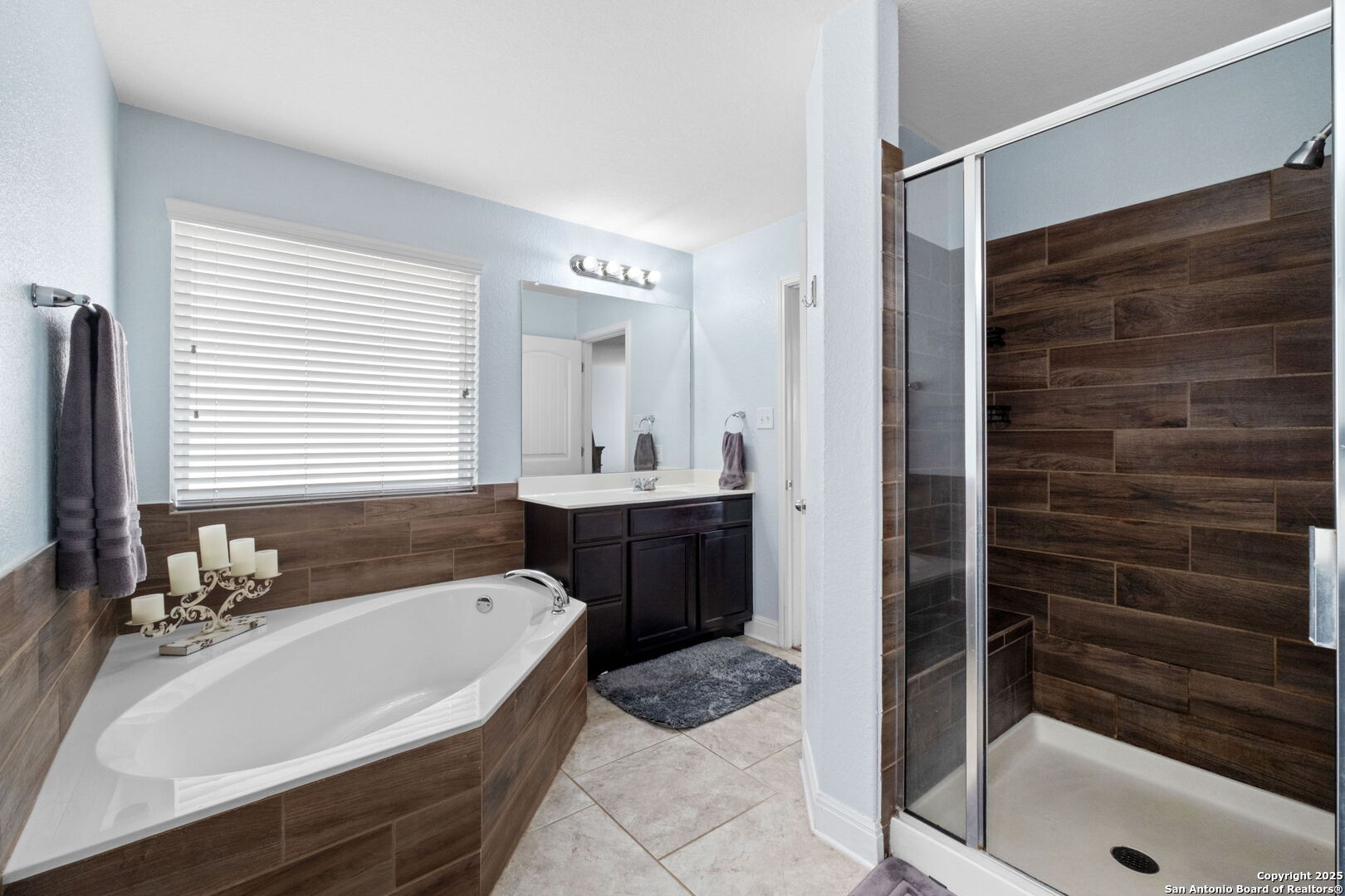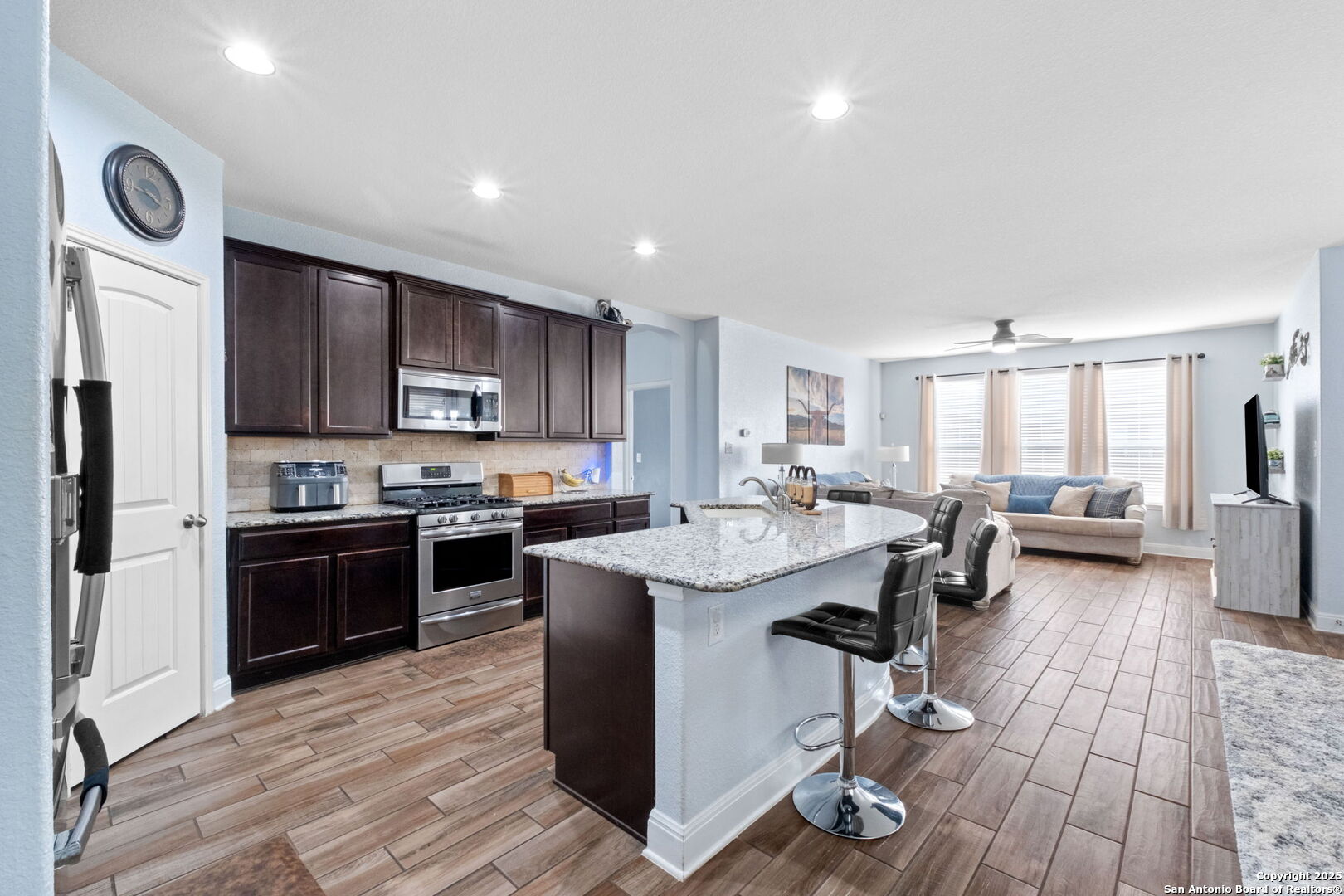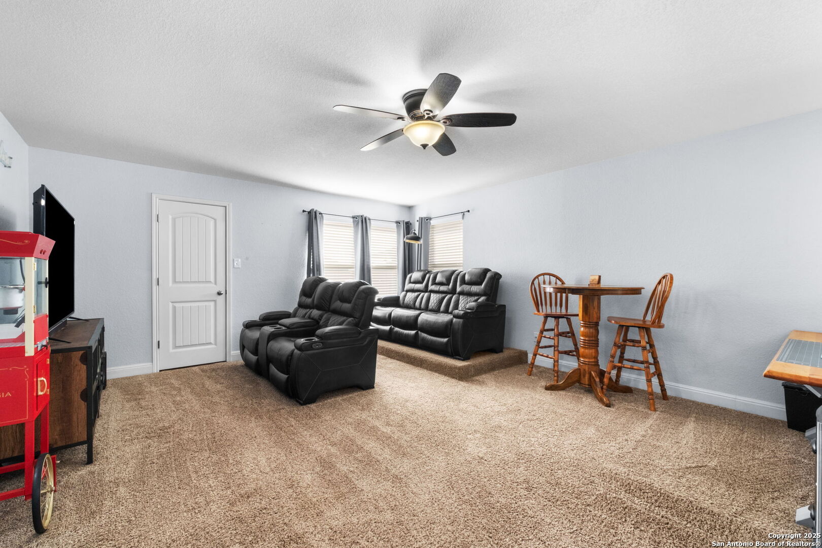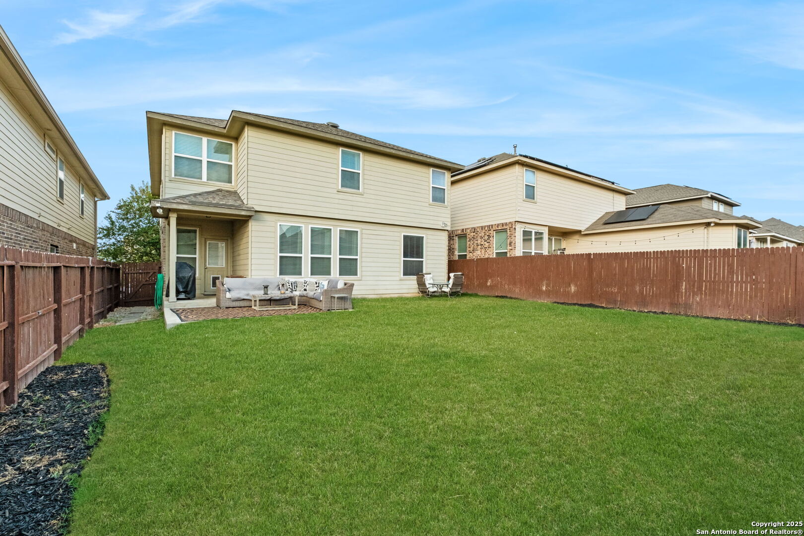 Set in the Wortham Oak neighborhood, this well maintained home combines comfort, style, and convenience. Wood like tile floors, arched entryways, and abundant natural light create a warm and cohesive feel the moment you step inside. The open kitchen features granite countertops, stainless steel appliances, tall dark cabinets, and a spacious island with a rounded breakfast bar. It connects effortlessly to the main living area, making everyday living and gatherings easy. A flexible downstairs bedroom offers the option for a private office or guest suite, and the main level also includes a dedicated laundry room. Upstairs, a beautiful handrail leads to four rooms including the primary suite, which offers two separate closets and dual separate vanities along with a separate tub and shower. A large game room adds additional space for relaxation or entertainment, complete with a mock stone fireplace that adds charm and character. Recent improvements include a new roof, upgraded ceiling fans, and a painted two car garage. The backyard offers a covered patio, an extended concrete slab, and a privacy fence. Neighborhood amenities include two pools, a clubhouse, and a playground. An elementary and middle school are located just outside the neighborhood gate, making mornings easier and afternoon pickups more convenient. The location provides quick access to Loop 1604 and Highway 281 and is conveniently close to Live Oak and IKEA. Randolph Air Force Base and Fort Sam Houston are a short commute away, and the property is located within Judson Independent School District.