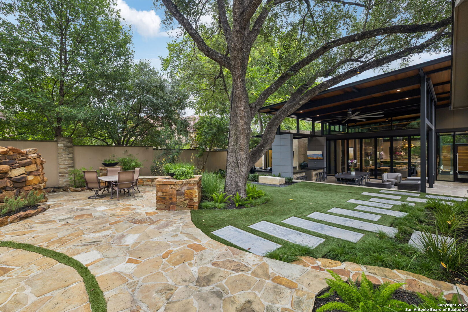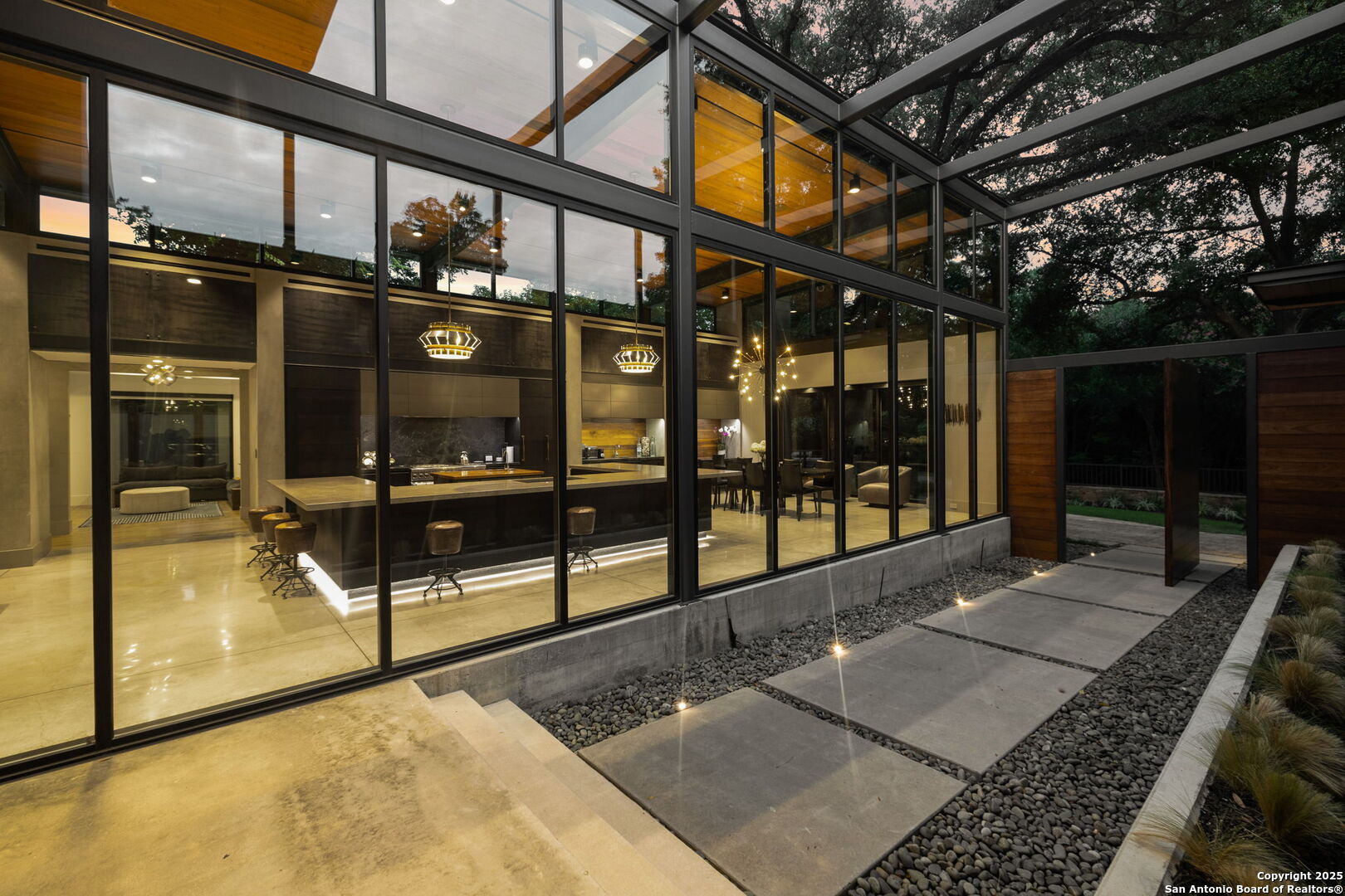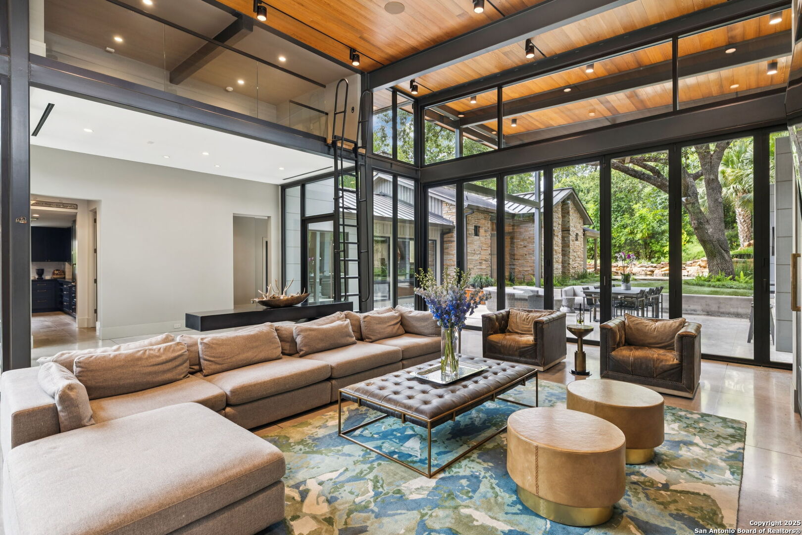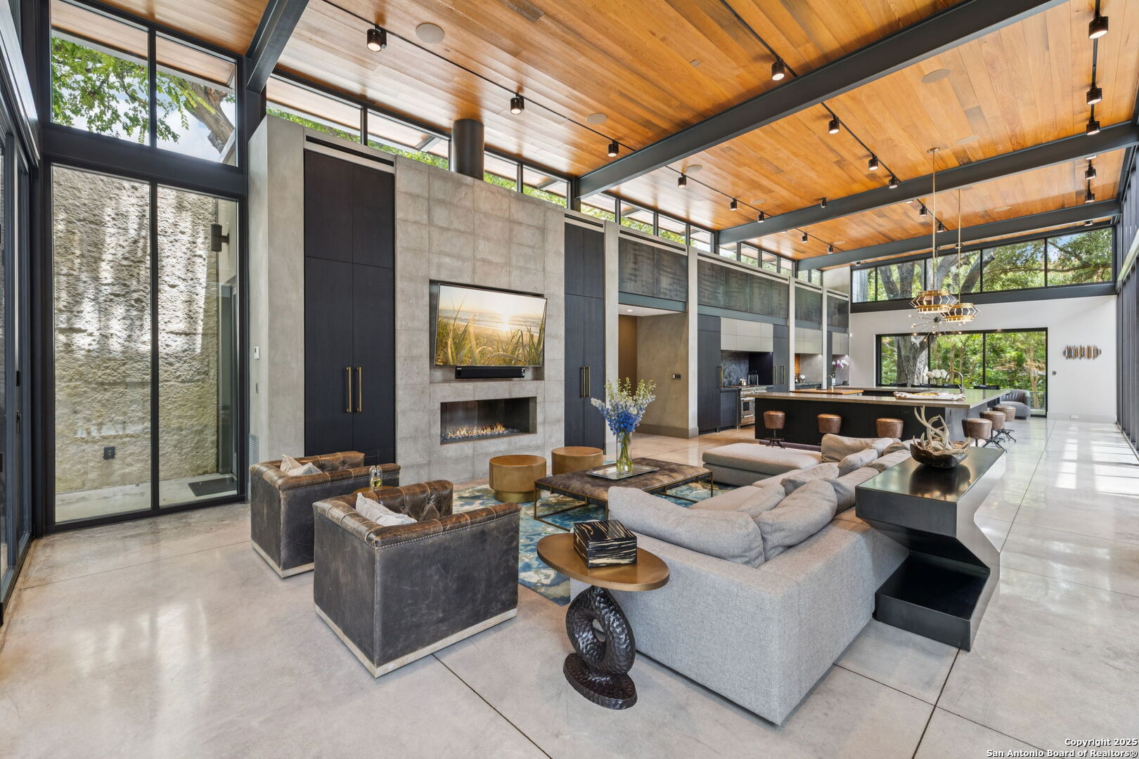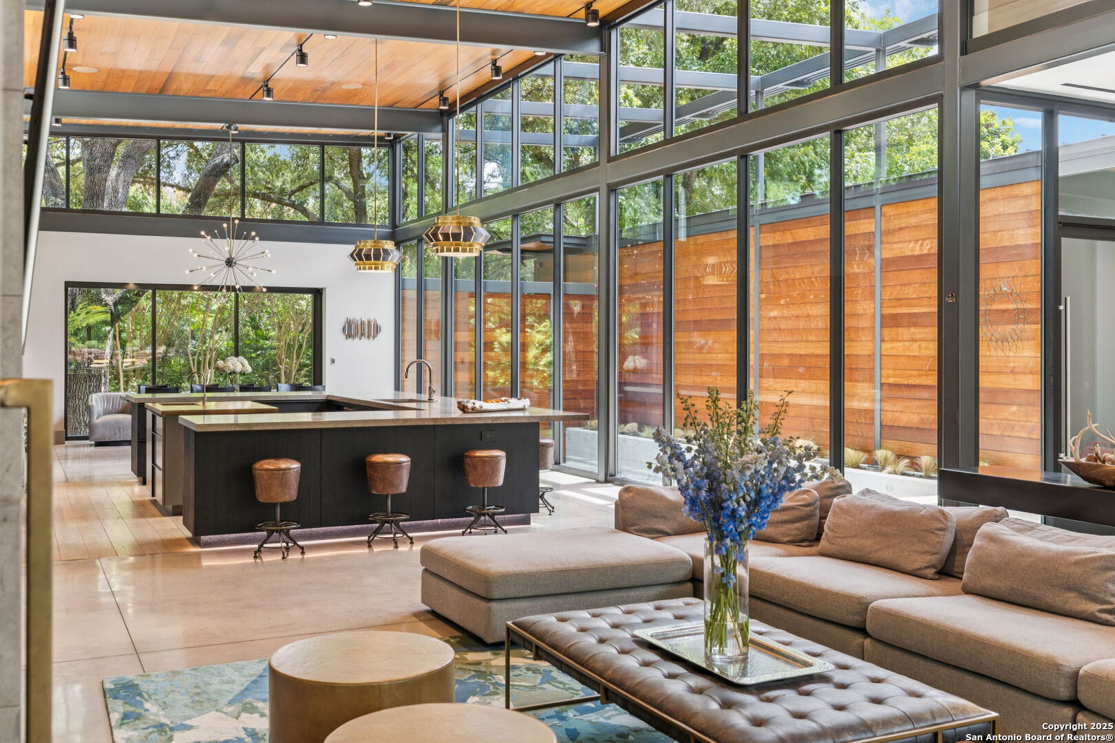 There's simply nothing like this transcendent warm modern home rooted in the Texas landscape, with a commitment to clean lines, natural materials, and seamless indoor-outdoor transitions. Its use of glass as both wall and threshold, and integration of heavy, elemental materials like stone, concrete, and wood set this apart from the usual modern design in San Antonio. The extended ceiling planes, steel framing, and sculptural use of light reflect the same refined restraint. The pivot between privacy and openness, and the way light is curated, feels particularly aligned. The backyard brings fun and privacy, oriented around a massive, heritage oak with curated landscaping and lush, green spaces, and a natural lagoon pool that curves through stone and dense greenery, is simply a work of art on its own. If you need more than a 2-car garage, the high ceilings offer the chance to add lifts for a total of 4, plus there is a huge circle drive. Olmos Park is a crown jewel of sophisticated in town San Antonio living. It's the first choice of many high end buyers in the Alamo City.