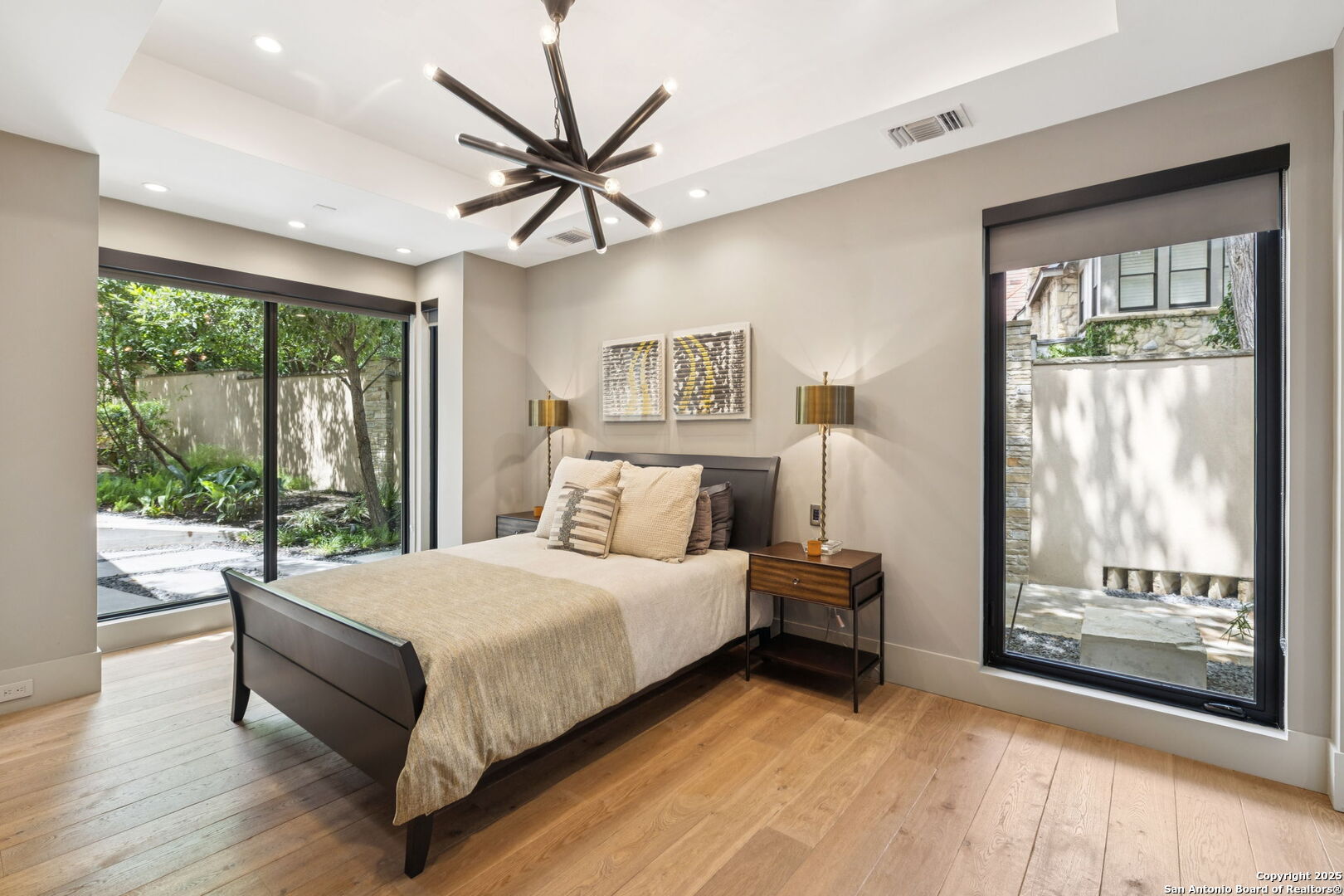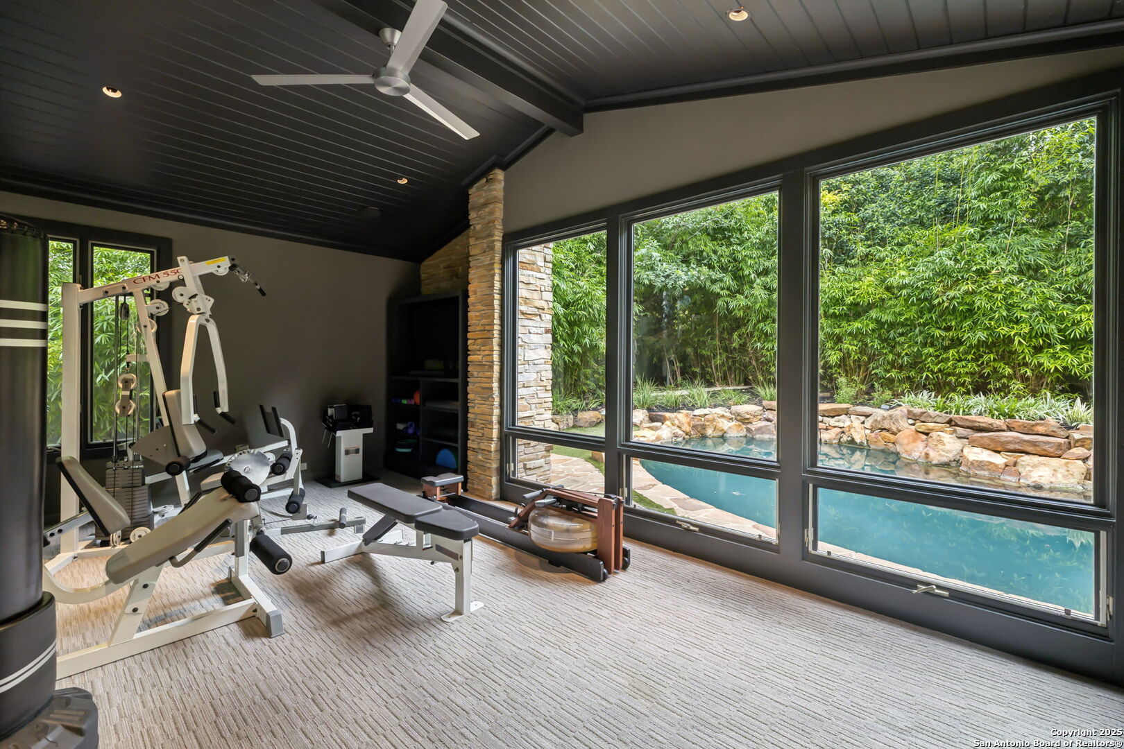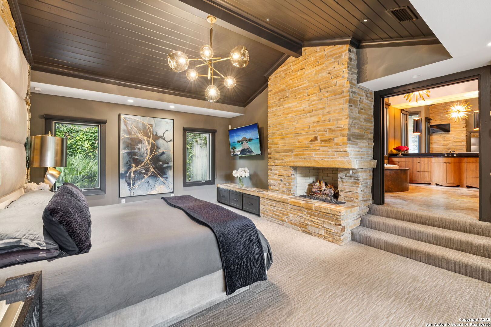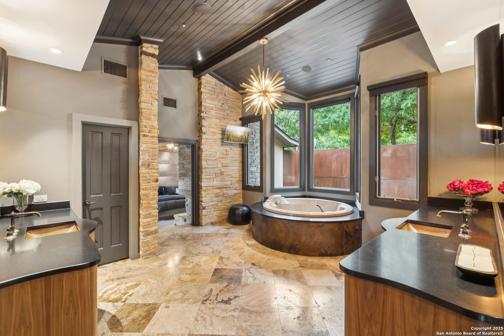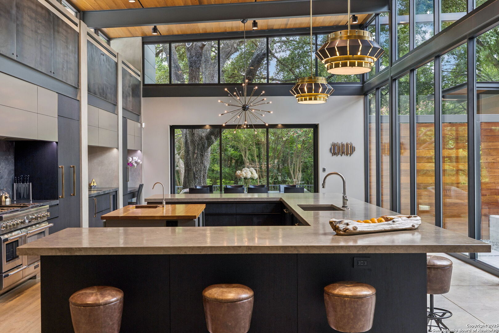 There's simply nothing like this transcendent warm modern home rooted in the Texas landscape, with a commitment to clean lines, natural materials, and seamless indoor-outdoor transitions. Its use of glass as both wall and threshold, and integration of heavy, elemental materials like stone, concrete, and wood set this apart from the usual modern design in San Antonio. The extended ceiling planes, steel framing, and sculptural use of light reflect the same refined restraint. The pivot between privacy and openness, and the way light is curated, feels particularly aligned. The backyard brings fun and privacy, oriented around a massive, heritage oak with curated landscaping and lush, green spaces, and a natural lagoon pool that curves through stone and dense greenery, is simply a work of art on its own. If you need more than a 2-car garage, the high ceilings offer the chance to add lifts for a total of 4, plus there is a huge circle drive. Olmos Park is a crown jewel of sophisticated in town San Antonio living. It's the first choice of many high end buyers in the Alamo City.